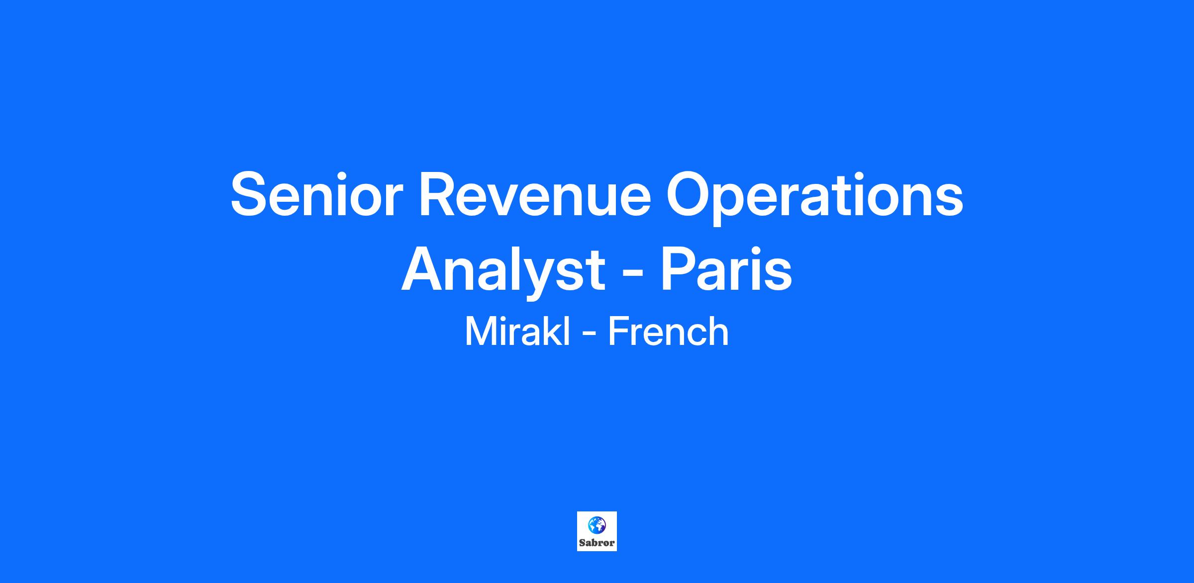 Mirakl est le leader des solutions logicielles pour le e-commerce. Nous proposons aux entreprises une suite unique de solutions leur permettant de transformer significativement leur activité digitale afin d'accélérer de façon durable et rentable leur croissance. Depuis 2012, Mirakl accompagne les entreprises B2C et B2B avec la technologie la plus avancée, sécurisée et évolutive leur permettant de digitaliser leur activité et d'élargir leur offre via la marketplace ou le dropship, faciliter la gestion des catalogues et des paiements de leurs fournisseurs pour plus d'efficacité, offrir une expérience d'achat personnalisée à leurs clients, et augmenter leurs profits grâce au retail media. Mirakl est le partenaire de choix de plus de 450 entreprises leaders dans le monde, dont Airbus, Maisons du Monde, Decathlon, H&M, Sonepar et Toyota Material Handling. Pour plus d'informations : www.mirakl.fr ABOUT THE ROLE We are seeking a highly analytical and strategic Senior Revenue Operations Analyst to support our Enterprise B2B SaaS sales organization. This role will partner closely with Sales Leadership, Marketing, and Finance to optimize sales performance, improve operational efficiency, and drive predictable revenue growth. You will own core operational processes, reporting, forecasting, and systems that power our Enterprise GTM motion. RESPONSIBILITIES SALES ANALYTICS & REPORTING * Build and maintain dashboards and reports across CRM and BI tools * Analyze pipeline health, funnel performance, sales productivity, customer segments, and trends to provide actionable insights. * Provide weekly, monthly, and quarterly business reviews for Enterprise leadership. * Define and monitor KPIs for pipeline generation, win rates, ACV, deal velocity, and forecasting accuracy. FORECASTING & PIPELINE MANAGEMENT * Manage end-to-end forecasting process in partnership with Revenue Operation and Sales leadership. * Conduct pipeline audits, identify risks/opportunities, and ensure data cleanliness and compliance. * Recommend corrective actions to improve forecast accuracy and deal hygiene. PROCESS OPTIMIZATION & ENABLEMENT * Design, implement and administrate territory management activities. * Support, enforce and optimize Enterprise sales processes (qualification, account planning, account and opportunity allocations, handoffs). * Develop and implement scalable workflows and best practices across the sales cycle. * Partner with Enablement to design training on new processes, tools, and performance insights. SYSTEMS & TOOLS SUPPORT * Manage directly or partnering with our system operation team, our sales tech stack: outreach/prospecting tools, forecasting platforms, data bases / enrichment. * Lead system enhancements, automation, and integrations to improve productivity and data quality. REVENUE OPERATIONS PARTNERSHIP * Work with Business leadership on expansion tracking and account segmentation. * Collaborate with Marketing Ops on attribution, lead management, and funnel alignment. * Support Finance with compensation calculations, and quota management. QUALIFICATIONS * 3-5 years in Sales Operations, Revenue Operations, or Business Analytics - ideally in B2B SaaS Enterprise. * Strong analytical skills with mastery of Excel/Sheets * Proficiency in Salesforce * Experience with RevOps tech: Clari, Gong, Outreach, HubSpot, ZoomInfo, Compensation tools * Experience supporting Enterprise or Strategic sales teams and fast-growth SaaS, ideally in an international environment. * Strong understanding of SaaS metrics (ARR, ACV, churn, CAC, LTV, pipeline coverage). * Ability to synthesize complex data into clear narratives and recommendations. Excellent communication skills and cross-functional collaboration experience. * Comfortable working in high-growth, data-driven, fast-changing environments. OUR HIRING PROCESS We keep it transparent and timely. Here’s what to expect: 1. Application review Our Talent Acquisition team reviews your application and assesses alignment with role requirements. We strive to respond promptly and keep you informed at each step. 2. Introductory call (30 minutes) A conversation to learn about your background and motivations, and to answer your questions about Mirakl, the team, and the role. 3. Interviews - Business interview (45–60 minutes): Meet the hiring manager to discuss your experience, problem‑solving approach, and impact. - Values loop (3 conversations): Meet with team members from different functions to explore your alignment with our core values and ways of working. 4. Final decision and offer We consolidate feedback quickly and aim to share decisions without delay. If successful, we’ll walk you through the offer details, benefits, and next steps. READY TO JOIN US? If you’re excited to help drive Mirakl’s growth, eager to learn, and ready to make an impact, we encourage you to apply—even if you don’t meet every single requirement. Mirakl is an equal opportunity employer. We celebrate diversity and are committed to building an inclusive environment for all employees. We welcome collaborators with diverse perspectives and experiences—they often go beyond conventional job requirements and fuel our culture of continuous learning. If you’re ready to join a hyper‑growth company at the heart of digital transformation for the world’s most forward‑thinking organizations, we strongly encourage you to apply. We welcome collaborators with their diverse perspectives and experiences to power us forward. These often far exceed conventional job requirements and help us create a culture of continuous learning. If you’re ready to join a global leader powering digital transformation for 450+ of the world’s most innovative retailers and B2B organizations, we strongly encourage you to apply to any of our roles, even if you think you’re not an exact match. We may use Artificial Intelligence (AI) solutions to help streamline our hiring process, including screening ap
