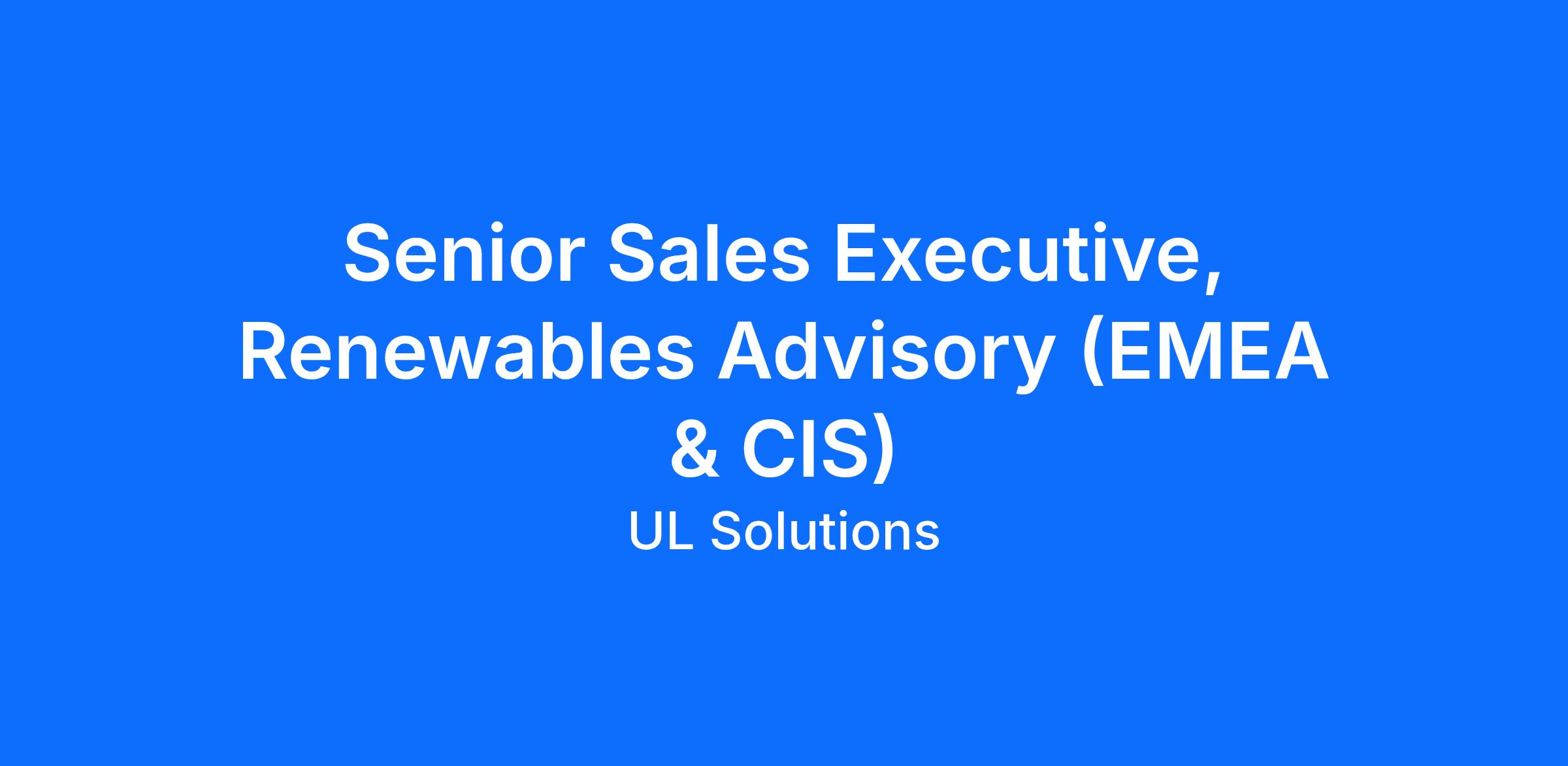 DescriptionUL Solutions is currently seeking a Senior Commercial Lead to grow our Renewables Advisory business in UL's new growth regions (MEA, CIS).