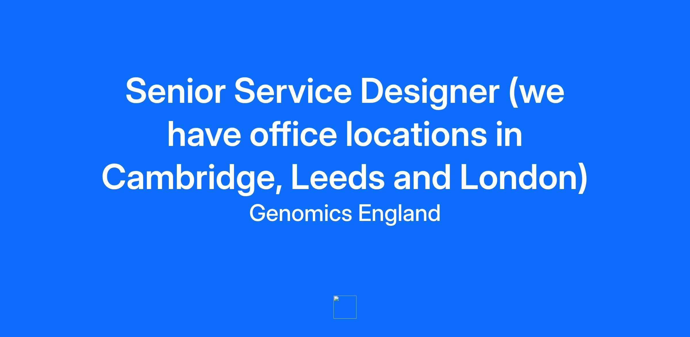 Company Description Genomics England partners with the NHS to provide whole genome sequencing diagnostics. We also equip researchers to find the causes of disease and develop new treatments – with patients and participants at the heart of it all. Our mission is to continue refining, scaling, and evolving our ability to enable others to deliver genomic healthcare and conduct genomic research. We are accelerating our impact and working with patients, doctors, scientists, government and industry to improve genomic testing, and help researchers access the health data and technology they need to make new medical discoveries and create more effective, targeted medicines for everybody. Job Description We are hiring a Senior Service Designer to play a pivotal role in shaping how our services are experienced and delivered. This role involves mapping the end-to-end service, including people, processes, data, and platforms to provide the Service Owner and Head of Research Cohorts with actionable insights, while working closely with them to design and enhance the service experience.” You will lead the creation of service journeys by translating user needs and service goals into human centred solutions across delivery teams. The role involves organising your own work cadence with the Service Owner and stakeholders, engaging regularly to understand challenges, capture needs, and stay aligned. It also requires visualising and communicating complex problem spaces, using sketches and prototypes to guide decision making, while collaborating closely with stakeholders, principal designers, researchers, and broader design teams to build the assets that bring future states to life. Everyday responsibilities include: Solve medium-to-high complexity service design challenges with a principled, human-centred approach. Translate insights, user stories, and requirements into design solutions, ensuring user needs are met across the service, including back stages. Deliver clear design outputs, such as user journeys, service maps, design briefs, and EPICs to enable decision-making and implementation. Scope work effectively and plan design activities using an iterative, agile approach. Collaborate efficiently with product and service delivery teams to ensure connected, implementable service experiences across key touchpoints. Facilitate decision-making and co-creation across multiple teams using appropriate methods. Advocate for users, influencing teams to build equitable, inclusive services that meet user needs effectively. Participate in design research and testing, incorporating learnings to continuously improve services and inform team plans and roadmaps. Skills and experience for success: Proven expertise in service design, with hands-on experience using tools such as service blueprints, journey maps, service patterns, and process mapping, and a strong portfolio demonstrating human-centred design in complex services. Skilled at leading cross-functional work, bringing together colleagues across disciplines, including scientists, technical specialists, and delivery teams to collaborate effectively and deliver shared outcomes. Strong strategic and systems thinking, able to tackle complex service challenges across front-end, back-end, and behind the scenes processes, while navigating governance, policy, and regulatory constraints. Comfortable working with complex data flows, technical disciplines, and ambiguous problems, translating insights into actionable design solutions that support decision-making. Excellent communication and problem-solving skills, with the ability to visualise and articulate complex problems, facilitate co-creation, and lead projects with a human-centred approach. Qualifications While your qualifications are certainly important and provide a foundation, we are particularly interested in understanding the breadth and depth of your overall experience, as this gives us a clearer picture of what you can bring to the role. Additional Information Salary from: £66,500 Please provide a cover letter explaining how your skills and experience align with this role and its requirements. Closing date for applications – Monday 12th January 2026 Being an integral part of such a meaningful mission is extremely rewarding in itself, but in order to support our people, we’re continually improving our benefits package. We pride ourselves on investing in our people and supporting them to achieve their career goals, as well as offering a benefits package including: Generous Leave: 30 days’ holiday plus bank holidays, additional leave for long service, and the option to apply for up to 30 days of remote working abroad annually (approval required). Family-Friendly: Blended working arrangements, flexible working, enhanced maternity, paternity and shared parental leave benefits. Pension & Financial: Defined contribution pension (Genomics England double-matches up to 10%, however you can contribute more if you wish), Life Assurance (3x salary), and a Give As You Earn scheme. Learning & Development: Individual learning budgets, support for training and certifications, and reimbursement for one annual professional subscription (approval required). Recognition & Rewards: Employee recognition programme and referral scheme. Health & Wellbeing: Subsidised gym membership, a free Headspace account, and access to an Employee Assistance Programme, eye tests, flu jabs. Equal opportunities and our commitment to a diverse and inclusive workplace Genomics England is actively committed to providing and supporting an inclusive environment that promotes equity, diversity and inclusion best practice both within our community and in any other area where we have influence. We are proud of our diverse community where everyone can come to work and feel welcomed and treated with respect regardless of any disability, ethnicity, gender, gender identity, religion, sexual orientation, or social background. Genomics England’s policies 