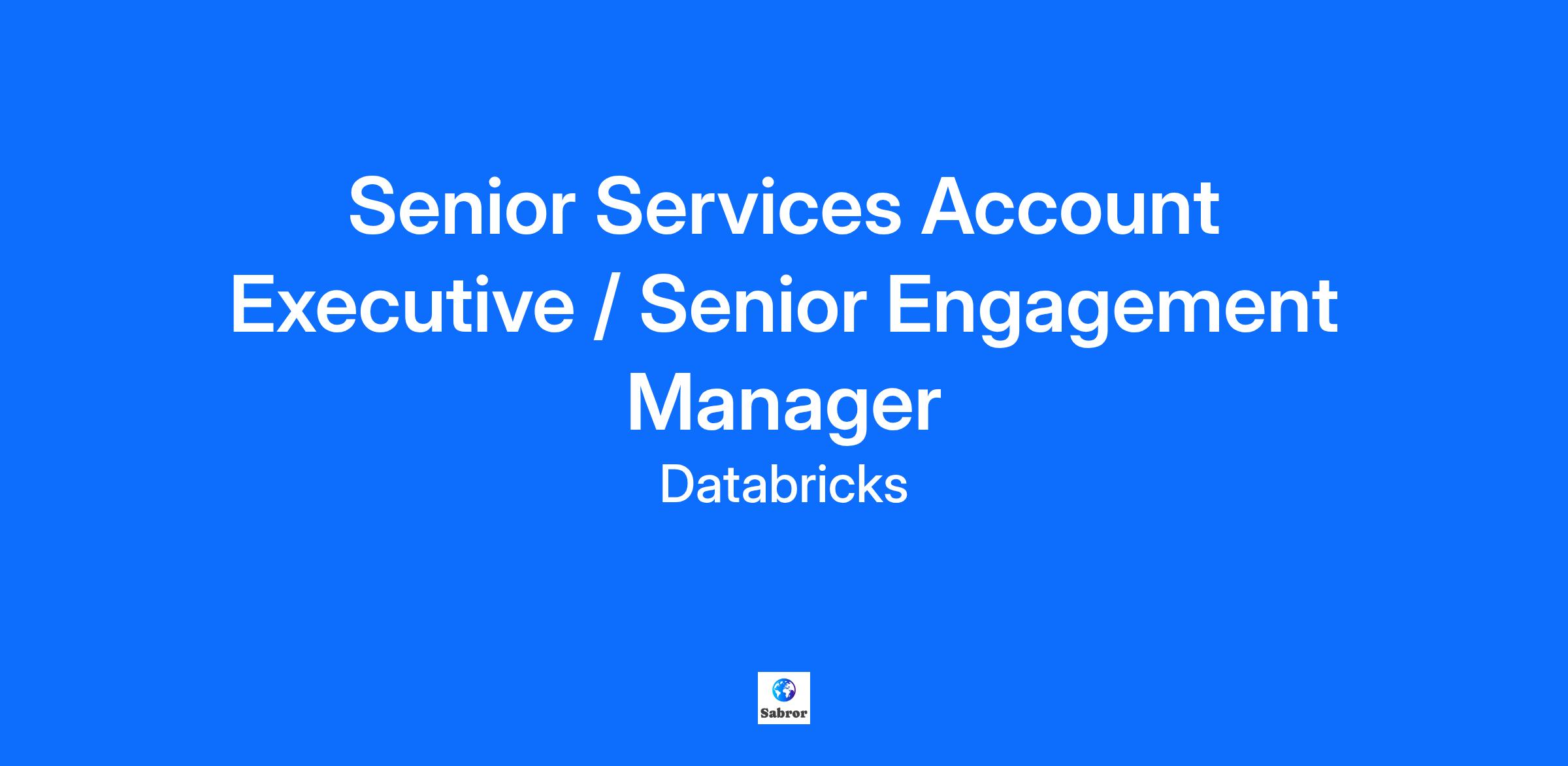 CSQ326R209 As a Senior Engagement Manager (Services Account Executive as industry denomination), you will be responsible for selling a portfolio of service offerings designed to help our customers successfully adopt the products they have purchased and ultimately achieve the business outcomes they expected from utilizing our products. These service offerings include product implementation services, and training. The SAE/EM is a trusted advisor to the account team and our customers for successful implementation, adoption, and value realization. A quota-carrying role, the Services Account Executive owns the services sales strategy by proactively creating demand for new Service opportunities and partnering with the Sales team and our partners to develop and successfully execute Services sales opportunities for their assigned territory. The impact you will have: Collaborate with software sales account teams, and our eco-system of delivery partners Proactively create new Services opportunities Create pipeline and manage end-to-end forecasting process for Services opportunities Meet and exceed quota (Impact, Implementation Services, and Training) in both new and installed base customers Serve as a trusted advisor to the customer by understanding their existing and future digital transformation roadmap and driving the right mix of services to meet their needs Lead extended team in solutioning and scoping, and proposal development Execute value-based selling methodology for Impact, Implementation Services, and Training opportunities You will demonstrate a passion for the job and lead by example by putting Databricks and our customers first to achieve the sales and delivery mission. You will work with the sales counterpart and engage early in the sales process to understand our customer's needs, their business, how success is defined, and ensure that we are exceeding expectations in delivery and developing valued solutions. Identify opportunities for new services by understanding and addressing potential new use-cases and the ability to articulate the business value in the upsell, or extension of services. You will perform as the SAE/EM in the assigned area and for meeting/exceeding Professional Services and Training bookings and revenue targets. Consult with clients to understand and analyze engagement scope, requirements, time, cost and benefits. Responsible for estimating, scoping and developing the statement of work documents as necessary. Help resolve delivery challenges, address resource contentions, scoping issues and manage expectations. What we look for: Extensive experience running a Professional Services and Education Services line of business. Extensive experience in customer-facing roles that require a mix of influencing, validating, negotiating, understanding and execution. Data and AI domain experience working with customers to realise business value through to production implementations. Excellent customer-facing skills including working with Executives and other team members. Experience articulating the value-based selling mode Experience identifying customer needs and implementing solutions. Service delivery and program management skills with the ability to summarize customer success outcomes into well-structured program plans. Travel is required up to 10%, more at peak times. About Databricks Databricks is the data and AI company. More than 10,000 organizations worldwide — including Comcast, Condé Nast, Grammarly, and over 50% of the Fortune 500 — rely on the Databricks Data Intelligence Platform to unify and democratize data, analytics and AI. Databricks is headquartered in San Francisco, with offices around the globe and was founded by the original creators of Lakehouse, Apache Spark™, Delta Lake and MLflow. To learn more, follow Databricks on Twitter, LinkedIn and Facebook. Benefits At Databricks, we strive to provide comprehensive benefits and perks that meet the needs of all of our employees. For specific details on the benefits offered in your region, please visit https://www.mybenefitsnow.com/databricks. Our Commitment to Diversity and Inclusion At Databricks, we are committed to fostering a diverse and inclusive culture where everyone can excel. We take great care to ensure that our hiring practices are inclusive and meet equal employment opportunity standards. Individuals looking for employment at Databricks are considered without regard to age, color, disability, ethnicity, family or marital status, gender identity or expression, language, national origin, physical and mental ability, political affiliation, race, religion, sexual orientation, socio-economic status, veteran status, and other protected characteristics. Compliance If access to export-controlled technology or source code is required for performance of job duties, it is within Employer's discretion whether to apply for a U.S. government license for such positions, and Employer may decline to proceed with an applicant on this basis alone.