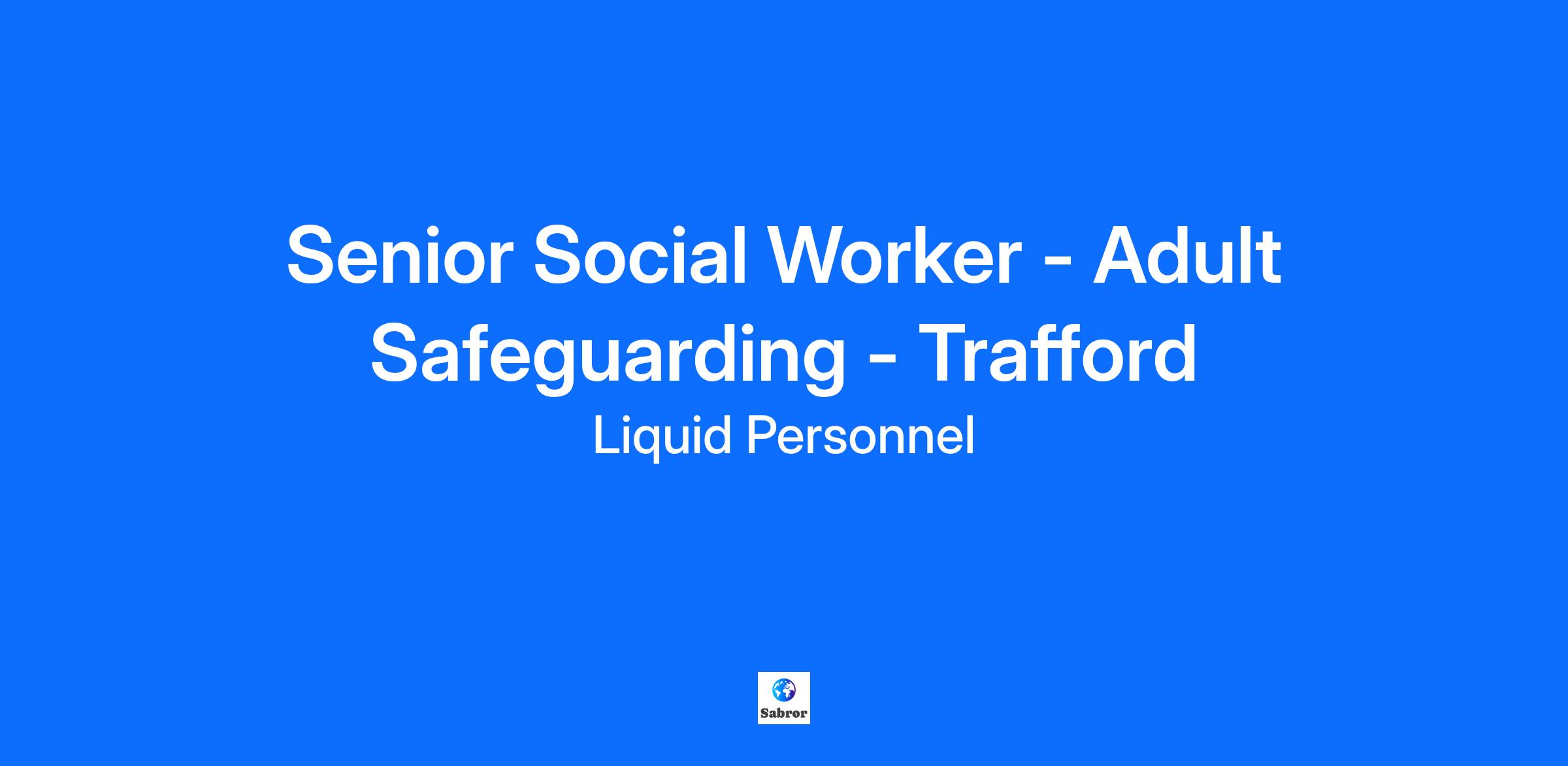 Job Title: Senior Social Worker - Adult Safeguarding - Trafford Location: Trafford (Hybrid) Pay Rate: £32 per hour About the Role: Join as a Senior Social Worker in Adult Safeguarding team and ensure high-quality care in Trafford. If you are passionate about this role, then apply now! What will your responsibilities be? In this role, you will provide senior-level support in adult safeguarding, reporting to the Safeguarding Practice Lead and promoting effective safeguarding practice across adult social care teams. You will attend Multi-Agency Public Protection Arrangements (MAPPA) meetings and manage Person in Position of Trust (PIPOT) referrals, ensuring coordinated and proportionate responses to complex safeguarding concerns. Additionally, you will offer safeguarding advice and guidance to frontline teams, assist Team Managers and Service Managers with safeguarding responsibilities, and support the development and embedding of safeguarding knowledge and good practice across the workforce through mentoring and training initiatives. Benefits of the role: Great rate of pay £32 per hour Flexible and hybrid working to support work-life balance Supportive team Qualifications & Experience: SWE registration Eligible to work in the UK Hold a full UK license Post-qualified experience Degree level or equivalent in Social Work Why Liquid Personnel? New ‘Faster Pay’ service getting you paid more quickly Twice weekly payroll Free DBS and compliance service Access to exclusive roles that aren’t available from other agencies Free access to Liquid’s exclusive social work training and CPD portal Your own dedicated consultant with extensive social work knowledge Access to a wide selection of social work positions across the UK “Refer a Friend” bonus – get £500 for each social worker you refer who we successfully place* “Find your own job” bonus – get £250 for bringing your own position to us * Liquid Personnel is an equal opportunities employer. Liquid Personnel Ltd is acting as an Employment Business in relation to this vacancy. * Terms and conditions apply to our bonus schemes. Reasonable Adjustments: If you consider yourself to have a disability or require any reasonable adjustment during the recruitment process or within the workplace, please highlight this at the earliest opportunity by contacting our team. With this information, we will provide appropriate support to you throughout the process and into your work placement. We are unable to support or accept applications from candidates who are residents within the Red or Amber list of the Code of practice for the international recruitment of health and social care personnel in England, based on the World Health Organisation (WHO) Workforce Support and Safeguard List. BH - 190290 GH - 31002