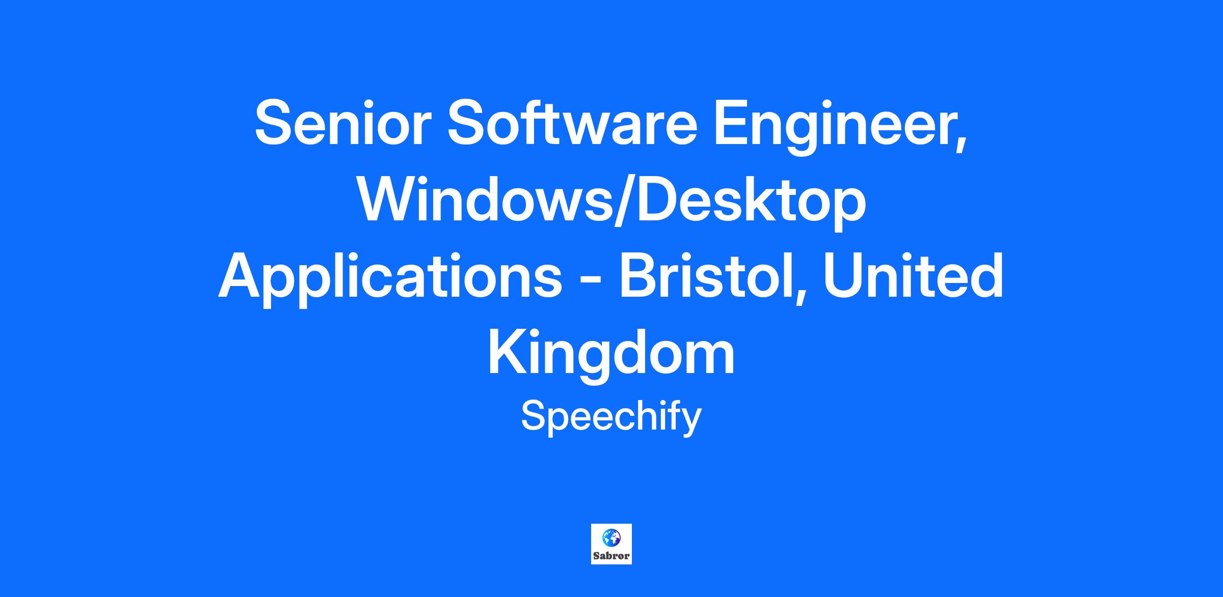 Senior Software Engineer, Windows/Desktop Applications - Bristol, United Kingdom