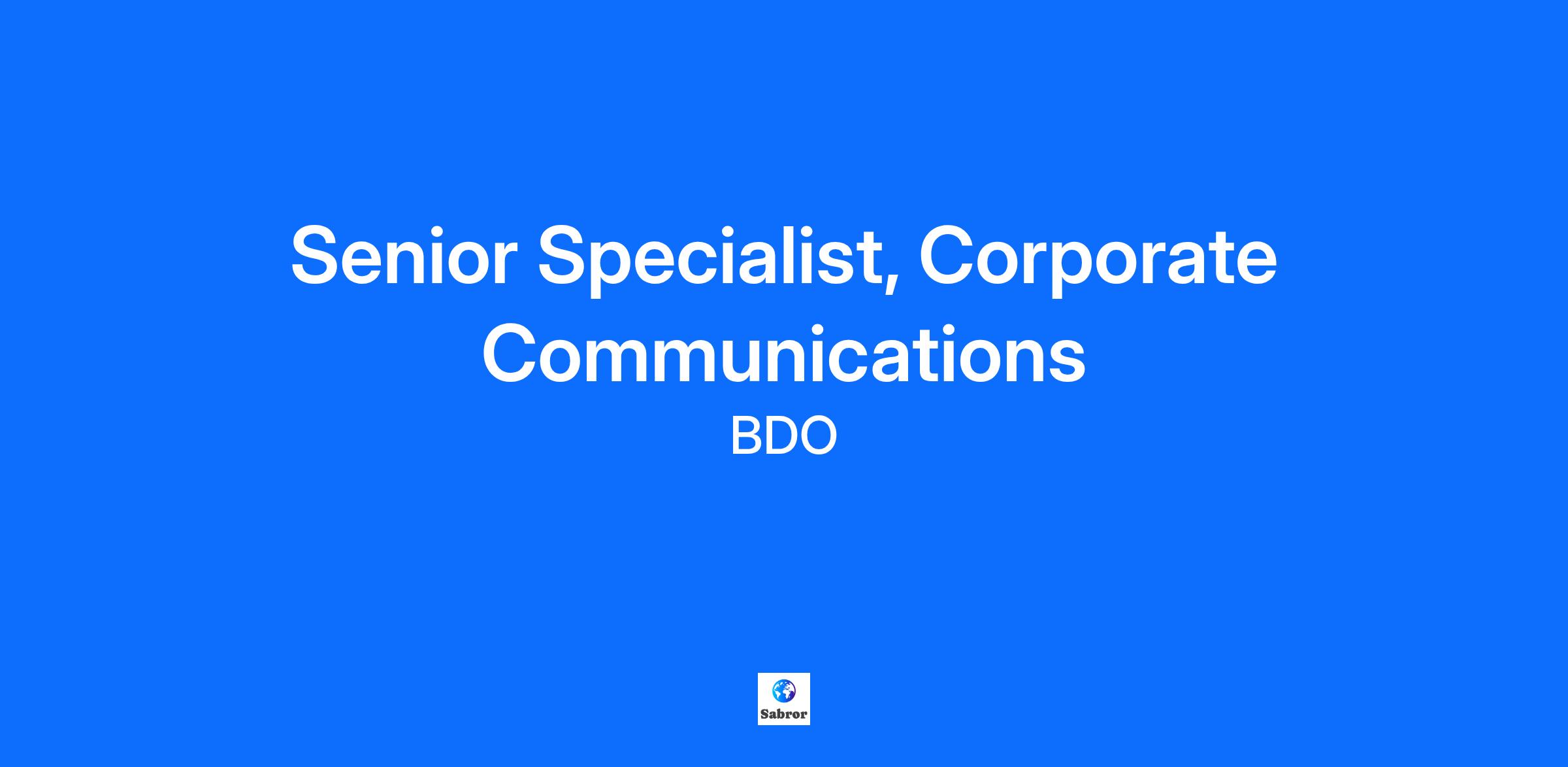 Putting people first, every day BDO is a firm built on a foundation of positive relationships with our people and our clients. Each day, our professionals provide exceptional service, helping clients with advice and insight they can trust. In turn, we offer an award-winning environment that fosters a people-first culture with a high priority on your personal and professional growth. Your Opportunity Our Toronto office is looking for a Senior Specialist to join the Communications team for an 18 month contract to support the firm’s communications program while owning the following responsibilities: Help develop internal and external communications plans that will align to and support firm strategies. Work closely with colleagues across service lines, departments and geographies to provide integrated communications support. Work with the PR agency to identify compelling stories, pursue thought leadership opportunities and manage announcements. Plan, research and write a wide variety of high-quality business communications for senior leaders, including remarks, presentations, newsletters, announcements, articles, messages, video scripts, question and answers, etc. Help manage and update owned platforms, ensuring key information is presented in a way that is professional, concise, creative and accurate. Help manage communications calendars and project plans. Leverage new tools and technologies to increase the effectiveness and impact of the firm’s communications program. How do we define success for your role? You demonstrate BDO's core values through all aspects of your work: Integrity, Respect and Collaboration You understand your client’s industry, challenges, and opportunities; clients describe you as positive, professional, and delivering high quality work You identify, recommend, and are focused on effective service delivery to your clients You share in an inclusive and engaging work environment that develops, retains and attracts talent You actively participate in the adoption of digital tools and strategies to drive an innovative workplace You grow your expertise through learning and professional development Your experience and education You have superior business writing skills and the ability to develop clear, concise, creative and impactful communications. You have excellent interpersonal and client focused skills and interact positively and professionally with leaders, peers and teammates. You have 5+ years of professional communications experience. Prior professional services firm or experience in a large matrix organization is an asset. You are a self-starter, and able to work to a high standard both independently, as well as in a team environment. You can manage multiple projects in a fast-paced, quality-driven environment. You have proven project management, relationship-building, and problem-solving skills. You are proficient in Microsoft Solutions (SharePoint, Word, PowerPoint, Excel) and internal communications platforms (Poppulo, SnapComms). You have post-secondary education in communications, public relations, journalism, marketing, business or in another related field. Why BDO? Our people-first approach to talent has earned us a spot among Canada’s Top 100 Employers for 2025. This recognition is a milestone we’re thrilled to add to our collection of awards for both experienced and student talent experiences. Our firm is committed to providing an environment where you can be successful in the following ways: We enable you to engage with how we change and evolve, being a key contributor to the success and growth of BDO in Canada. We help you become a better professional within our services, industries, and markets with extensive opportunities for learning and development. We support your achievement of personal goals outside of the office and making an impact on your community. Giving back adds up: Where company meets community. BDO is actively involved in our communities by supporting local charity initiatives. We support staff with local and national events where you will be given the opportunity to contribute to your community. Total rewards that matter: We pay for performance with competitive total cash compensation that recognizes and rewards your contribution. We provide flexible benefits from day one, and a market leading personal time off policy. We are committed to supporting your overall wellness beyond working hours and provide reimbursement for wellness initiatives that fit your lifestyle. Everyone counts: We believe every employee should have the opportunity to participate and succeed. Through leadership by our Diversity, Equity and Inclusion Leader, we are committed to a workplace culture of respect, inclusion, and diversity. We recognize and celebrate the valuable differences among each of us, including race, religious beliefs, physical or mental disabilities, age, place of origin, marital status, family status, gender or gender identity and sexual orientation. If you require accommodation to complete the application process, please contact us. Flexibility: All BDO personnel are expected to spend some of their time working in the office, at the client site, and virtually unless accommodations or alternative work arrangements are in place. Our model is a blended approach designed to support the flexible needs of our people, the firm and our clients. It’s about creating work experiences that meet everyone’s needs and providing flexibility to adjust when, where and how we work to meet the expectations of our role. Code of Conduct: Our Code of Conduct sets clear standards for how we conduct business. It reflects our shared values and commitments and includes guiding principles to help us make ethical decisions and maintain trust with each other, our clients, and the public. With your consent, BDO Canada may use AI technology (Microsoft Copilot) to transcribe during preliminary conversations, solely for the purpose of note-taking and not for other p