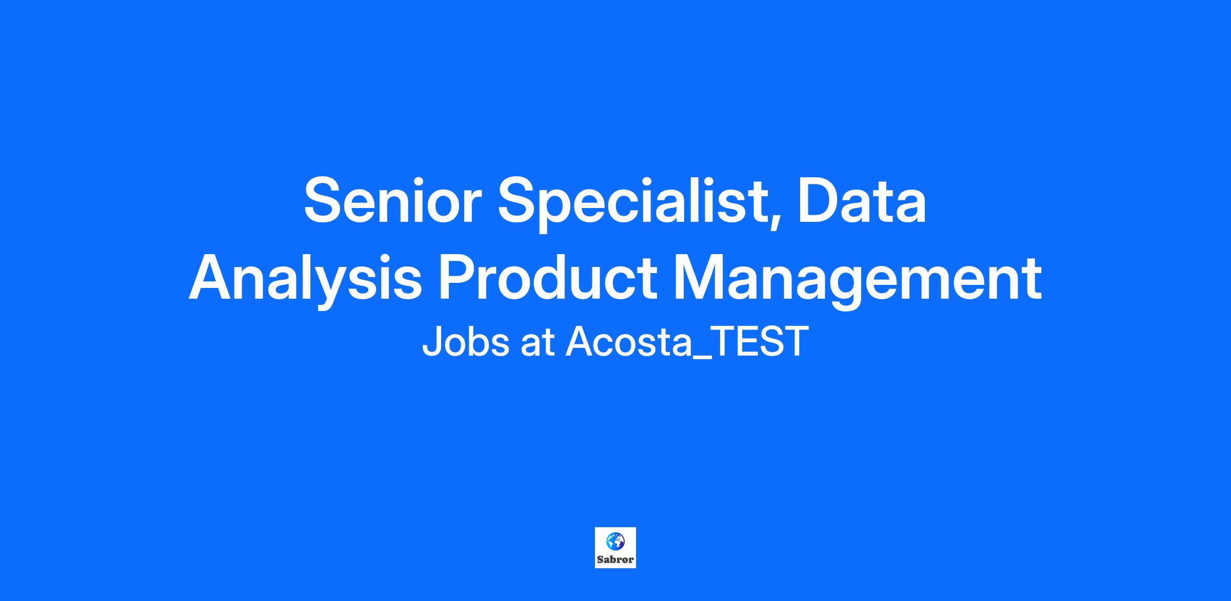 Senior Specialist, Data Analysis Product Management