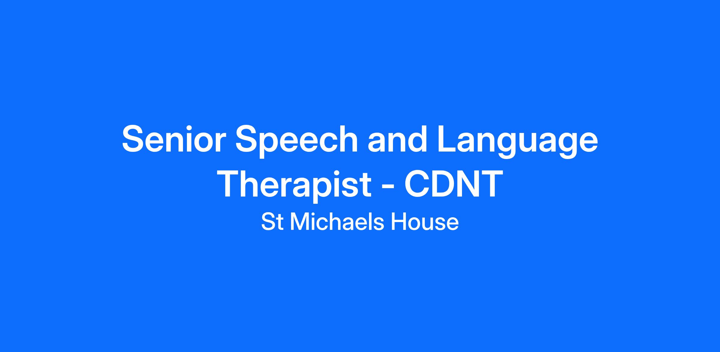 Job Title: Senior Speech and Language Therapist