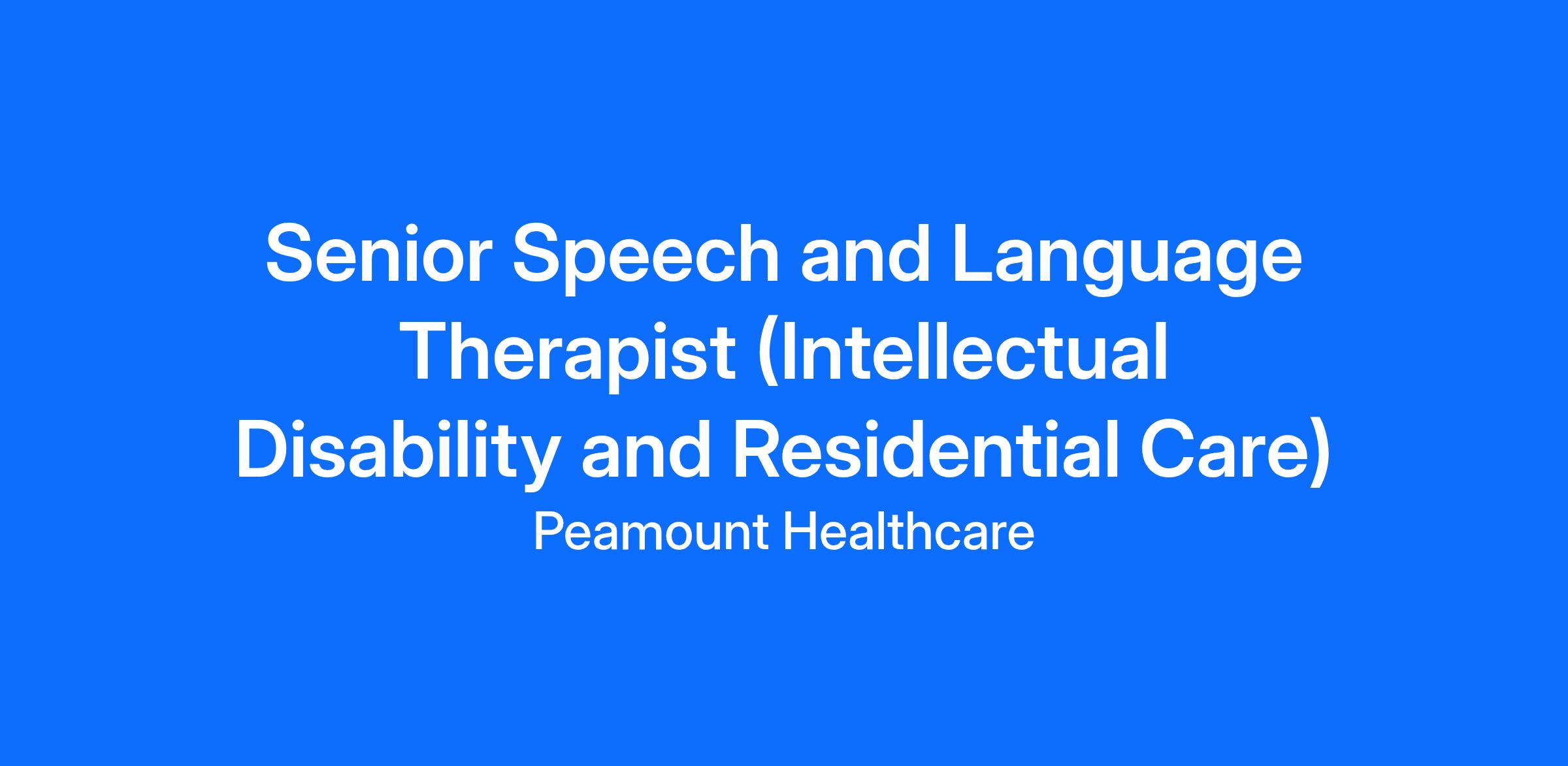 · Job Title & Grade – Senior Speech and Language Therapist (Intellectual Disability and Residential Care)