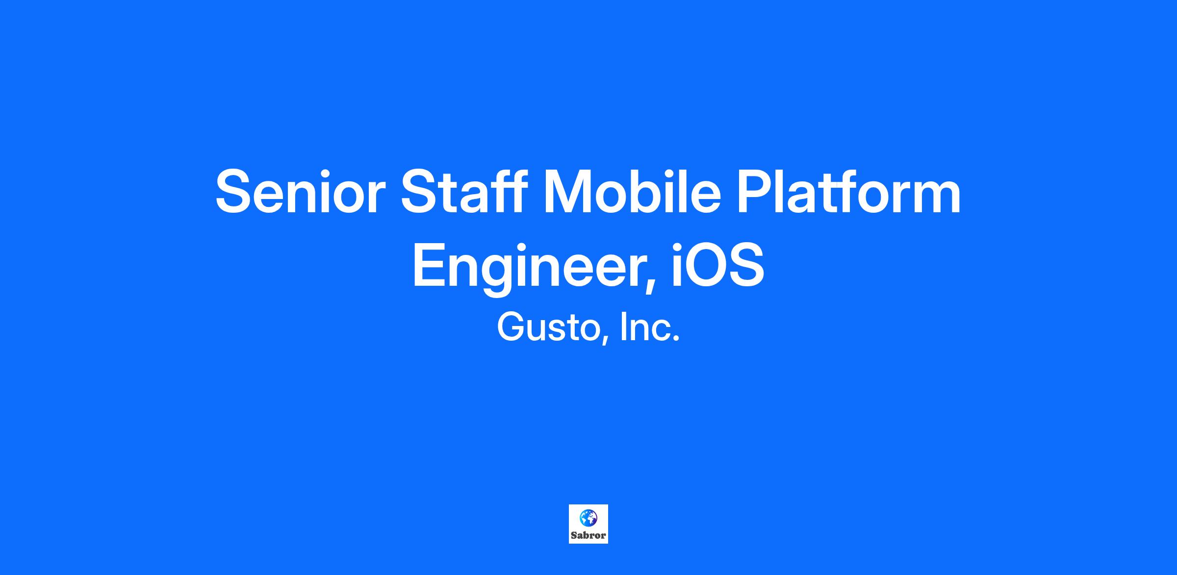About Gusto At Gusto, we're on a mission to grow the small business economy. We handle the hard stuff—like payroll, health insurance, 401(k)s, and HR—so owners can focus on their craft and customers. With teams in Denver, San Francisco, and New York, we’re proud to support more than 400,000 small businesses across the country, and we’re building a workplace that represents and celebrates the customers we serve. Learn more about our Total Rewards philosophy. About the Role We’re on the lookout for talented Mobile iOS Engineers with 12+ years of experience who are passionate about creating amazing user experiences. In this role, you’ll have the chance to dive into developing features that are not just functional but truly intuitive and enjoyable for our users. We want you to take ownership of scaling our shared services while keeping up with the latest in the iOS world. You’ll work closely with teams across Product, Identity, Security, System Design, and Infrastructure, collaborating to build solutions that really make a difference. If you’re excited about building elegant, scalable apps and being part of a supportive, innovative mobile team, we’d love to hear from you! About the Team At Gusto, we’re excited to be at a pivotal moment in our journey with over 1M+ monthly active users and the recent launch of our employer experiences on mobile. Our mission is to tackle the real challenges faced by small business owners and their employees, and we believe that mobile is key to delivering impactful solutions. As part of our mobile team, you’ll be at the forefront of this transformation, working alongside talented engineers and designers who are passionate about creating a seamless mobile experience. Together, we’re building a platform that empowers everyone—small business owners and their teams—to thrive. If you’re ready to make a difference in the mobile landscape at Gusto, we want you on board! Here’s what you’ll do day-to-day: Architect, build, test, and refine Gusto’s iOS app, along with supporting mobile web views that enhance user experience. Develop, iterate, and improve product features that integrate core business functions, work tools, value-added services, and financial products. Collaborate closely with our product management, design, and partner teams to identify technical and customer pain points, brainstorm solutions, and then prototype, iterate, and launch those solutions. Work cross-functionally with teams in product apps, identity, security, design systems, and infrastructure to deliver world-class experiences right into our customers' hands. Build and scale essential services, such as push notification systems and localization features, to enhance app functionality. Enhance and maintain our iOS mobile infrastructure, including build pipelines, testing automation, and the release process, to ensure smooth operations. Create a product that our customers truly love—don’t just take our word for it; see what our customers have to say. Here’s what we're looking for: A minimum of 8 years of experience in Swift and iOS software engineering, with at least 12 years in mobile software engineering overall. Minimum 4 years of Swift. Excellent communication skills and a knack for building strong cross-functional partnerships. A self-driven mindset with the ability to tackle greenfield projects and bring innovative ideas to life. Proficiency in iOS testing frameworks and a solid understanding of best practices. Experience in developing platform components and common features that enhance scalability, consistency, and maintainability throughout the product development lifecycle. Strong critical thinking abilities and a keen attention to detail. A willingness to learn continuously and a passion for mentoring others on the team. Bonus points: Experience delivering high-quality code across a diverse tech stack. Experience with analytics and monitoring tools to track app performance / health and user engagement. Experience with mobile infrastructure, for example: CI/CD, automated testing environments, and release orchestration. Building a strong mobile foundation that feature teams can build on top of. Mobile Testing-at-scale. Strong knowledge of GraphQL. Experience working at scale on apps that span multiple teams and feature areas. Our cash compensation amount for this role is targeted at $223,000-$265,000 for San Francisco & New York and $189,000-$225,000 for Denver. Final offer amounts are determined by multiple factors including candidate experience and expertise and may vary from the amounts listed above. Gusto has physical office spaces in Denver, San Francisco, and New York City. Employees who are based in those locations will be expected to work from the office on designated days approximately 2-3 days per week (or more depending on role). The same office expectations apply to all Symmetry roles, Gusto's subsidiary, whose physical office is in Scottsdale. Note: The San Francisco office expectations encompass both the San Francisco and San Jose metro areas. When approved to work from a location other than a Gusto office, a secure, reliable, and consistent internet connection is required. This includes non-office days for hybrid employees. Our customers come from all walks of life and so do we. We hire great people from a wide variety of backgrounds, not just because it's the right thing to do, but because it makes our company stronger. If you share our values and our enthusiasm for small businesses, you will find a home at Gusto. Gusto is proud to be an equal opportunity employer. We do not discriminate in hiring or any employment decision based on race, color, religion, national origin, age, sex (including pregnancy, childbirth, or related medical conditions), marital status, ancestry, physical or mental disability, genetic information, veteran status, gender identity or expression, sexual orientation, or other applicable legally protected char