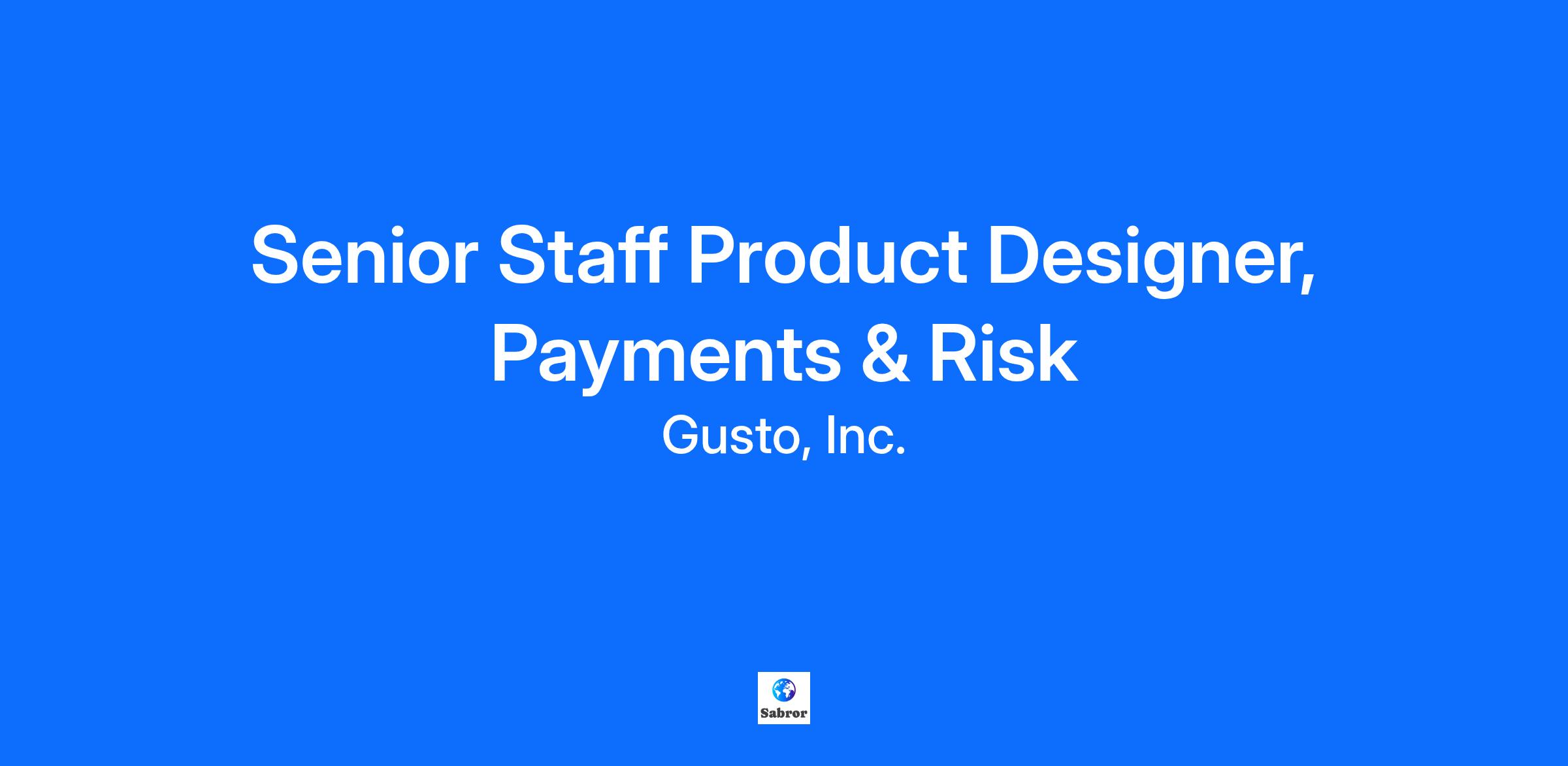 -------------------------------------------------------------------------------- About Gusto Gusto is a modern, online people platform that helps small businesses take care of their teams. On top of full-service payroll, Gusto offers health insurance, 401(k)s, expert HR, and team management tools. Today, Gusto offices in Denver, San Francisco, and New York serve more than 400,000 businesses nationwide. Our mission is to create a world where work empowers a better life, and it starts right here at Gusto. That’s why we’re committed to building a collaborative and inclusive workplace, both physically and virtually. Learn more about our Total Rewards philosophy [https://gusto.com/about/careers/total-rewards]. About the Role: Are you ready to redefine how small businesses interact with their money? As a Senior Staff Product Designer on Gusto’s Payments and Risk Platform, you'll design seamless and consistent money movement experiences across all of Gusto’s products and services, while simultaneously building trust and ensuring safety by developing intuitive systems that prevent, mitigate, and resolve fraudulent activity. As a strategic partner, you'll collaborate closely with your immediate cross-functional team and other Gusto product teams who rely on your expertise to integrate payments and risk solutions. You'll be empowered to set a bold vision, define our long-term strategy, and ship high-impact features that continuously improve our offerings. A key part of your role will be ensuring everything we design and deliver operates reliably at scale If you're a systems thinker who thrives in ambiguity, can simplify the complex, and consistently delivers customer impact, we'd love to meet you. About the Team: The Payments and Risk Platform is the foundation to Gusto’s success. We ensure money moves seamlessly and securely between businesses, partners, employees, government entities, and Gusto itself. We're dedicated to both enabling rapid, efficient money movement and securing our platform against financial fraud and risk. This involves a complete re-architecture of Gusto's core payments platform to move money faster and more efficiently than ever before, fostering growth for Gusto and our customers alike. Simultaneously, we're focused on safeguarding our platform by designing best-in-class experiences that prevent fraudsters from abusing Gusto, continuously improving our false positive rates, and building the infrastructure for credit underwriting and collections. Here’s what you’ll do day-to-day: * Define and drive a long-term UX vision for your product area, ensuring it seamlessly integrates with Gusto’s broader strategic objectives. * Significantly influence product strategy, roadmap development, team OKRs, and overall project direction, acting as a key voice in decision-making. * Balance speed with strategic foresight, delivering urgent customer improvements while ensuring they consistently elevate the long-term customer experience and align with our evolving vision. * Collaborate closely with our research team to uncover deep user insights that directly inform and strengthen your design decisions. * Contribute actively to Gusto’s vibrant product design leadership community, sharing your expertise and shaping our collective design excellence. * Champion and evolve our design system and platform standards, applying them rigorously in your product work and identifying opportunities for their continuous improvement. Here’s what we're looking for: * 10+ years of product design experience, with a proven track record of leading design direction across complex, high-leverage product areas. * A strong history of shaping product strategy and driving design execution, delivering simple, intuitive experiences within complex or technical domains—ideally in platform or services contexts, and with an understanding of AI's capabilities in design. * Exceptional ability to partner with Product and Engineering, influencing roadmap and systems decisions by translating technical constraints into superior customer outcomes. * A holistic thinker who designs cohesive customer journeys that span digital products and human support, maintaining a high bar for quality and ensuring thoughtful, high-impact solutions reach customers. * Demonstrated comfort thriving in ambiguity, leading through action, and prioritizing tangible customer impact over conceptual planning. * A collaborative leader who brings strong opinions, engages in constructive debate, and helps teams align efficiently to advance work. * A deep passion for Gusto's mission and a commitment to empowering small businesses through world-class financial tools. At Gusto, we strive to provide rewards that empower employees to achieve their financial and personal goals. We offer competitive compensation packages with a strong emphasis on equity based compensation (ownership in Gusto). To learn more about Gusto’s compensation philosophy and benefits offerings please view our Total Rewards Approach page. Our cash compensation range for this role is $172,000/yr to $215,000/yr in Denver & most remote locations, and $202,000/yr to $253,000/yr in San Francisco, Seattle & New York. Final offer amounts are determined by multiple factors, including candidate experience and expertise, and may vary from the amounts listed above. -------------------------------------------------------------------------------- Gusto has physical office spaces in Denver, San Francisco, and New York City. Employees who are based in those locations will be expected to work from the office on designated days approximately 2-3 days per week (or more depending on role). The same office expectations apply to all Symmetry roles, Gusto's subsidiary, whose physical office is in Scottsdale. Note: The San Francisco office expectations encompass both the San Francisco and San Jose metro areas. When approved to work from a location other than a Gusto office, a secure, reliable, 