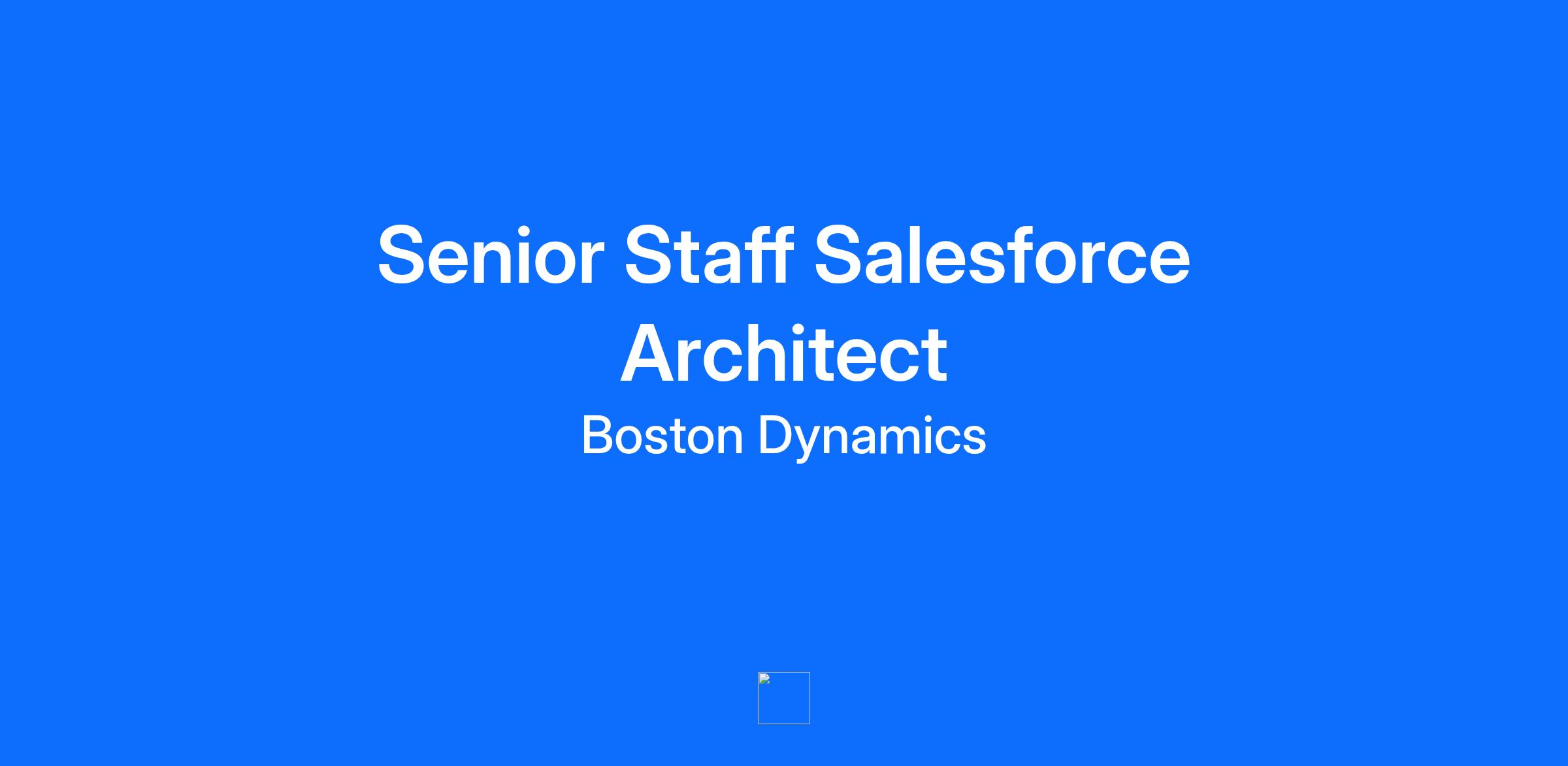 Boston Dynamics is a world leader in mobile robots, tackling some of the toughest robotics challenges. We combine the principles of dynamic control and balance with sophisticated mechanical designs, cutting-edge electronics, and next-generation software for high-performance robots equipped with perception, navigation, and intelligence. Boston Dynamics has an extraordinary and fast-growing technical team of engineers and scientists who seamlessly combine advanced analytical thinking with bold engineering. We have two Sales Architect positions open: GTM Architect As a Salesforce Architect for Go-To-Market team, you will act as a technical expert and developer/architect for Boston Dynamics salesforce clouds (Sales, Service, Experience, & Field Service) and integrations with adjacent systems, helping to design, build, and optimize business processes. You will leverage deep experience within the salesforce platform and a solid understanding of the agile development process to deliver robust, scalable solutions. You will collaborate with cross-functional teams - including Finance, Product, Sales, Support, and Engineering - to ensure our salesforce platform is effective, compliant, and supports business growth. Ops Architect As a Salesforce / Rootstock Architect for Ops Application team, you will support the design, development, implementation and testing of enterprise applications to provide Boston Dynamics with optimal flexibility and operational efficiencies. The salesforce developer will work with the Enterprise Applications Team to deliver against the ongoing roadmap. They will lead all phases of analyzing business requirements, solution design, declarative/programmatic development, testing activities, and application administration. We are looking for a developer with a background in Salesforce development with experience in Manufacturing, Supply Chain, QA and Finance at this time. What You’ll Do Act as a senior salesforce architect in the design and delivery of solutions for our CRM & ERP, advocating for best practices and adherence to technical standards and implementation approaches. Design and implement scalable, secure, and compliant solutions, contributing to architectural decisions and major initiatives in partnership with other team members. Lead system enhancements and data integrations, translating business requirements and compliance needs into technical solutions. Conduct technical reviews, risk identification, and contribute to the development of code quality and maintainability standards. Enforce integration best practices using APIs, Web Services, JavaScript, and platform-native technologies. Serve as a technical SME to both technical and non-technical peers, troubleshooting challenging issues, ensuring knowledge sharing, and leading technical enablement within the team. Lead and participate in peer code reviews, design sessions, and technical workshops to ensure codebase maintainability, scalability, and efficiency, incorporating automation, monitoring, and CI/CD best practices. Respond to incidents, lead root cause analysis, and recommend and implement preventative measures and continuous improvements to minimize business disruptions. Serve as a technical partner to Finance, Sales, Marketing, Revenue Operations, Customer Success, and related teams. configuration or write technical specifications. Provide system administration, project management, data management, application development, and technical support to all Salesforce/Rootstock end users. Conduct technical reviews, risk identification, and contribute to the development of code quality and maintainability standards. Responsibilities are expected to be primarily with salesforce configuration and development activities for Manufacturing, Supply Chain, Inventory and Procurement. Having experience with a similar cloud ERP system like Netsuite, Sage, SAP or Oracle Cloud is a huge plus. Collaborate within Agile/Scrum teams, shaping backlog priorities and making informed tradeoffs to meet business objectives. Evaluate new technologies and contribute recommendations for pilots or adoption to add business value. Lead continuous improvement projects for system and process optimization, using analytics and stakeholder feedback. Take initiative as a positive team player, fostering collaboration, morale, and collective ownership within the group. What You’ll Bring Bachelor’s degree in a technical or business-related field, or equivalent practical experience 7+ years’ experience in enterprise applications,, with at least 5+ years focused on Salesforce. Demonstrated proficiency in modern programming/scripting (e.g., Apex, Java, JavaScript), middleware data integrations, APIs, UI/UX, and data transformation strategies at scale. Hands-on track record delivering system enhancements and automation in areas including but not limited to, CPQ, telephony, and sales and support processes. Deep experience developing, troubleshooting, and enhancing SaaS-based CRM systems within large, dynamic, cross-functional environments and teams Experience establishing technical standards within a team or department preferred. Prior exposure to CI/CD pipelines, automated testing suites, and system monitoring tools in an enterprise environment is preferred. Knowledge and experience with Rootstock, Oracle, SAP or NetSuite is helpful. Strong working knowledge of Agile frameworks and team-based software development methodologies; past participation in Scrum teams strongly preferred. Prior experience working with AI coding tools are a plus. Salesforce Certification Admin (Advanced Admin nice to have), Platform App Developer, and Platform Developer I (Platform Developer II nice to have) Exceptional written and verbal communication skills, with the proven ability to bridge technical and business viewpoints. Unwavering curiosity and drive to learn, stay current with emerging technologies, and identify areas of innovation. Attention to detail, strong or