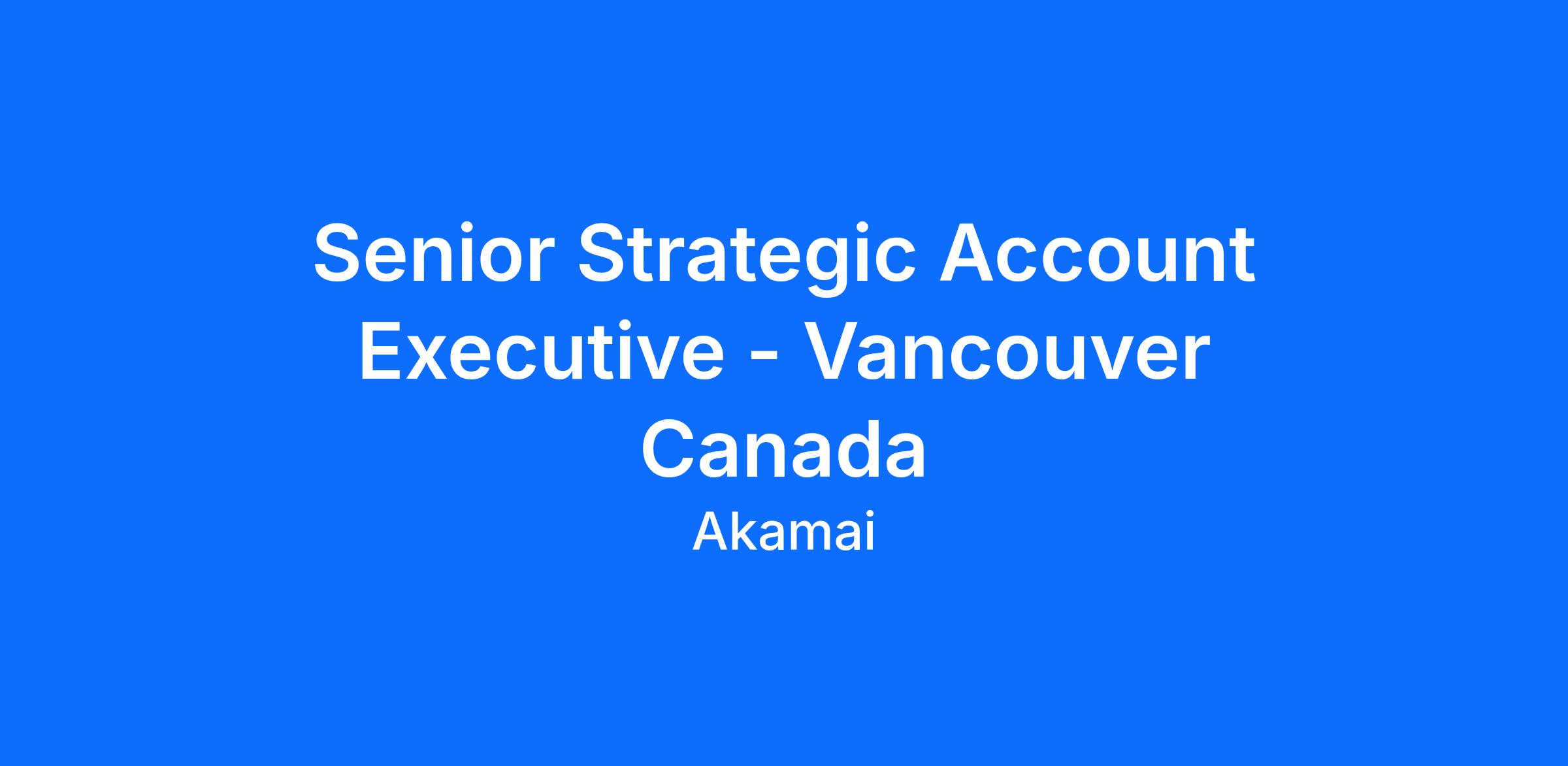 As a Senior Strategic Account Executive, you will increase revenue through selling into established large strategic accounts. You will work with multiple business units in a fast paced and innovative environment. You will champion Akamai's brand and relationships to bring value to new and returning customers.