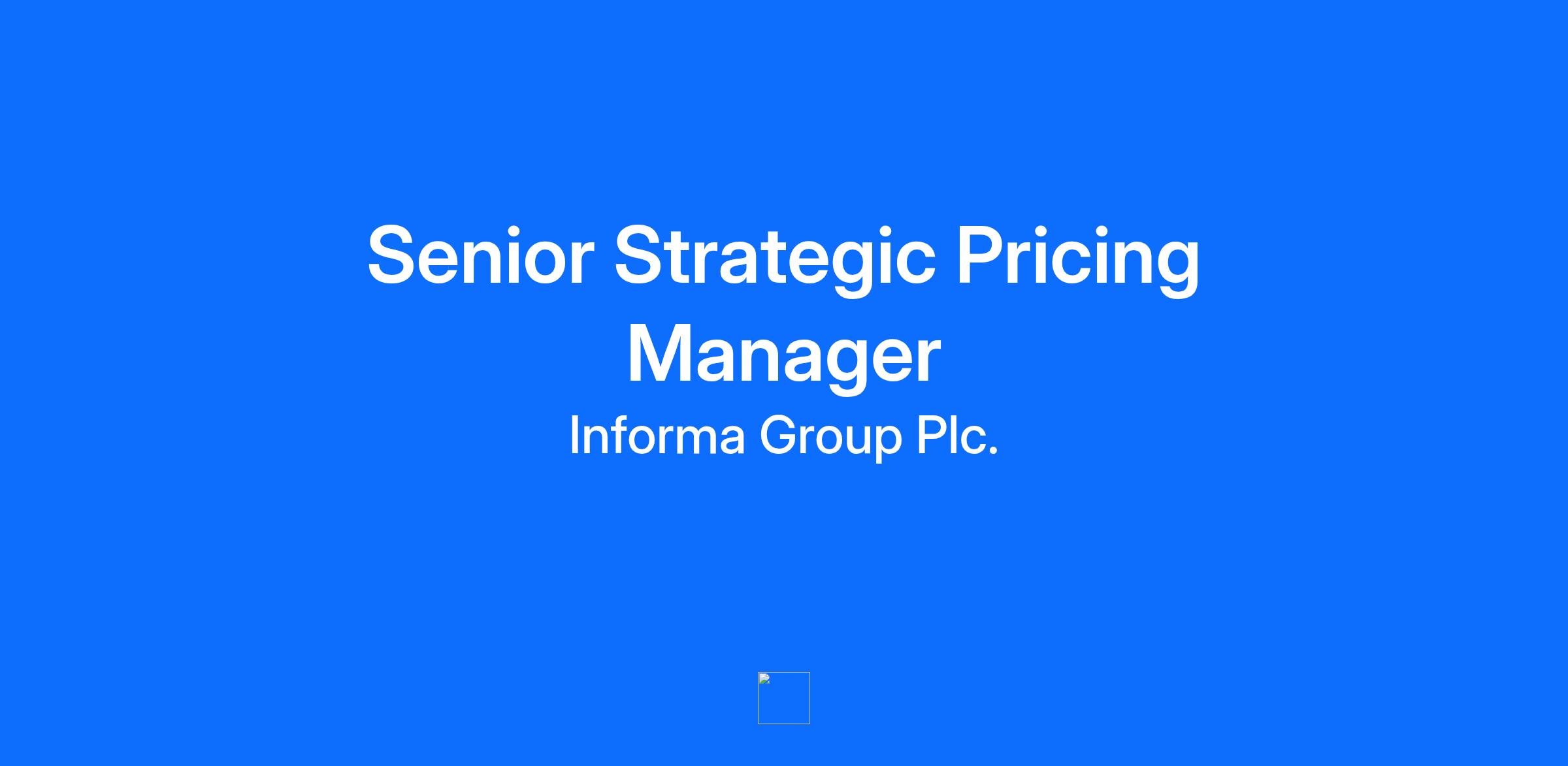 Company DescriptionInforma is a leading academic publishing, business intelligence, knowledge, and events business, creating unique content and connectivity for customers all over the world. It is listed on the London Stock Exchange and is a member of the FTSE 100. Taylor & Francis is one of the world’s largest publishers of high-quality, peer reviewed scholarly journals, books, e-books and reference works. We empower learners, thinkers and doers with trusted knowledge that advances research and enriches lives. We bring together diverse people, ideas and opinions to validate and publish the experts, theories and truths that matter. And we’ve been doing this in an unbroken arc since 1798. Our purpose is to foster human progress through knowledge. We strongly believe that this requires us to encourage and examine different ideas and voices, so that any work that meets our exacting levels of quality deserves to be included in our publications. This requires open minds, the opportunity for robust debate, and the courage to defend perspectives that stand up to scrutiny, even if they conflict with our personal beliefs or values. Because that’s the only way to find the best obtainable version of the truth and, ultimately, foster human progress. If you agree, then we’d love to hear from you. What we offer in return: At Taylor & Francis we care about our colleagues, promoting work-life balance, wellbeing, and flexible working. You will be joining a thriving business, working alongside an exceptional group of people. We believe that the skills and experience you bring to Taylor & Francis are invaluable. We want you to have the opportunity to develop your abilities, and to innovate and develop in areas which you are passionate about. Job DescriptionReady to shape the future of global academic publishing? Join Taylor & Francis as we transform how knowledge reaches millions of researchers, students, and professionals worldwide. This role requires a strategic thinker with deep expertise in pricing strategy, strong analytical capabilities, exceptional communication skills, and the ability to translate complex business challenges into actionable pricing and revenue optimisation strategies. As Senior Strategic Pricing Manager at Taylor & Francis, you will play a pivotal role in shaping pricing frameworks and strategies that directly impact how knowledge flows globally, fostering human progress. From developing innovative pricing models for AI-powered content platforms to driving revenue growth across 190 countries, your insights will be at the heart of our global success. This is a proactive and dynamic role, requiring someone ready to bring energy and momentum to the organisation, driving change and fostering a culture of accelerated delivery. You will work across the business, leading and collaborating with diverse teams and functions to deliver impactful pricing strategies. With the ability to drive alignment and execute strategic initiatives without direct authority, you will play a key role in ensuring the highest level of execution against business-wide goals while fostering collaboration and innovation across the organisation. The successful candidate will be able to utilise our balanced working model. We ask that candidates live within a reasonable commuting distance of our office in either Milton Park Oxfordshire (OX14) or London Blackfriars. At least 2 days per week will be worked from our office in Milton Park.Closing date: 2nd January 2026.Key Areas of Responsibility: Pricing Strategy Development Develop and execute comprehensive pricing strategies for new and existing products, ensuring alignment with business goals and market trends. Provide recommendations on bundling, subscription models, and discount strategies to drive revenue and engagement. Leverage analytics and data to assess market conditions, competitor pricing, and customer demand, identifying opportunities for price optimisation. Collaborate with Editorial, Commercial, and Marketing teams to align pricing strategies with overall product positioning. Data and Customer-Led Commercial Insights Conduct primary quantitative and qualitative market analysis to generate high-quality insights efficiently, informing strategic decision-making. Collaborate with finance, operations, and other departments to gather relevant data and validate strategic assumptions. Present findings and recommendations to executive and senior leadership teams through compelling presentations and reports. Project Management & Execution Lead high-priority strategic projects with multiple stakeholders, ensuring timely delivery and quality outcomes. Coordinate with various departments to ensure seamless execution of strategic initiatives. Identify and mitigate risks associated with strategic initiatives, developing contingency plans as needed. Stakeholder Management & Communication Build and maintain strong relationships with internal stakeholders across all organisational levels. Facilitate strategic planning sessions, workshops, and cross-functional meetings. Communicate complex strategic concepts clearly to diverse audiences, including technical and non-technical stakeholders. Serve as a strategic advisor and right-hand to the Global Pricing DirectorQualificationsSkills Pricing Expertise: Proven ability to develop and implement impactful pricing strategies that drive revenue growth and profitability. Independent Cross-Functional Leadership: Demonstrated ability to lead and collaborate across diverse teams and departments, driving alignment and execution of strategic initiatives without direct authority. Primary Customer Research: Skilled in conducting customer interviews, designing and executing surveys, and synthesising insights to inform strategic decision-making. Exceptional Communication: Strong stakeholder management and the ability to articulate complex pricing concepts clearly to diverse audiences. Data and Analytical Mastery: Expertise in transfo