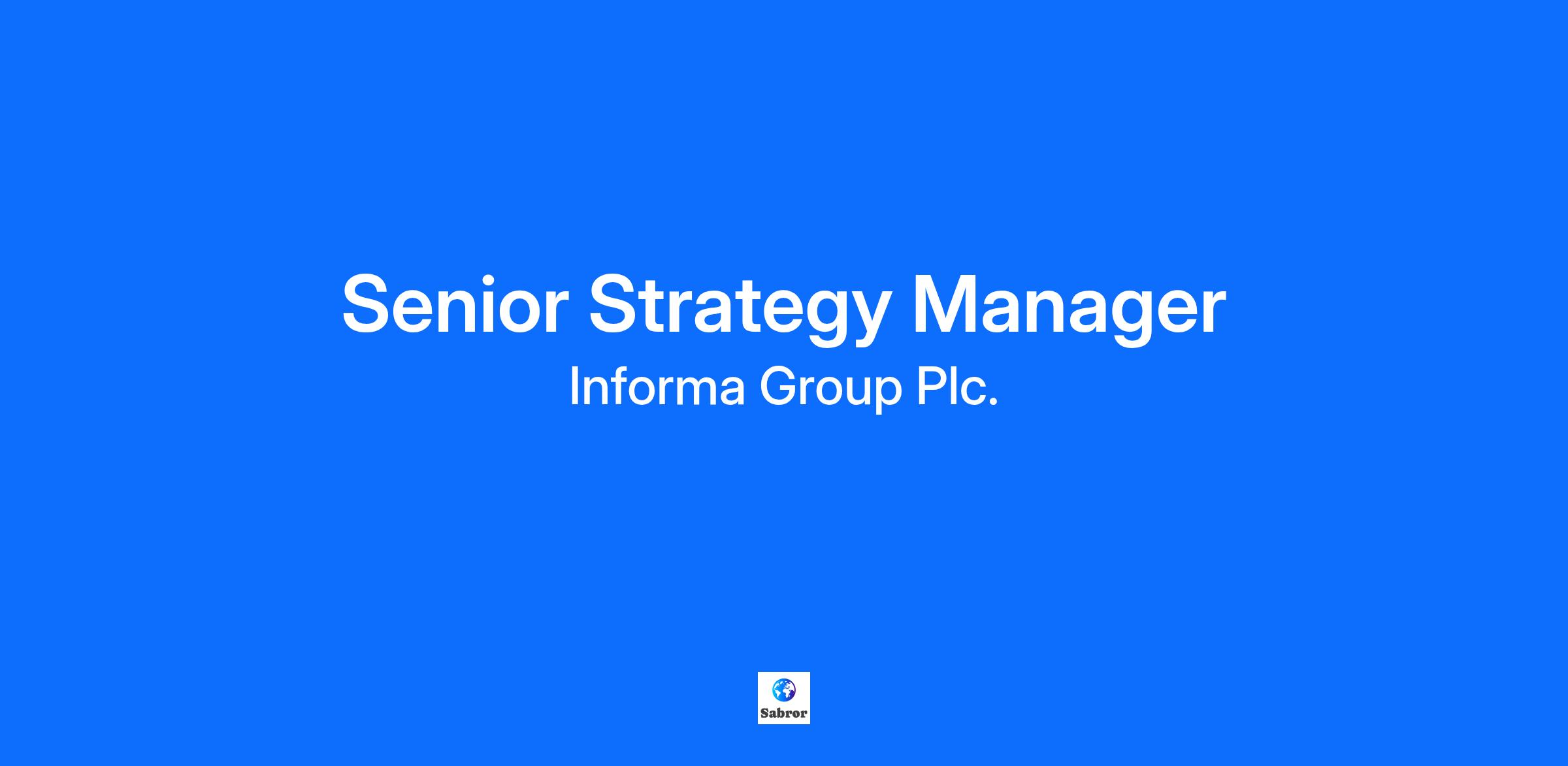 Company DescriptionInforma is a leading academic publishing, business intelligence, knowledge, and events business, creating unique content and connectivity for customers all over the world. It is listed on the London Stock Exchange and is a member of the FTSE 100. Taylor & Francis is one of the world’s largest publishers of high-quality, peer reviewed scholarly journals, books, e-books and reference works. We empower learners, thinkers and doers with trusted knowledge that advances research and enriches lives. We bring together diverse people, ideas and opinions to validate and publish the experts, theories and truths that matter. And we’ve been doing this in an unbroken arc since 1798. Our purpose is to foster human progress through knowledge. We strongly believe that this requires us to encourage and examine different ideas and voices, so that any work that meets our exacting levels of quality deserves to be included in our publications. This requires open minds, the opportunity for robust debate, and the courage to defend perspectives that stand up to scrutiny, even if they conflict with our personal beliefs or values. Because that’s the only way to find the best obtainable version of the truth and, ultimately, foster human progress. If you agree, then we’d love to hear from you. What we offer in return: At Taylor & Francis we care about our colleagues, promoting work-life balance, wellbeing, and flexible working. You will be joining a thriving business, working alongside an exceptional group of people. We believe that the skills and experience you bring to Taylor & Francis are invaluable. We want you to have the opportunity to develop your abilities, and to innovate and develop in areas which you are passionate about. Job DescriptionReady to shape the future of global academic publishing? Join Taylor & Francis as we transform how knowledge reaches millions of researchers, students, and professionals worldwide. This role requires a strategic thinker with strong analytical capabilities, exceptional communication skills, and the ability to translate complex business challenges into actionable strategic recommendations. As Senior Strategy Manager at Taylor & Francis, you will be in the strategic engine room behind initiatives that reach 10+ million researchers worldwide. From AI-powered content platforms to market expansion across 190 countries, your insights will directly shape how knowledge flows globally and fosters human progress. Working across the business and getting things done, this is a proactive and dynamic role. Ready for a challenge and able to handle change – this role is about making impact and driving collaboration to ensure execution of the highest level against business wide strategies. Closing date: Friday 12th December 2025.Key Areas of Responsibility: Strategic Planning & Analysis Play a critical role in strategic planning and Informa Group processes e.g. board meetings, multi-year financial planning. Lead cross-functional strategic initiatives from conception through to implementation, “move the dial” on growth Create detailed business cases for new ventures, partnerships, acquisitions, and market expansion opportunities Data-led Commercial Insights Conduct in-depth market research, competitive analysis, and industry trend assessment – generating high quality insights quickly and efficiently to inform strategic decision-making and disseminating to the leadership team Collaborate with finance, operations, and other departments to gather relevant data and validate strategic assumptions Present findings and recommendations to executive and senior leadership team members through compelling presentations and reports Project Management & Execution Lead high-priority strategic projects with multiple stakeholders, ensuring timely delivery and quality outcomes Coordinate with various departments to ensure seamless execution of strategic initiatives Identify and mitigate risks associated with strategic initiatives, developing contingency plans as needed Stakeholder Management & Communication Build and maintain strong relationships with internal stakeholders across all organizational levels Facilitate strategic planning sessions, workshops, and cross-functional meetings Communicate complex strategic concepts clearly to diverse audiences, including technical and non-technical stakeholders Serve as a strategic advisor and right-hand to the Head of Strategy QualificationsSkills A proven ability to develop and implement impactful strategic initiatives.Data Mastery: Expertise in transforming complex datasets into compelling executive presentations and actionable insights. Global Mindset: Ability to navigate international markets, cross-cultural dynamics, and global growth opportunities. AI-Forward: Proficiency in leveraging cutting-edge tools, including AI and data analytics platforms, to drive innovation and amplify impact. Exceptional Communication: Strong stakeholder management and the ability to articulate complex concepts clearly to diverse audiences. Experience: Top-tier consulting background or equivalent strategy experience Ideally you will have experience of working in publishing, knowledge driven or B2B/B2C information businesses or Ed-tech industries Successful execution of global initiatives across multiple countries and regions. Driving innovation and growth through new product launches, market expansions, or acquisitions. Facilitating workshops, strategic planning sessions, and executive-level discussions. Knowledge Passion: Understanding of academic/scholarly communication and a genuine passion for advancing the mission.Additional InformationLocationWe believe that great things happen when people connect face-to-face. That's why we work in-person with each other, or with customers and partners, three days a week or more. When you’re not spending time together in one of our offices or other workplaces – like at conference – you get the flexibili