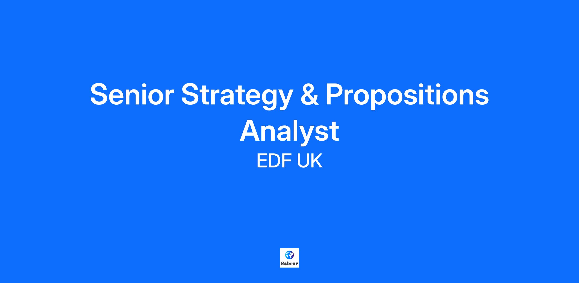 Job Description Ready to shape the future of energy strategy? Join us and make a real impact by driving high-value business recommendations and developing propositions that help Britain achieve net zero. At EDF, Success is Personal – and with us, your career journey is yours to shape. The Opportunity As a Strategy and Propositions Senior Analyst, you’ll play a pivotal role in steering strategic initiatives that influence senior decision-making and deliver outcomes that matter. Your insights will help us stay competitive and resilient in a fast-changing energy market. You’ll join us on a salary starting at £44,800 per annum, with the potential for an annual bonus. This is a remote role with flexibility to travel to our London or other offices when needed – or more often if you prefer. From analysing market trends to shaping customer propositions, you’ll work with diverse teams and senior leaders to deliver strategic solutions. EDF will support your growth with opportunities to learn, collaborate and make a difference. Who You Are We’re looking for a commercially minded, analytically strong Strategy and Propositions Senior Analyst who thrives on collaboration and strategic thinking. To be shortlisted, you’ll need to offer: Strong commercial acumen to deliver high-value business recommendations Proven experience in stakeholder and project management A proactive approach to proposition development from concept through to delivery Advanced data analysis skills to extract meaningful insights from complex datasets Ability to communicate and present effectively across all business levels Experience in Business Energy Supply and Energy Markets is desirable, but not essential – we value transferable skills and welcome applicants from diverse backgrounds who bring strong analytical and strategic capabilities. What You’ll Be Doing Collaboration is key in this role. You’ll work closely with senior leaders and teams across EDF Business Solutions and wider areas of the business, building strong relationships to deliver strategic outcomes. Your responsibilities will include: Leading strategic workstreams and aligning stakeholders for senior decision-making Developing and refining business propositions based on market and customer insights Delivering market analysis, portfolio and competitor insights to inform strategy Building business cases that drive strategic and commercial decisions Presenting recommendations confidently to senior leaders and cross-functional teams Pay, Benefits and Culture Alongside a starting salary of £44,800 per annum, potential for an annual bonus, and a market-leading pension scheme, your package will include customisable benefits such as electric vehicle leasing, discounted gym membership, life assurance, tech vouchers, experience days and more. At EDF, we believe success has many definitions. That’s why we offer you the freedom to develop a career that’s unique to you. Here, Success is Personal – it’s your journey, powered by us. Everyone is welcome at EDF; we’re committed to building a workforce that reflects gender balance, social mobility and inclusion of minority ethnic backgrounds, LGBTQ+ communities and those with disabilities. As a Disability Confident employer, we will support applicants requiring adjustments. Closing date for applications: 07.12.2025 Join us and find your success at EDF! #SuccessIsPersonal #EDFcareers #LI-Remote Additional Information Success is Personal. It's your journey, powered by us. Join us and drive the transition toward an Electric Britain.