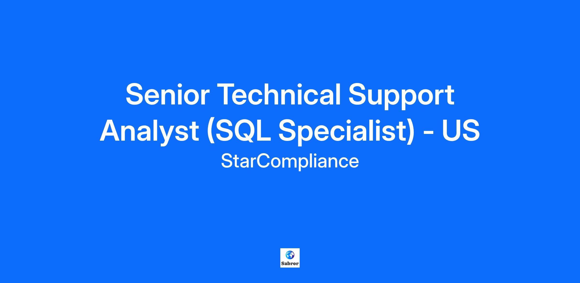 StarCompliance is seeking an experienced Senior Technical Support Analyst (SQL Specialist), based in the United States to join our dynamic, client-facing Client Support Services team.