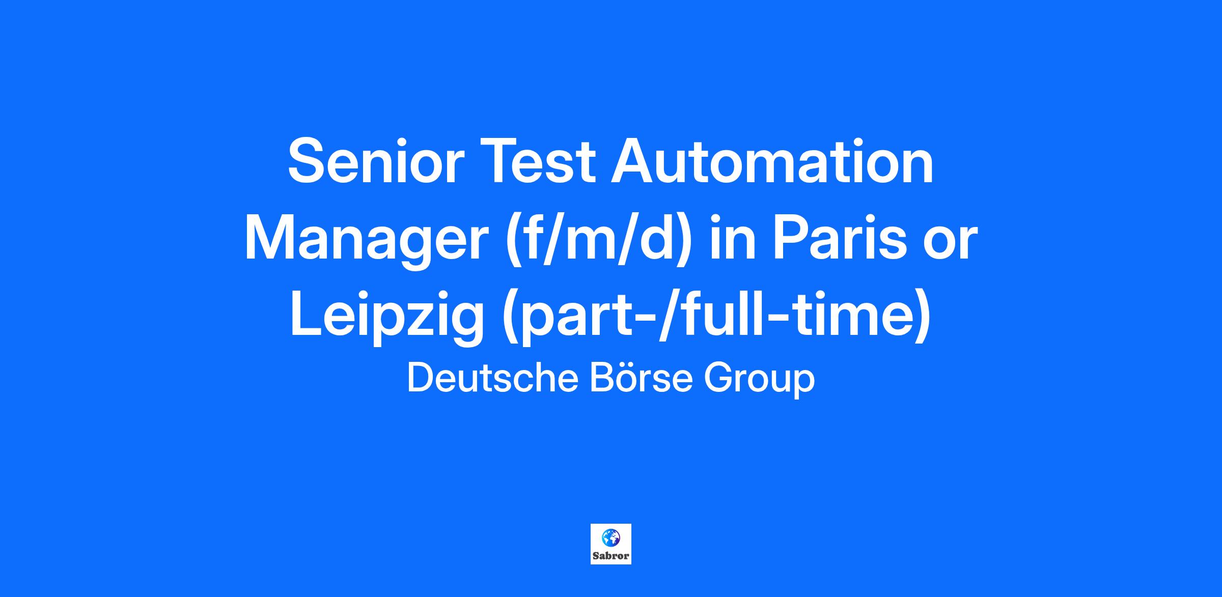This position can be filled in one of our EEX offices in Paris or Leipzig. Are you passionate about quality assurance and automation? Join us and take part in shaping the testing for our energy commodities spot trading system and related applications. Here you can find out more about our EEX Markets Your tasks In this role of a Senior Test Automation Manager (f/m/d) you will ensure comprehensive test coverage, drive automation-first principles, and validate system performance to enable a seamless migration to our next-generation trading infrastructure. You will be an active player in delivering to our test strategy and will define priorities based on risk and performance benchmarks, ensuring alignment with functional requirements and regulatory standards. Working closely with business stakeholders and development teams, you will maintain and enhance test tooling and automation frameworks for acceptance and integration testing.Your responsibilities will include coordinating user acceptance testing with external customers and vendors, managing integration testing across multiple systems, and overseeing defect lifecycle management. You will monitor and report on test execution, providing clear metrics on coverage, defects, and production readiness. Additionally, you will maintain transparent, production-like environments and support performance testing by defining KPIs and benchmarking results. If you thrive on solving complex challenges and want to make a real impact on the reliability and scalability of trading systems, we’d love to hear from you. After all, we value the exchange of ideas, being there for each other and encouraging each other to become better. We call it: the exchange mindset. You bring along Degree in Computer Science, Information Technology, Engineering, Mathematics, Finance, or Economics At least 5 years of relevant working experience, ideally in the area of capital markets and exchange trading Expertise in API testing, test automation frameworks, and CI/CD integration Familiarity with performance testing methodologies for data-intensive and time-critical applications Strong understanding of risk-based testing and quality assurance best practices Understanding of underlying network technologies such as TCP/IP, UDP, HTTP/HTTPS, REST, MQ, WebSocket, Protobuf, JSON, XML, TLS/SSL Familiarity with financial regulations and compliance standards related to trading systems is a plus Ability to work in a team and independently, ability to take responsibility, strong communication skills, and a can-do attitude Experience in project management or leading cross-functional teams is a plus Commitment to continuous learning and staying updated with industry trends and best practices High proficiency in English Why join us? Attractive salary package with many benefits Flexible mobile working arrangements Personal development thanks to extensive further training opportunities A place in a dynamic and international team within EEX Group and Deutsche Börse Group A long-term perspective in the constantly growing and evolving energy industry