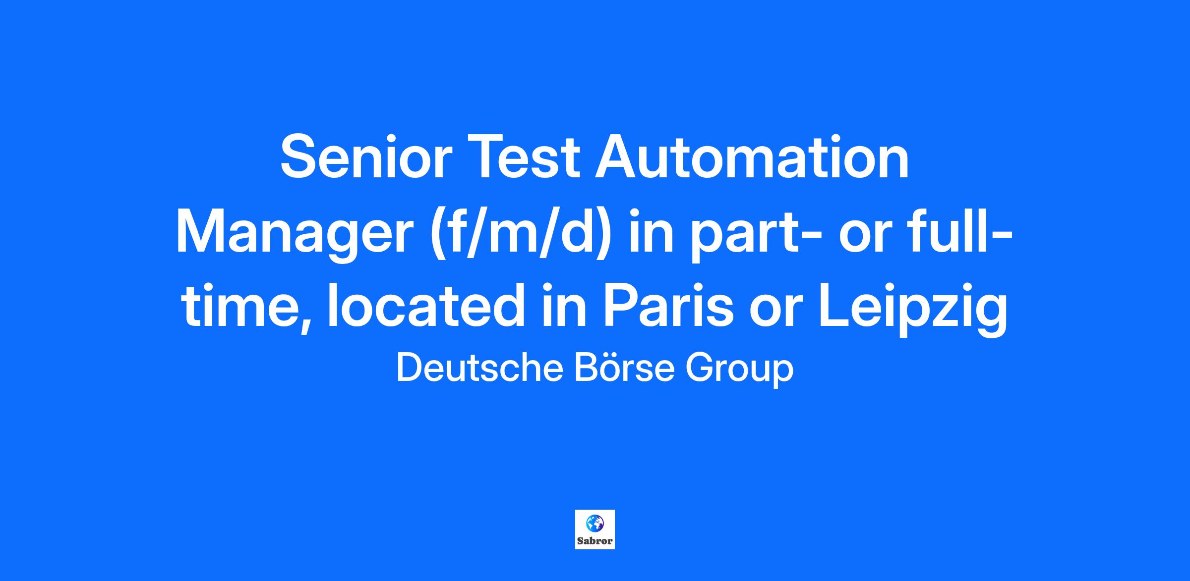 This position can be filled in one of our EEX offices in Paris or Leipzig.    Are you passionate about quality assurance and automation? Join us and take part in shaping the testing for our energy commodities spot trading system and related applications. Here you can find out more about our EEX Markets   Your tasks In this role of a Senior Test Automation Manager (f/m/d) you will ensure comprehensive test coverage, drive automation-first principles, and validate system performance to enable a seamless migration to our next-generation trading infrastructure. You will be an active player in delivering to our test strategy and will define priorities based on risk and performance benchmarks, ensuring alignment with functional requirements and regulatory standards. Working closely with business stakeholders and development teams, you will maintain and enhance test tooling and automation frameworks for acceptance and integration testing.Your responsibilities will include coordinating user acceptance testing with external customers and vendors, managing integration testing across multiple systems, and overseeing defect lifecycle management. You will monitor and report on test execution, providing clear metrics on coverage, defects, and production readiness. Additionally, you will maintain transparent, production-like environments and support performance testing by defining KPIs and benchmarking results. If you thrive on solving complex challenges and want to make a real impact on the reliability and scalability of trading systems, we’d love to hear from you. After all, we value the exchange of ideas, being there for each other and encouraging each other to become better. We call it: the exchange mindset.   You bring along Degree in Computer Science, Information Technology, Engineering, Mathematics, Finance, or Economics At least 5 years of relevant working experience, ideally in the area of capital markets and exchange trading Expertise in API testing, test automation frameworks, and CI/CD integration Familiarity with performance testing methodologies for data-intensive and time-critical applications Strong understanding of risk-based testing and quality assurance best practices Understanding of underlying network technologies such as TCP/IP, UDP, HTTP/HTTPS, REST, MQ, WebSocket, Protobuf, JSON, XML, TLS/SSL  Familiarity with financial regulations and compliance standards related to trading systems is a plus Ability to work in a team and independently, ability to take responsibility, strong communication skills, and a can-do attitude Experience in project management or leading cross-functional teams is a plus Commitment to continuous learning and staying updated with industry trends and best practices High proficiency in English   Why join us? Attractive salary package with many benefits  Flexible mobile working arrangements  Personal development thanks to extensive further training opportunities A place in a dynamic and international team within EEX Group and Deutsche Börse Group A long-term perspective in the constantly growing and evolving energy industry