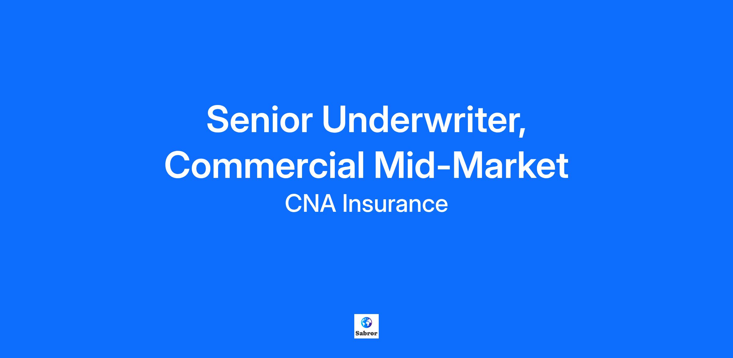 You have a clear vision of where your career can go. And we have the leadership to help you get there. At CNA, we strive to create a culture in which people know they matter and are part of something important, ensuring the abilities of all employees are used to their fullest potential. Under technical direction, responsible for underwriting risks in a book of business in Commercial Mid-Market. Works within specific limits of authority on assignments requiring significant technical complexity and coordination. Utilizes underwriting policies and guidelines, rating manual rules and insurance laws and regulations. JOB DESCRIPTION: Essential Duties & Responsibilities • Performs a combination of duties in accordance with departmental guidelines. • Reviews applications and financial requirements for risks requiring complex underwriting skills. Determines acceptability of risk in accordance with company guidelines and standards. Also, determines the need for additional evidence of insurability and appropriate strategy. • Determines appropriate pricing based on financial and competitive analysis in line with compliance requirements. • Prepares quotes and answers questions from Brokers, policyholders or other external contacts and escalates issues to management along with proposed solutions as necessary. Negotiates with brokers to reach positive and profitable outcomes. • Notifies brokers of adverse underwriting decisions, rate changes, underwriting requirements, status and declinations. • Analyzes quality, quantity, and profitability of risks underwritten and prepares reports for management review. • Markets products and services through the brokerage community and makes field visits. Develops and maintains broker relationships. • May provide guidance and assistance to other underwriters and to other functional areas, particularly when related to cross-sell opportunities. • Keeps current on provincial and federal issues and regulations, industry activity and trends and freely shares information with others. • Utilizes advanced functionality in relevant CNA systems to perform day-to-day activities. • Works with more specialists or management on risks exceeding authority level or requiring special handling. Skills, Knowledge and Abilities • Advanced knowledge of underwriting and insurance industry theories and practices. • Demonstrated high level of technical expertise and product specific knowledge. • Strong interpersonal, communication and negotiation skills. Ability to effectively interact with all levels of CNA's internal and external business partners. • Ability to work independently. • Strong analytical and problem solving skills. • Ability to exercise independent judgment and to make critical business decisions effectively. • Knowledge of Microsoft Office Suite as well as other business-related software. • Demonstrated leadership skills. Education and Experience • Bachelor's degree or equivalent experience. Professional designations preferred. • Typically a minimum five years underwriting experience. At CNA, we are committed to providing equal employment opportunities to all employees and applicants. It is our policy to provide equal employment opportunities to employees and applicants based on job-related qualifications and ability to perform a job. If you require an accommodation during the hiring process or upon hire, please inform Human Resources. If a selected applicant requests accommodation during the recruitment process, CNA will consult with the applicant in order to provide suitable accommodation that takes into account the applicant’s accessibility needs. At CNA, we are focused on success, individually and collectively. We pride ourselves on promoting a culture that challenges and engages people. We strive to connect people, departments and business areas, to function as a team, and to serve our customers and communities with professionalism and respect. Our dedication to employee engagement, continuous learning and the open exchange of ideas is the cornerstone of our business. These ideals, combined with our focus on the customer, enable us to explore new market opportunities and build on our success. Our values, culture and financial strength are what differentiates us from other employers and make CNA the place you want to work. At CNA, we are committed to advancing a culture of inclusion – one that attracts talent from all walks of life, fosters respect and collaboration, and enables all of our colleagues to do their best work. At CNA, we have a long standing commitment to the diverse communities in which we live and work. We actively make a difference for the greater good through partnerships, sustainability, initiatives, and working together for a better tomorrow. Corporate Social Responsibility is not one person, or one department, it's the entire enterprise coming together to make the world a better place.