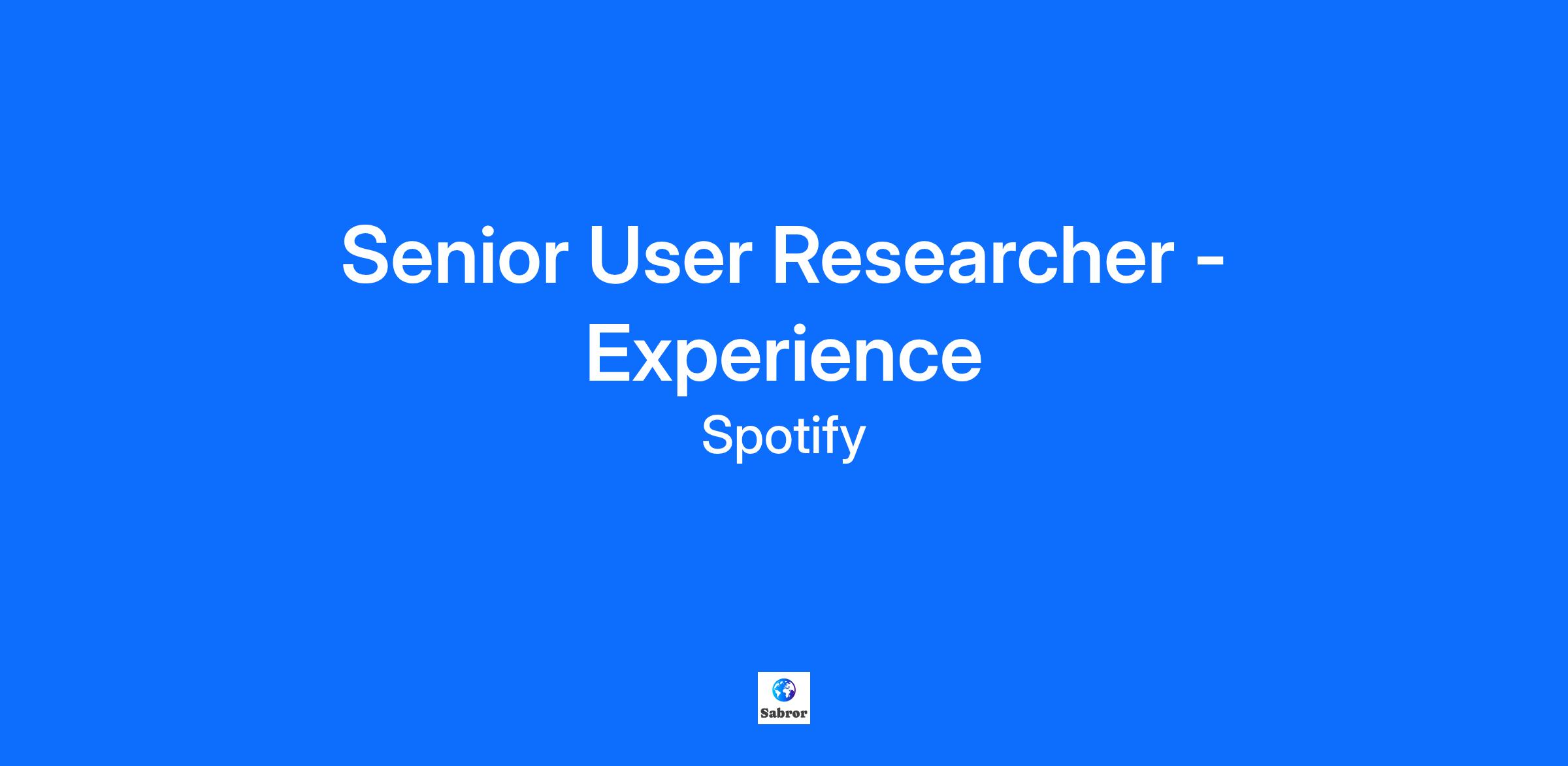 Delivering the best Spotify experience, everywhere and every time. Spotify is seeking a Senior User Research to help explore and deliver the future of Spotify’s experience in third-party AI agents and ecosystems. This is a rare opportunity to understand and shape how music, podcasts, and audiobooks are discovered, consumed, and enjoyed by people all over the world as the paradigm of interaction shifts toward agentic, AI-driven experiences. In this role, you will bring deep AI literacy, strong research craft and excellent systems thinking. Partner AI is how we extend Spotify’s ubiquity into the new agentic AI paradigm — across assistants, devices, and multimodal platforms. This is our moment to build the insights and understanding that will ensure Spotify thrives when experiences are mediated by AI systems and partners on a global scale. As a Senior User Researcher for Partner AI, you’ll uncover the human truths behind the most ground-breaking shift in user interaction since mobile. Explore how people discover and engage with Spotify on tech platforms, translating insights into strategic framing for teams. Your work will define what “Spotify through AI” feels like — ensuring we’re indispensable wherever people engage with music, podcasts and audiobooks. \n What You'll Do * Drive Human-Centered Insight in Partner AI: Define, plan, and conduct research that reveals how users engage with AI assistants, multimodal devices, and partner ecosystems. * Shape Product Strategy: Deliver evidence-based insights that guide Spotify’s Partner AI roadmap — influencing integrations, UX, and product direction. * Explore the Frontier: Investigate emerging behaviours and expectations around agentic, voice-first, and multimodal interactions. Translate ambiguity into clarity. * Partner Cross-Functionally: Collaborate with Product, Design, Data Science, and Engineering to ensure Spotify’s AI experiences are human-centred and grounded in real needs. * Shaping decisions “in the room”: Represent research in conversations with cross functional leads, as well as senior executive level stakeholders both from Spotify and our partner organizations. * Connect External & Internal Worlds: Synthesise user research findings with partner insights to shape cohesive experiences across platforms. * Evangelise Research Impact: Communicate findings through storytelling, visuals, and workshops that encourage action and drive alignment. * Advance the Practice: Mentor peers, foster curiosity, help evolve Spotify’s research capabilities in AI. Who You Are * Expert researcher extensive industry user research experience, with a degree or equivalent experience in Human-Computer Interaction, Cognitive Psychology, AI Interaction, or Social Science. * Skilled in a wide array of User Research methods (ethnography, contextual inquiry, usability testing, concept testing) and confidence blending them with quantitative or behavioural data. * Curious about AI-mediated experiences — from assistants to wearables — and passionate about understanding how humans adapt to emerging technology. * Comfortable navigating ambiguity, breaking down unstructured challenges into actionable learning plans. * A storyteller able to encourage confidence across engineering, design and business teams. * Excellent communicator, comfortable with senior audiences who thrives in dynamic, live, discussion, debate, and reasoning * Experienced in partnered or cross-ecosystem environments is preferred — understanding how research can bridge internal goals with external constraints. * A self-starter who thrives in pushing the envelope of emerging technologies, dynamic environments, balancing near-term delivery with long-term vision. * A strong system thinker with deep UX expertise to influence scalable, cohesive experiences in partner environments with a deep knowledge and understanding of the implications for Spotify our own experiences too Where You'll Be * This role will be based in London or Stockholm. * We offer you the flexibility to work where you work best! There will be some in person meetings, but still allows for flexibility to work from home. * While our core team are based in Europe, partners and users are often across global time zones. Some flexibility around early starts or late meetings will be necessary in this space. Some research related and partner related travel is expected. \n