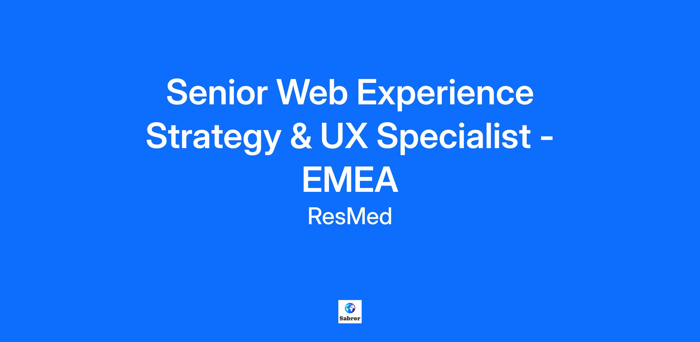 We are looking for our future Senior Web Experience Strategy & UX Specialist for EMEA to join our Global Digital Marketing team. The role is located in Dublin, Ireland or Lyon, France. Let's talk about the role : The Resmed Global Marketing team orchestrates campaigns, programs, and experiences for a variety of external audiences. This role, Senior Web Experience Strategy & UX Specialist, is focused on advancing our web experience capabilities and driving innovation across our global web ecosystem, with a particular emphasis on the Healthcare Provider audience as Consumer Audience in the EMEA region. This is a high-impact individual contributor role within our Web Experience team, charged with identifying new functionality, informing our platform evolution, and partnering across Marketing and Technology to shape the future of our website capabilities. This role is ideal for a senior digital strategist and technologist who brings a deep understanding of enterprise website platforms, a strong vision for the role of websites in B2B and B2C journeys, and a hunger to drive forward site functionality, analytics maturity, and audience engagement. You will work closely with Americas and EMEA Web Experience Strategy & UX teams to align on global WebX solutions and roadmaps and you will work on a daily basis with EMEA web content specialists and UX/UI experts to deploy solution in your region. You’ll collaborate deeply with MarTech, Creative, Brand, Corporate Communications, Analytics, and Global Audience Strategy colleagues to ensure new capabilities are feasible, impactful, and compliant—helping to modernize how we engage our B2B and B2C audiences through digital platforms. Let's talk about Core Responsibilities: Regional Strategic Leadership: Act as a strong EMEA WebX partner and support our strategic roadmap (PODs, regional & projects) for both provider and consumer audiences as well as Brand & Corp Com, focusing on discoverability, usability, personalization, and engagement Innovation & Experimentation: Lead the exploration of new web capabilities such as interactive tools, dynamic content, and advanced analytics integrations Cross-Functional Collaboration: Work closely with Brand, Analytics, Creative, MarTech, and other teams to align features with user needs and business goals UX Optimization & CRO: Optimize customer journeys to ensure smooth and engaging navigation. Promote best practices in SEO, mobile-first design, CRO and agile experimentation frameworks Trend Monitoring & Compliance: Stay ahead of web trends , ensuring all initiatives meet web design trends, as well as privacy, accessibility, and compliance standards Analytics focus: Help scale web performance best practices across our websites with an emphasis on technical SEO, page speed, and mobile-first experiences. Advocate for a measurable, modular, and agile approach to advancing Resmed’s web experience stack Let's talk about your qualification, skills and experience : 10+ years of experience in digital marketing, web strategy, or product management, with a strong focus on enterprise website platforms and capabilities Experience developing and influencing technical roadmaps for large-scale websites Deep knowledge of modern web experience capabilities including site personalization, CMS modules, digital self-service, and user journey architecture Familiarity with platforms and tools such as WordPress, HubSpot, Adobe Experience Manager, A/B Tasty, GA360, Looker, and DataDog. Proven success in driving cross-functional collaboration without direct authority. Strong understanding of privacy, accessibility, and compliance requirements in regulated industries. Excellent critical thinking, problem solving, and communication skills—able to translate complexity into actionable strategic direction. Experience with agile methodologies and experimentation frameworks is preferred Fluent English required; additional languages are a plus. Additional information : At ResMed, all employees benefit from a bonus plan, the percentage of which depends on your position within the organisation. Competitive benefits Working from home flexibility You also have access to a referral bonus and to ResMed's preferred shareholding programme Internal career opportunity - joining an international fast-pace and massively growing company OK, so what's next? Joining us is more than saying “yes” to making the world a healthier place. It’s discovering a career that’s challenging, supportive and inspiring. Where a culture driven by excellence helps you not only meet your goals, but also create new ones. We focus on creating a diverse and inclusive culture, encouraging individual expression in the workplace and thrive on the innovative ideas this generates. If this sounds like the workplace for you, apply now! #LI-EU Joining us is more than saying “yes” to making the world a healthier place. It’s discovering a career that’s challenging, supportive and inspiring. Where a culture driven by excellence helps you not only meet your goals, but also create new ones. We focus on creating a diverse and inclusive culture, encouraging individual expression in the workplace and thrive on the innovative ideas this generates. If this sounds like the workplace for you, apply now! Resmed (NYSE:RMD, ASX: RMD) creates life-changing health technologies that people love. We’re relentlessly committed to pioneering innovative technology to empower millions of people in more than 140 countries to live happier, healthier lives. Our AI-powered digital health solutions, cloud-connected devices and intelligent software make home healthcare more personalized, accessible and effective. Ultimately, Resmed envisions a world where every person can achieve their full potential through better sleep and breathing, with care delivered in their own home. Learn more about how we’re redefining sleep health at Resmed.com and follow @Resmed.