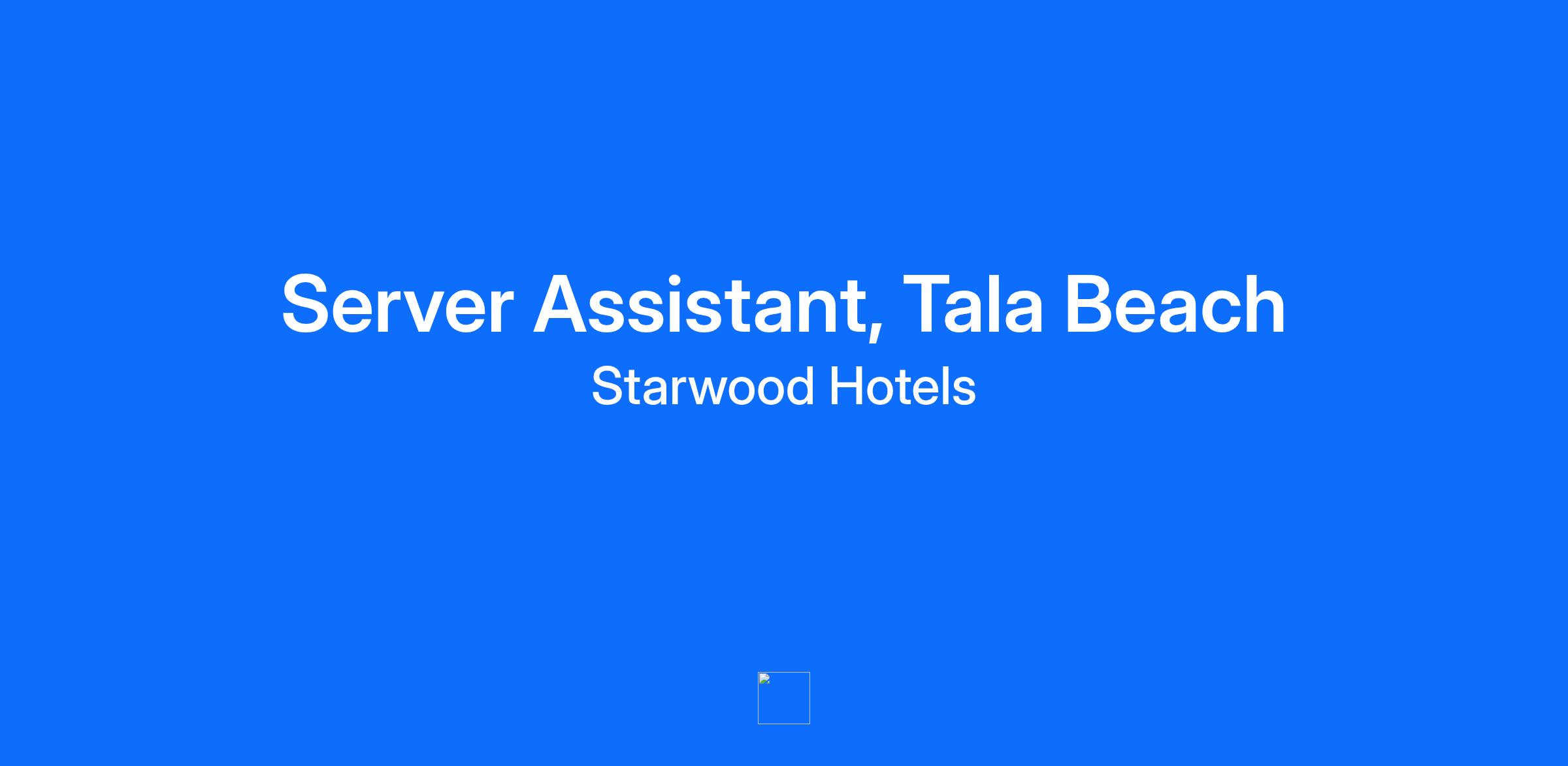 Grow with us... Life at Starwood Hotels is based on a simple idea: the world is beautiful and we want to keep it that way. But we can’t do it alone. That’s why hiring thoughtful and inspiring Team Members and Leaders who understand that our people, collaboration, stellar service, and respect for nature are so important to us. Every day is precious, especially the experiences we encounter with those around us. The Food & Beverage team understand (and value) that great, mindful people are required to execute an exquisite affair for our guests. Our team is currently seeking a hard-working, attentive Server Assistant for our Tala Beach restaurant. In this role, you'll master the ability to provide support for the F&B team, to ultimately execute the perfect experience for our guests dining experience with us. Inside tip: Being attentive to the smallest details will ensure your success in this role About you... Passionate about curating the guest experience . Basic knowledgeable of Food and Beverage operations, a team player, hard worker, and detail oriented. Is flexible and willing to meet the demands of a 24-hour operation. About us... As a mission-driven company, our purpose is our true north, and our compass guides the way. The purpose we live by impacts the lives of our team members, drives the experiences for our guests, builds community with like-minded travelers and takes care of the planet we live in. Founded in 2006 by Barry Sternlicht, Starwood Hotels is a luxury hotel brand management company and affiliate of global private investment firm Starwood Capital Group. Starwood Hotels is an Equal Opportunity Employer. We believe in a diverse, sustainable workforce with an empowered, inclusive culture. We are committed to non-discrimination on any protected basis covered under applicable law. If you require any special accommodations, please visit People Operations. Life at Starwood Hotels is based on a simple idea: the world is brimming with natural beauty, vivid splendor, and heartwarming whimsy—and we want to keep it that way. Our mission is to inspire others to do the same while crafting unique and evolved luxury experiences. We seek next-level talent with lots of heart and plenty of hustle, individuals who love to be of service, obsess over details, honor nature, aren’t afraid to ask questions, have the confidence to share new ideas and the respect to listen to diverse worldviews. We care about who you are, how you treat others and what fires you up. Read on to learn more about our new opportunities, open now