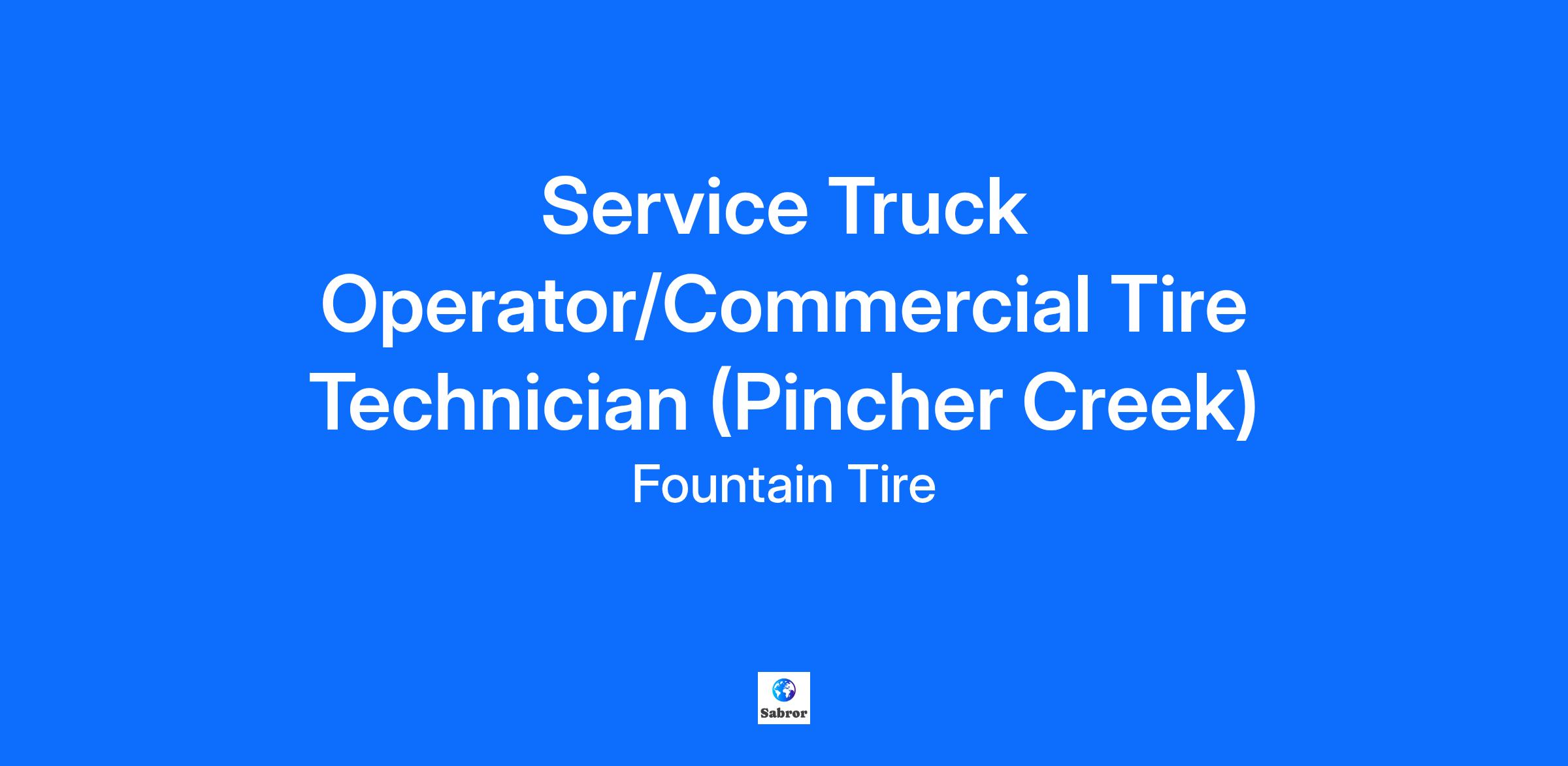 Overview Fountain Tire Pincher Creek is looking for a reliable Commercial Tire Technician to operate a Tire Service Truck! If you are a team player ready to tackle any tire or task, and are dedicated to providing top-notch service, we want to hear from you! What is in it for you? Competitive compensation based on experience We take care of you and your family with our impressive health, dental and vision benefits A retirement savings plan with company matching to help you achieve your financial goals We will develop your skills and certifications with our excellent training Regular day shifts with the opportunity for money-making overtime and on-call work Save your money with our staff discounts on tires, parts and mechanical services at all Fountain Tire locations An awesome Fountain Tire work truck for your service calls What each day will bring: Something different! You never know what kind of vehicle or tire you may be required to work on You could be inspecting, installing, balancing, rotating, and/or repairing truck, farm or industrial tires and wheels Amazing customers to impress with your professional and friendly customer service The responsibility to keep yourself and your coworkers safe Pride in the work you've done keeping your customers safe, on the road, site or field! What kind of person are we looking for? Candidates with previous experience as a Commercial Tire Technician preferred Must possess a valid driver’s license and be able to provide a satisfactory passenger or commercial Driver’s Abstract This work can unpredictable, physical, wet, cold, windy etc. and we need someone who will be up for the challenge We need someone who can be on call after hours Must be able to lift up to 100 pounds if required At Fountain Tire, you’d have a great place to work! Market leading wages, a manager with a large support network, and the chance to learn and grow. If you are interested apply in-store or online today!