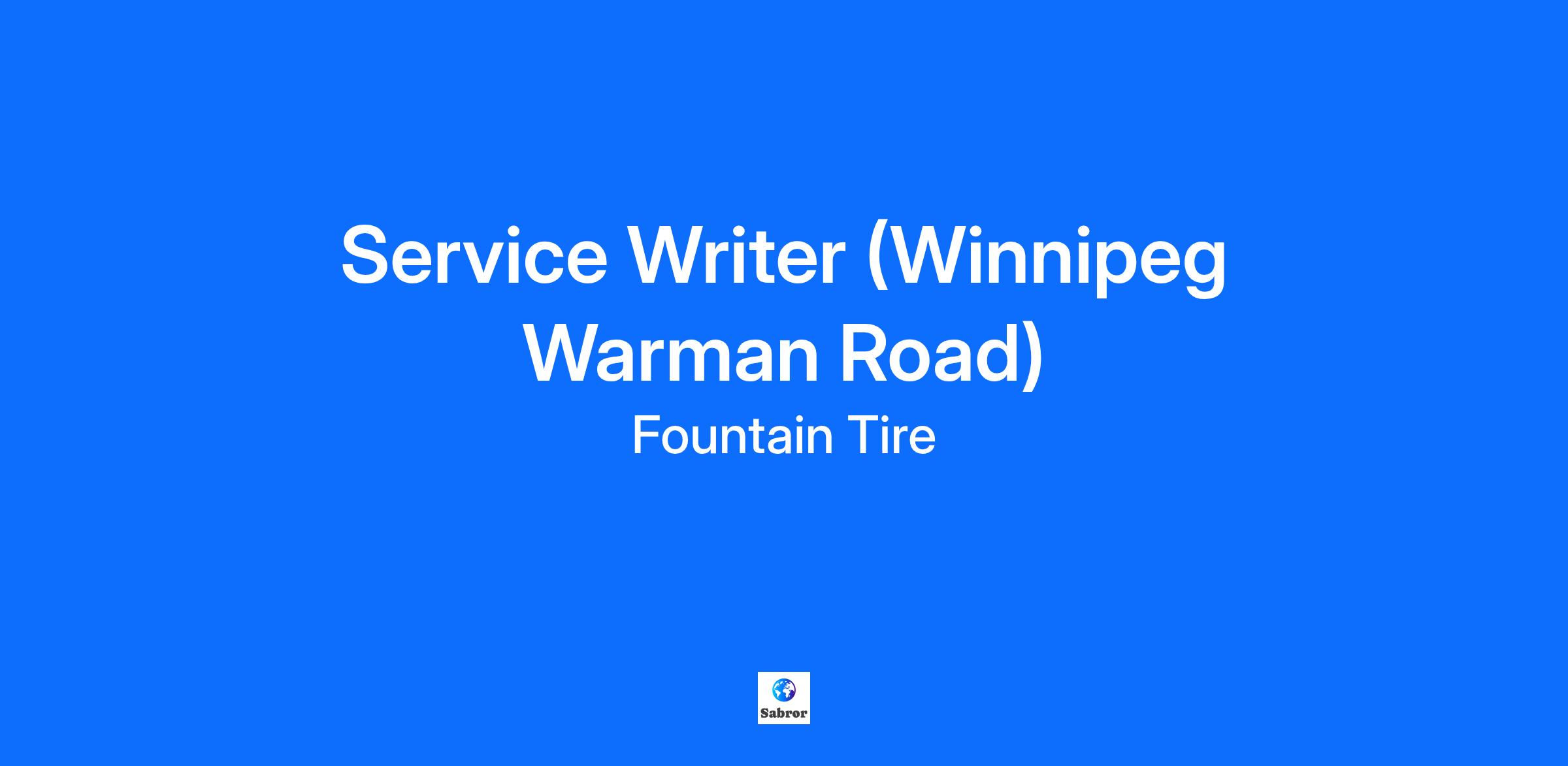 Overview Fountain Tire Winnipeg (Warman Road), an established automotive repair shop, is looking for a friendly and dedicated individual to join our team as a Service Writer! At Fountain Tire, our associates are our number one asset. As a vital member of our team, you will get to enjoy some great benefits: What is in it for you? Competitive compensation: $19 to $25 per hour (based on experience) Comprehensive health, dental, and vision benefit programs for you and your family, including an RRSP program with company matching We will develop your skills and certifications with our excellent training program & opportunity for advancement The opportunity to work with an excellent team and great customers Regular day shifts Great discounts for you and your family on tires, parts and mechanical services Primary Responsibilities: Creating work orders and arranging bookings and communicating them to the technicians Provide service quotes and receive customer authorization for work to be performed on vehicles, finalize sales, and complete customer follow up. Provide proactive calls to customers to determine their satisfaction level with the service they have received Recommend tire service, specialty tire service, wheel and mechanical service to customers Ensure that all products are billed accurately to the customer and process all necessary information in the computer system. Keep promotional material updated in the showroom. Participate in all safety initiatives, as required or assigned, to guarantee safety at Fountain Tire including customers and staff, on the road, site or field. Complete assigned e-learning and safety courses and adhering to standards and policies as described in learning modules. Assist in inventory management through documentation processes and annual inventory counts What does it take to get on track? Experience in the automotive repair industry or tire industry is an asset Effective listening skills with the ability to identify customer needs and provide recommendations Working knowledge of passenger, light truck and, specialty tires and mechanical services Must possess a valid driver’s license and be able to provide a satisfactory passenger or commercial Driver’s Abstract Excellent customer service and a great attitude are a must A team player who takes pride in their work At Fountain Tire, you’d have a great place to work! Market leading wages, a manager with a large support network, and the chance to learn and grow. If you are interested apply in-store or online today!