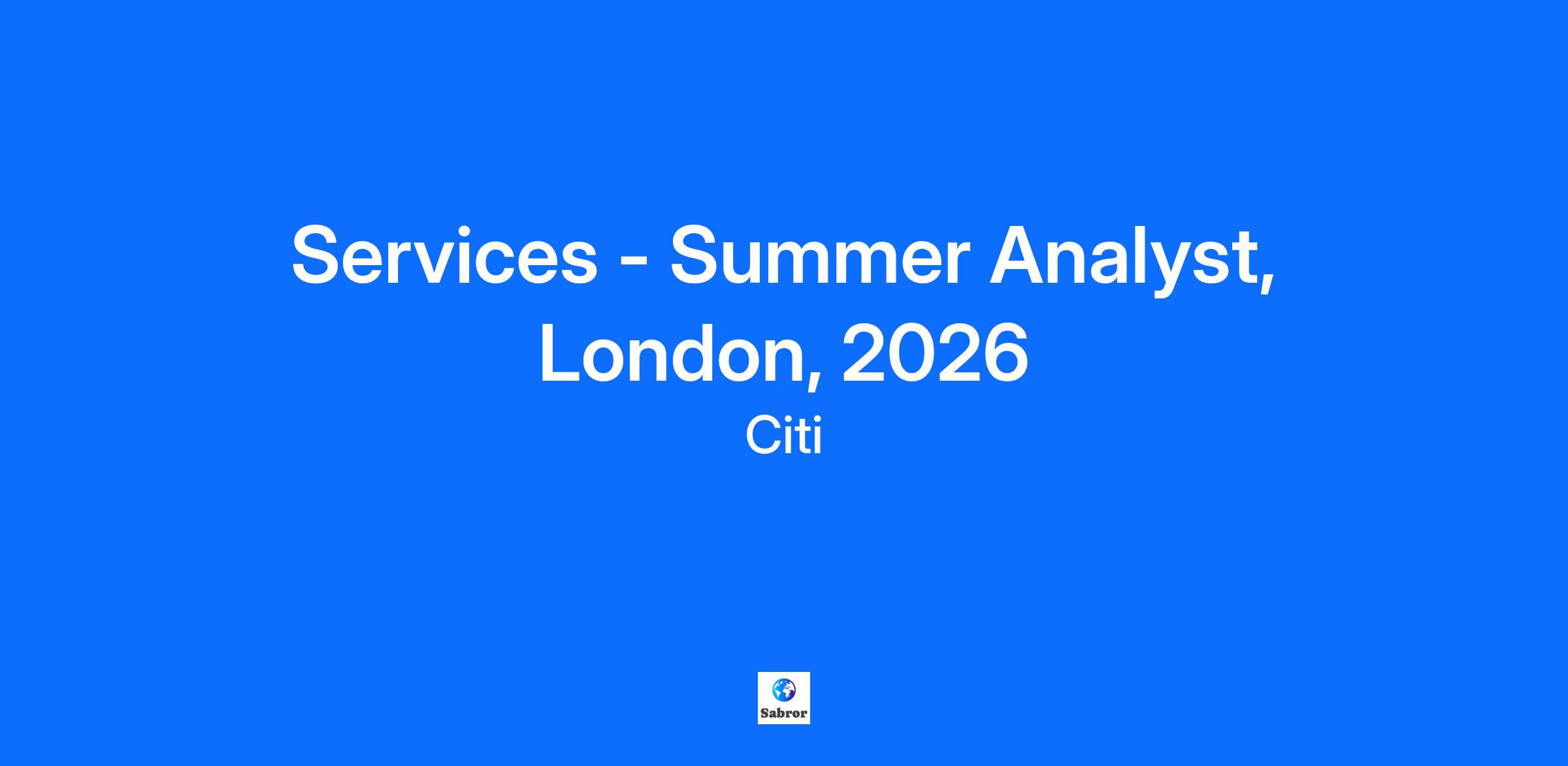 Discover your future at Citi Working at Citi is far more than just a job. A career with us means joining a team of more than 230,000 dedicated people from around the globe. At Citi, you’ll have the opportunity to grow your career, give back to your community and make a real impact. You're the brains behind our work. You’re ready to bring your knowledge from the classroom to the workplace, and Citi wants to help you get there. Whether it’s honing your skills or building your network, we know that success comes with growth. Our program equips you with the knowledge and training you need to play a valuable role on your team and establish a long-term career here. At Citi, we value internal mobility—career growth is not a question of if, but when. What is Services? Citi’s Services organization plays a crucial role in supporting institutional clients through a wide range of innovative solutions, enabling them to navigate complex financial landscapes. Our business provides integrated cash management and trade finance solutions to help multinational corporations, financial institutions, and public sector organizations optimize liquidity, working capital, and streamline transactions globally. Our business also delivers custody, fund administration, collateral management, and performance analytics, helping asset managers, institutional investors, and financial institutions efficiently manage and safeguard assets. With our global reach, including presence in over 90 countries, cutting-edge technology, and client-first approach, we provide seamless solutions that drive business success in an evolving financial world. We provide you with the knowledge and skills you need to succeed. The Citi Services 10-week Summer Analyst Program gives entry-level employees hands-on experience through training sessions and real, on-the-job learning. Summer Analysts work closely with their teams, owning projects that drive meaningful impact. After an initial week of training and a placement process based on your interests and our needs, you’ll be assigned to a team where you’ll focus on financial analysis, business development, client engagement, and market research. Your time here will look something like this: Conduct market research to assess industry trends and the impact of macroeconomic factors. Develop materials that support business development, product commercialization, and revenue growth. Assist with process optimization initiatives to enhance efficiency and mitigate risk. Analyze client data to identify opportunities and improve service offerings. Prepare reports and presentations for internal stakeholders and senior leadership. Participate in networking events, training sessions, and leadership discussions to strengthen your personal and professional development. We want to hear from you if… You are in your penultimate year of university graduating in Summer 2027. You have strong analytical and problem-solving skills. You are proficient in Microsoft Excel (e.g., data analysis, lookups, basic modeling) and have working knowledge of PowerPoint and Outlook. You have an interest in financial services and a drive to learn. Who we think will be a great fit… We’re looking for motivated individuals who are eager to start their careers at a global organization, tend to think strategically, have an innovative approach to business, and value diversity as much as we do. We know that anyone—not just those with business degrees—can have a knack for business, so we’re open to all disciplines. We’ll also be looking for: Strong interpersonal and relationship-building skills. Excellent communication skills. A high level of accuracy, time management, and attention to detail. Solid organizational skills and ability to work autonomously – self-starter. A high level of personal integrity, commitment to excellence, and a strong desire to learn. Resilience to thrive in a fast-paced, high-volume environment. A sense of urgency and the ability to execute quickly and efficiently. Your future at Citi Successful Summer Analysts may be invited to return as full-time Analysts upon graduation. During the program, you will have access to mentorship, career development sessions, and networking opportunities with senior leaders and professionals across Citi. This experience is designed to provide you with a strong foundation to launch a long-term career within the firm. Join us and take the first step toward shaping the future of Citi! ------------------------------------------------------ Job Family Group: Product Management and Development ------------------------------------------------------ Job Family: Market Segments and Services ------------------------------------------------------ Time Type: Full time ------------------------------------------------------ Most Relevant Skills Please see the requirements listed above. ------------------------------------------------------ Other Relevant Skills For complementary skills, please see above and/or contact the recruiter. ------------------------------------------------------ Citi is an equal opportunity employer, and qualified candidates will receive consideration without regard to their race, color, religion, sex, sexual orientation, gender identity, national origin, disability, status as a protected veteran, or any other characteristic protected by law. If you are a person with a disability and need a reasonable accommodation to use our search tools and/or apply for a career opportunity review Accessibility at Citi. View Citi’s EEO Policy Statement and the Know Your Rights poster.