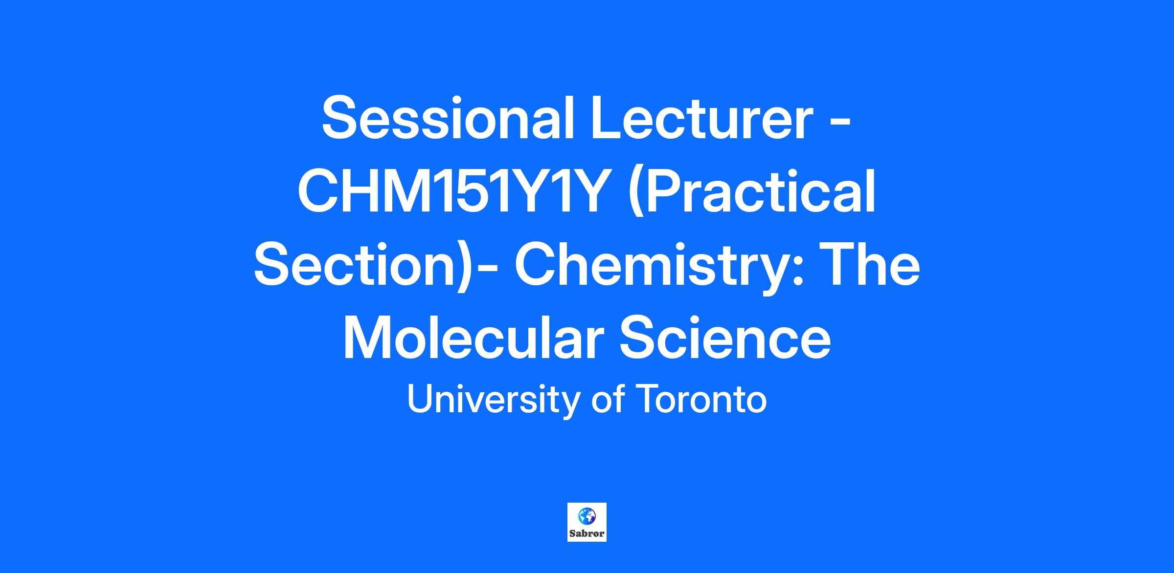 Sessional Lecturer - CHM151Y1Y (Practical Section)- Chemistry: The Molecular Science