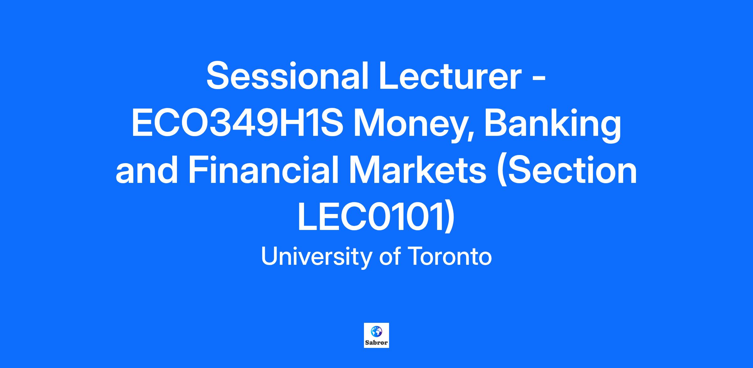 Date Posted: 09/26/2025 Req ID: 45287 Faculty/Division: Faculty of Arts & Science Department: Dept of Economics Campus: St. George (Downtown Toronto) Description: Course Number and Title: ECO349H1S Money, Banking and Financial Markets (Section LEC0101) Course Description: This course studies the interaction of the monetary and banking sectors with financial markets and the broader economy. It builds especially on tools developed in intermediate macroeconomics, but also focuses on the institutional structure of the Canadian monetary sector, including the role and operation of the Bank of Canada. Estimated course enrolment: 130 Estimated TA support: 180 hours (contingent upon enrolment and funding) Class Schedule Class Schedule: Thursday 14:00-17:00 The delivery method for this course is currently in-person. Please note that, in keeping with current circumstances, the course delivery method may change as determined by the Faculty or the Department. Sessional dates of appointment: January 1 – April 30, 2026 Salary (per section):$9,820.70 Sessional lecturer I$10,510.04 Sessional Lecturer I - Long Term$10,510.04 Sessional Lecturer II$10,760.28 Sessional Lecturer II - Long Term$10,760.28 Sessional Lecturer III$11,030.36 Sessional Lecturer III - Long Term Please note that should rates stipulated in the collective agreement vary from rates stated in this posting, the rates stated in the collective agreement shall prevail. Minimum qualifications: PhD in Economics Prior experience teaching this course (or a similar course) at the university level Ability and experience teaching large classes Preferred qualifications: Demonstrated excellence in teaching over four or more years Description of duties: Preparation and delivery of lectures in this course Supervision of teaching assistant(s) assigned to course Preparation, supervision and grading of tests and examinations in accordance with University regulations Providing scheduled office hours for academic counseling of students Application instructions: Applicants should submit an updated curriculum vitae; names and contact information (email and phone) for two referees or two reference letters; evidence of teaching in the relevant area, including student evaluations if available; and the CUPE 3902 Unit 3 application form located here: https://www.economics.utoronto.ca/index.php/index/recruiting/sessionalOpeningsForm. Please attach the additional documents in one PDF file format to the application form. If you have any questions, please contact sessional.economics@utoronto.ca. All applicants must have a valid email address.Closing Date: 10/21/2025, 11:59PM EDT** This job is posted in accordance with the CUPE 3902 Unit 3 Collective Agreement. It is understood that some announcements of vacancies are tentative, pending final course determinations and enrolment. Should rates stipulated in the collective agreement vary from rates stated in this posting, the rates stated in the collective agreement shall prevail. Preference in hiring is given to qualified individuals advanced to the rank of Sessional Lecturer II or Sessional Lecturer III in accordance with Article 14:12 of the CUPE 3902 Unit 3 collective agreement. Please note: Undergraduate or graduate students and postdoctoral fellows of the University of Toronto are covered by the CUPE 3902 Unit 1 collective agreement rather than the Unit 3 collective agreement, and should not apply for positions posted under the Unit 3 collective agreement.
