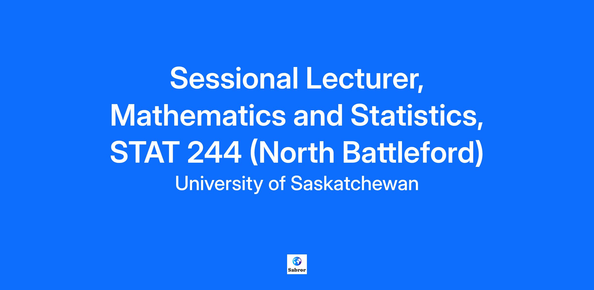 Sessional Lecturer, Mathematics and Statistics, STAT 244 (North Battleford) The Department of Mathematics and Statistics in the College of Arts and Science and the Gwenna Moss Centre for Teaching and Learning invite applications for a Sessional Lecturer to teach the following off-campus courses during the following session(s): 2025-2026 Regular Session Course Number, Section, and Name: STAT 244.3 (C50) Elementary Statistical Concepts Term and Course Dates: Term 2 (January 1, 2026 to April 30, 2026) CRN: 21285 Delivery Mode: This course will be offered as an In Person Lecture. Course Schedule: Actual course days/times Monday 7:00 PM to 10:18 PM. Expected Enrollment Limit: 40 Location: North West College; North Battleford, SK Qualifications: Minimum of a Master’s degree or equivalent in Mathematics or related discipline and and/or possession of relevant teaching or professional experience. This is a concurrent appointment. A valid driver’s license is required for any off-campus courses. Appointment periods include additional days in recognition of preparation and marking time required. Courses may be cancelled due to low enrolment. Application Process: Complete the CUPE 3287 Employment Application Form, specify the position(s) for which you are applying, and send the application along with your curriculum vitae (if applicable) to stat_flt_posting@usask.ca. If you are currently employed by the University of Saskatchewan in a full-time non-teaching position, discuss your application with your people leader to ensure the appointment is suitable relative to your current position. Department: Mathematics & Statistics Status: Term Employment Group: CUPE 3287 Academic Calendar: Course Dates and Academic Calendar Stipend: CUPE 3287 Stipends Posted Date: 10/1/2025 Closing Date: 11/11/2025 Number of Openings: 1 Work Location: On Campus #LI-DNI The University is committed to employment equity, diversity, and inclusion, and are proud to support career opportunities for Indigenous peoples to reflect the community we serve. We are dedicated to recruiting individuals who will enrich our work and learning environments. All qualified candidates are encouraged to apply; however, in accordance with Canadian immigration requirements, Canadian citizens and permanent residents will be given priority. We are committed to providing accommodations to those with a disability or medical necessity. If you require an accommodation to participate in the recruitment process, please notify us and we will work together on the accommodation request. We continue to grow our partnerships with Indigenous communities across the province, nationally, and internationally and value the unique perspective that Indigenous employees provide to strengthen these relationships. Verification of Indigenous Membership/Citizenship at the University of Saskatchewan is led and determined by the deybwewin | taapwaywin | tapwewin: Indigenous Truth policy and Standing Committee in accordance with the processes developed to enact the policy. Successful candidates that assert Indigenous membership/citizenship will be asked to complete the verification process of Indigenous membership/citizenship with documentation. The University of Saskatchewan’s main campus is situated on Treaty 6 Territory and the Homeland of the Métis. We pay our respects to the First Nations and Métis ancestors of this place and reaffirm our relationship with one another. Together, we are uplifting Indigenization to a place of prominence at the University of Saskatchewan.