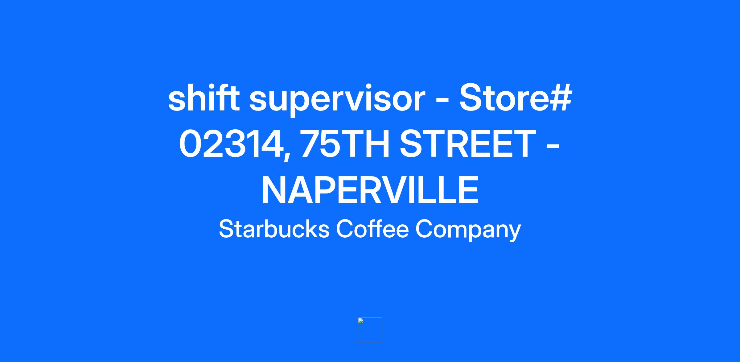 shift supervisor - Store# 02314, 75TH STREET - NAPERVILLE