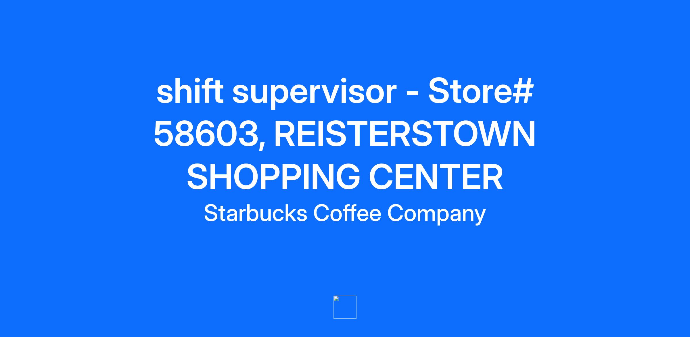 shift supervisor - Store# 58603, REISTERSTOWN SHOPPING CENTER