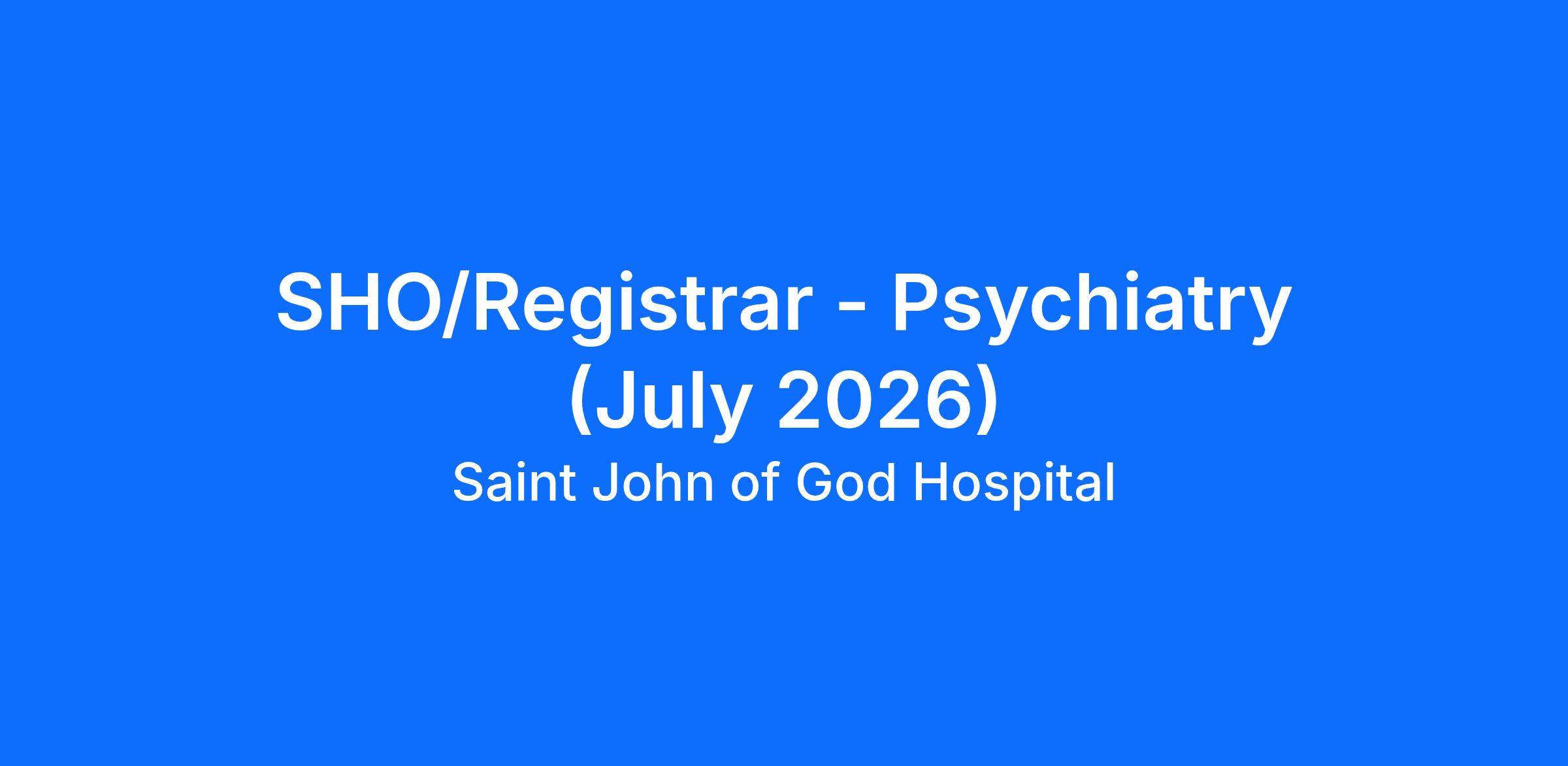 SHO/Registrar: Psychiatry