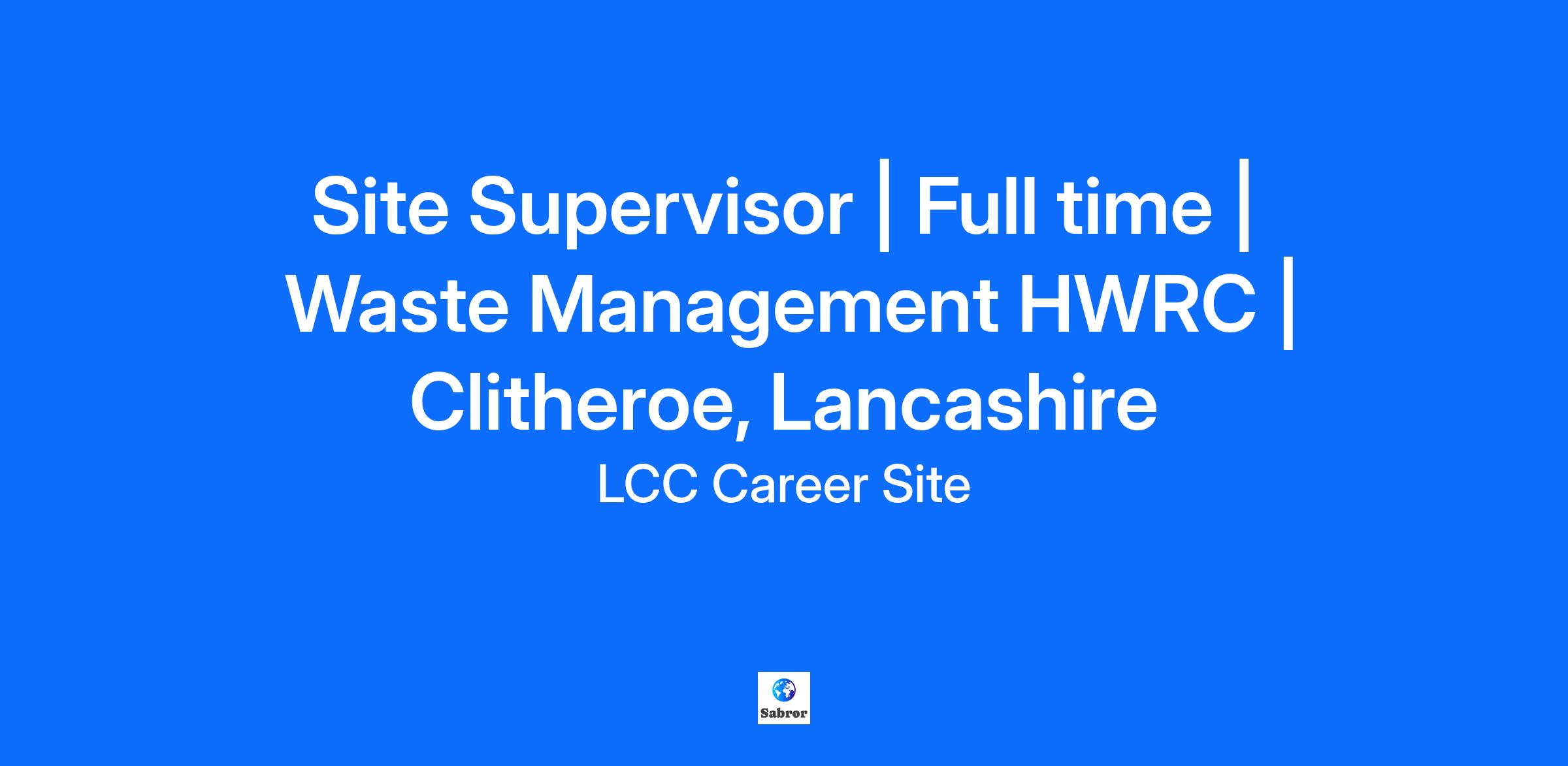 Salary £25,989 - £28,142 per annum |40 hours per week | Permanent, Full time | Waste Management HWRC | Clitheroe, Lancashire Site Supervisor Clitheroe HWRC Qualifications: The post holder will have relevant certificates of competence or equivalent, for example Certificate of Technical Competence (COTC) Level 4/Occupational Certificate of Competence (OCC), First Aid at Work or must be able to demonstrate the ability to achieve competence within a reasonable timescale. Essential requirements: The ability to interpret and implement systems, policies or procedures, follow pre-determined instructions and the ability to record and report information accurately The ability to issue accurate instructions to other members of staff and supervise the delivery of those instructions The ability to lead by example Good communication skills and a commitment to provide high levels of customer service A commitment to the recycling and re-use of waste A commitment to health and safety Role Context Information: The Site Supervisor (HWRC) will report directly to the Assistant Operations Manager but will also receive day to day direction and instruction from the Site Manager(s). The role involves the direct supervision of operatives on the HWRC and the implementation of pre-determined working systems and procedures to ensure that HWRCs are operated safely, compliantly and to specified standards, which includes the implementation of council policies. Post holders will be expected to make decisions as to how and when specific staff duties are carried out and respond to situations independently. Whilst being actively involved in the delivery of operations on the HWRC and the routinely performing the general duties of the HWRC Operative, the Site Supervisor (HWRC) will also monitor the delivery of duties by other members of staff and ensure that these are carried out effectively and efficiently; and that excellent levels of customer service are maintained. Committed to the recycling and re-use of waste the Site Supervisor (HWRC) will actively ensure that the amount of waste separated for recycling and re-use is maximised. The Site Supervisor (HWRC) will be responsible for the recording of all required information ensuring that the information recorded is sufficiently detailed and accurate. In addition, the Site Supervisor (HWRC) `will be responsible for reporting any issues that arise in the day-to-day operation of the site including, but not limited to, staffing issues, hazard reporting, near misses, defects and maintenance issues. The post holder will also ensure that similar duties are allocated in advance of any absence and all HWRC staff are sufficiently trained to ensure that reporting and recording systems are effectively carried out in their absence. Typical duties will include the following: Supervising, directing and assisting HWRC operatives in delivering day to day duties. Ensuring that lists of tasks are carried out on a daily basis and ensuring pre-defined operating standards are met. Recording and reporting of information. Direct engagement with customers including managing difficult situations or customers. Maximising the amount of waste that is separated for re-use or recycling by separating/retrieving re-useable or recyclable waste and encouraging customers to separate their waste and use the correct containers. Ensuring the HWRCs are compliant with quality, environmental and health and safety standards. Carefully using specialist equipment such as excavators and assisting with the training of others in the use of the specialist equipment. Liaison with contractors to ensure compliance with site rules and standards. Assisting in the running of re-use shops and other re-use activities. Pre-planning tasks and duties to ensure the consistent delivery of operations in advance of absences. Training all HWRC operatives to ensure standards are maintained and reporting and recording systems are delivered in their absence. Supporting the Assistant Operations Manager(s) and Site Manager(s) in the delivery of aspects of their roles that are commensurate to the grade of the post. Additional requirements: The post holder will be required to work on Bank Holidays. The post holder will be required to undertake relevant competency qualifications if they don't already hold them and renew or refresh these as required. The post holder will be required to be trained in the operation of any mobile or mechanical plant associated with the role and operate that plant as a daily duty. The post holder will be required to work at other operational facilities within a reasonable distance of their specified facility as required. In this event expenses will be paid for travel (where applicable) if the post holder provides their own transport. If not, the post holder may be required to take public transport during their normal working hours or transport may be arranged to transfer them to an alternative facility. Other: Lancashire County Council as an equal opportunities employer intends that no job applicant or employee will receive less favourable treatment because of their age, disability, gender identity, marriage or civil partnership status, pregnancy or maternity, sex, sexual orientation, race, religion or belief unless this can be objectively justified. Lancashire County Council has agreed a Code of Conduct and Statement of Ethical Standards that outline the behavioural and ethical standards that must be upheld by its employees and casual workers. If you are appointed, you will be required to accept these provisions on appointment. Grade Profile Person specification