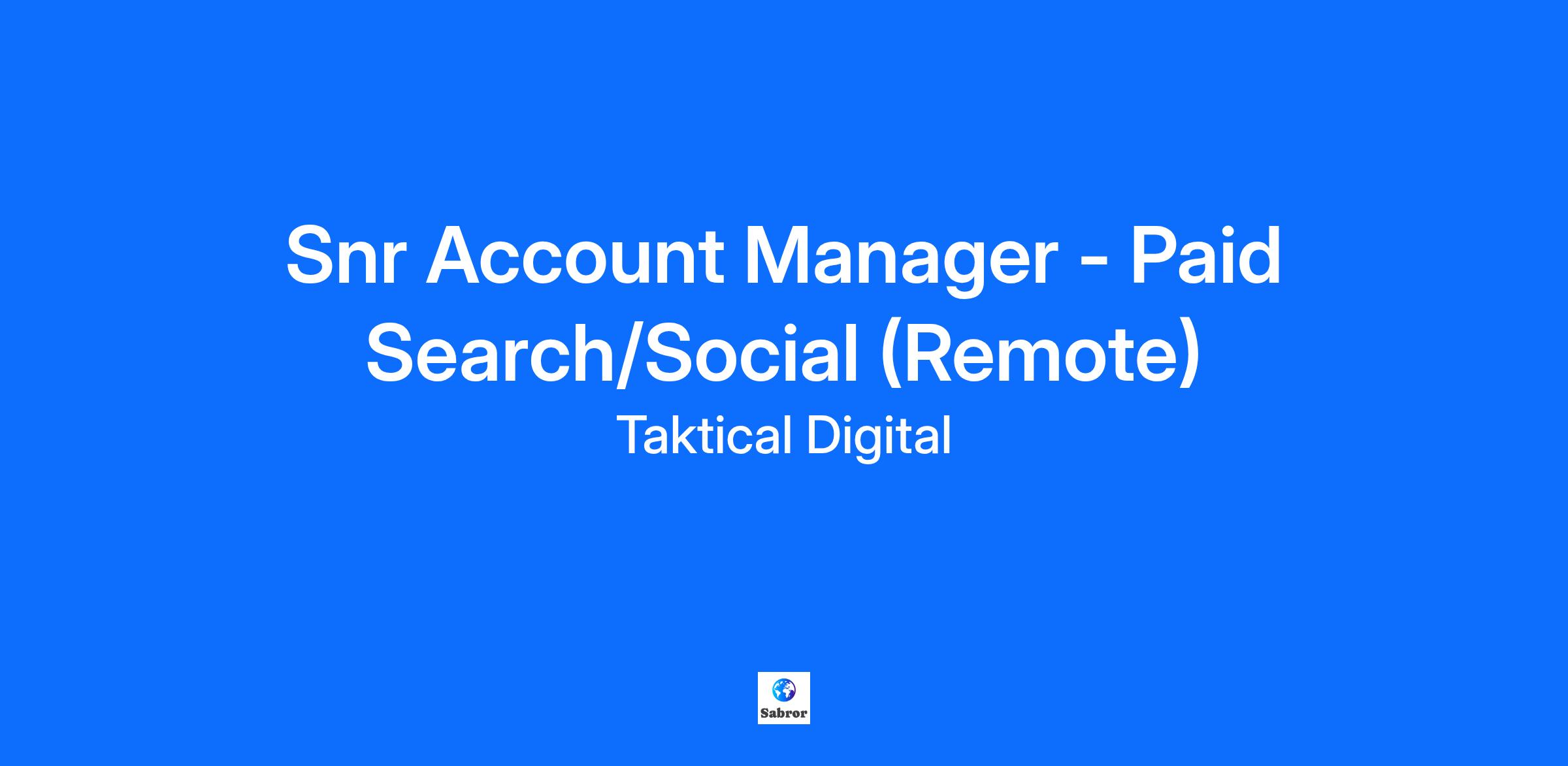 Taktical’s Senior Account Managers play a vital role in our digital marketing efforts. This position is responsible for managing and nurturing client relationships, ensuring the successful execution of paid media campaigns, and driving growth in client portfolios.
