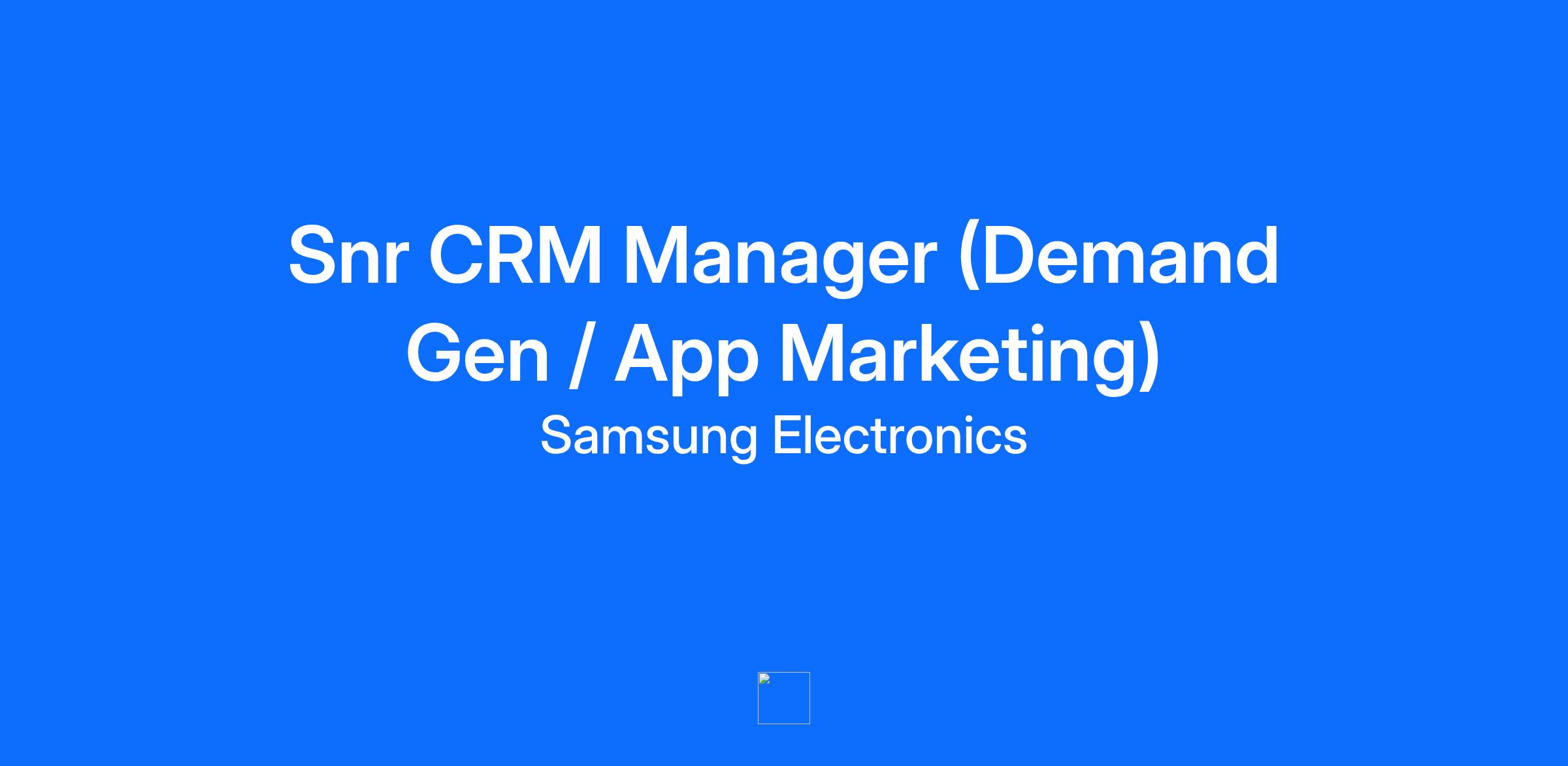 Position Summary Why join our team? The European Marketing Team’s mission is to deliver a personalized, meaningful, premium experience to Samsung consumers across a multi-touchpoint ecosystem (website, e-store, social, email, device, app, chat, media) to drive continuous business growth. We do this by better understanding our consumer’s needs and behaviours, digital trends and focusing on continuous improvement on our digital channels. As a European Centre of Excellence function, the digital team work closely with multiple internal and external stakeholders to set regional strategy and provide highly specialized skills to drive meaningful change across Europe (16 subsidiaries). The team aim to create high value digital propositions we can deliver to consumers at the right time in their path to purchase. It is therefore necessary to work with all parts of the business (Marketing, Retail, Customer Service, Product Divisions) in Europe, but also with headquarters in Korea (Suwon) and with others regions such as the US. Role and Responsibilities Your key responsibilities To initiate, lead, and deliver the European D2C CRM Campaign Strategy across Email, Push, App, .com & Paid Media to increase CRM contribution to sales, in-line with the overall CRM, Strategy & Programmes that have been developed to hit agreed business objectives Day-to-day management of 7+ FTEs in virtual team Be responsible for the relationship with the lead CRM agency to ensure optimal ways of working and drive dedication To fully handle the CRM Campaigns strategy development To provide strategic and operational leadership to 17+ size extended European CRM team in the markets to implement and optimise the CRM Campaigns across all of Europe Work closely to the Snr Management across HQ and Europe to ensure all European CRM Campaigns are aligned and coordinated between HQ, the full EO marketing org, and the subs. Own, optimise and grow the complex lifecycle and triggered comms via the CRM Platform Drive the strategic planning, implementation and integration of CRM, Loyalty and retention programmes / activities across Europe and aligned with business strategy Own campaign reporting from a CRM: together with Finance, Analytics and Insight teams, measure the value and impact of CRM Orchestration Support the development of EO CRM expertise to develop small pilots, and develop & share standard methodologies across every aspect of campaign development all across Europe Engage and co-ordinate with multiple parts of the organisation (Marketing, Customer Service, Content & Services, Product Divisions, eCommerce...) and partner agencies to help define high value propositions Samsung can take to market and optimise through CRM Ensure meaningful segmentations are developed through existing and new propensity models (PII and non-PII) Engage the wider business in CRM multi-channel campaign activity and inform the business on the insights driven from the programme and how CRM drives business value. Input, develop and spearhead the regional requirements for ongoing CDM Platform development (Adobe Marketing Cloud and Partner expertise and interest) Management of relationships with third party suppliers to ensure both technology and agencies are optimised for long term goals. What we need for this role To be successful, you will possess the following skills and attributes: You will have an excellent knowledge of CRM activity, and how to drive take up and engagement with Apps. You will have demonstrable experience of having grown traffic & revenue through CRM and native apps activity, ideally working for a large multi-national ecommerce business. You will be able to clearly understand, implement and articulate complex segmentation models, to improve personalisation and relevance of comms. You should also have solid understanding of common CRM tools, and be on top of the latest trends in the industry. You will be a great teammate with strong leadership skills, high levels of commitment, aspiration and adaptability. What does success look like? We are looking for someone who is passionate about CRM, and ideally has experience working for a large brand leading in the digital space, who understands all the dynamics at play in a fast moving environment. The successful candidate will be able to fit seamlessly into the existing team, driving our Digital CRM activities forward to deliver quality traffic and sales for Samsung.com, and enabling us to further optimise our activity and technical solutions. Skills and Qualifications Benefits of working at Samsung include Partner Colleague Hybrid working – 3 days in the office and 2 days at home per week Bonus scheme linked to individual, team and company performance Pension contribution Three volunteering days each year Holiday - 25 days plus bank holidays and an additional day off for your birthday Access to discounts on a wide range of Samsung products Access to a discount shopping portal Partner Colleagues are not eligible for Samsung Enhanced Paid Sick Leave but may be eligible for statutory payments from their payroll agency Up to 20 (pro-rata) Partner Absence days per calendar year to be used in times of need A note on equal opportunities We are an equal-opportunity employer and value diversity at our Company. We do not discriminate on the basis of race, religion, colour, national origin, gender, sexual orientation, age, marital status or disability status. We will ensure that individuals with disabilities are provided reasonable accommodation to participate in the job application or interview process, to perform essential job functions, and to receive other benefits and privileges of employment. Please contact us to request accommodation. * Please visit Samsung membership to see Privacy Policy, which defaults according to your location. You can change Country/Language at the bottom of the page. If you are European Economic Resident, please click here. Samsung Electronics is a global leader in t
