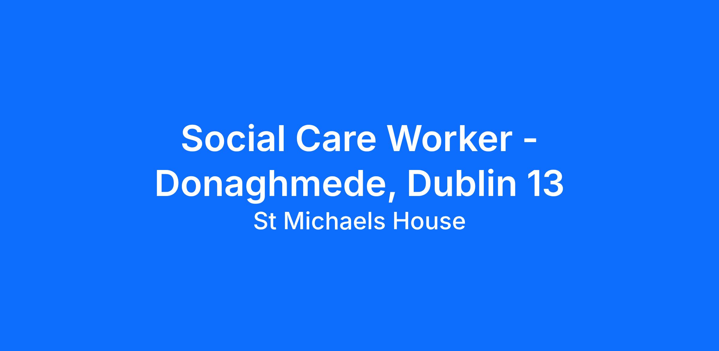 St. Michael’s House are recruiting a Social Care Worker’s for Newbrook Avenue community residential service for adults with intellectual disability and autism.