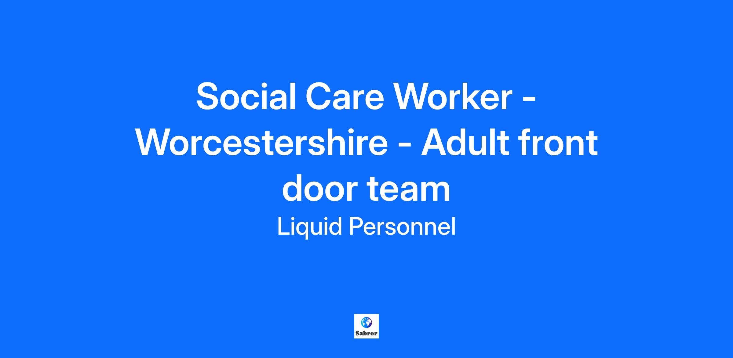 Job Title: Social Worker – Adult Front Door Team Location: Worcestershire Rate: £18.97 per hour An exciting job role has recently become available at Worcestershire County Council. They are looking for a new member for their Adult Front Door Team. Responsibilities: The Adult Front Door Service is the first point of contact for individuals seeking health and wellbeing support. Responding to telephone calls and online referrals, Social Care Workers will provide a person-centred response to requests and effectively support individuals in Worcestershire to live well and as independently as possible. This is a great opportunity for the right person to be part of an exciting transformation of the new Adult Front Door Service for the Peoples Directorate. The Service supports people at the earliest opportunity to maximise the effectiveness of early intervention and prevention by: Providing advice and signposting to local wellbeing services and resources. Working in partnership with our colleagues to deliver short term intervention in the Community. Referring on to our Social Work teams for appropriate Health & Social Care support. Our aim is to prevent or delay individuals from developing longer term care and support needs by enabling them to be healthy for as long as possible, self-managing long-term conditions. Benefits: Hybrid working available Diverse caseload Supportive team Qualifications and Experience: Social Work England registration Eligible to work in the UK Hold a full UK licence Post-qualified experience Degree level or equivalent in Social Work How to apply? If this is a job for you, feel free to click apply below or if you want to learn more about it, please contact 0345 241 9590. Why Liquid Personnel? New ‘Faster Pay’ service getting you paid more quickly Twice weekly payroll Free DBS and compliance service Access to exclusive roles that aren’t available from other agencies Free access to Liquid’s exclusive social work training and CPD portal Your own dedicated consultant with extensive social work knowledge Access to a wide selection of social work positions across the UK “Refer a Friend” bonus – get £500 for each social worker you refer who we successfully place* “Find your own job” bonus – get £250 for bringing your own position to us * Liquid Personnel is an equal opportunities employer. Liquid Personnel Ltd is acting as an Employment Business in relation to this vacancy. * Terms and conditions apply to our bonus schemes. Reasonable Adjustments: We are unable to support or accept applications from candidates who are residents within the Red or Amber list of the Code of practice for the international recruitment of health and social care personnel in England, based on the World Health Organisation (WHO) Workforce Support and Safeguard List. GH: 22895 BH: 183070