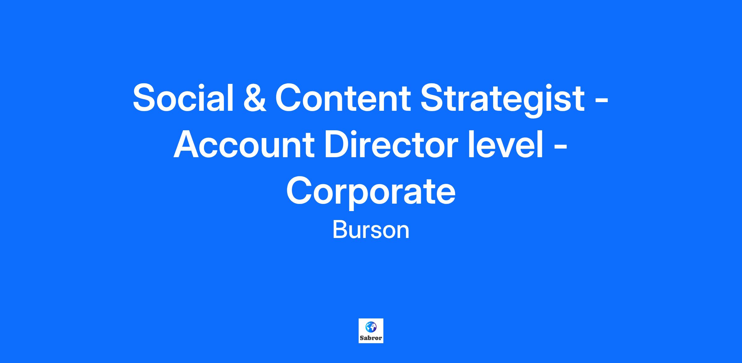 Who we are: Burson is the global communications leader built to create value for clients through reputation. With highly specialized teams, industry-leading technologies and breakthrough creative, we help brands and businesses redefine reputation as a competitive advantage so they can lead today and into the future. When you work at Burson, you are part of a global community of lifelong learners who thrive at the edge of innovation. Burson is part of WPP (LSE/NYSE: WPP), the creative transformation company. For more information visit bursonglobal.com and follow us on LinkedIn and Instagram. More About The Role This role sits within the Corporate Sectors and Public Affairs teams at Burson as a Social & Content Strategist (Account Director). You will be working as part of a global social media team for a leading technology company, as well as supporting other key accounts, creating social-first content for Instagram, TikTok, LinkedIn, Facebook and X. You will be responsible for developing social strategies that: connect audience behaviour with brand objectives. You will partner closely with creative teams, account leaders, and clients to guide the direction of campaigns across platforms. Your work will influence content planning, creative development, community engagement, and measurement approaches. We are looking for someone who is passionate about social platforms, embraces new content formats and with strong client management skills and the flexibility to work across different types of social platforms. What You’ll Do Develop and implement robust, data-driven social media and digital engagement strategies by conducting in-depth reputational analysis, trend forecasting, and stakeholder / audience mapping, ensuring these strategies are not only clear and compelling but also directly aligned with overarching business objectives and measurable KPIs. Lead and optimise strategic social platform planning for both large-scale, time-bound campaigns and continuous 'always-on' engagement initiatives, meticulously defining channel-specific content ecosystems, targeting parameters, and maximising reach and impact across the relevant digital landscape. Translate performance data, intelligence, and stakeholder sentiment into actionable strategic recommendations that directly inspire and inform innovative creative development, campaign optimisation, and future content planning. Persuasively present complex strategic frameworks, insights, and actionable plans to both internal stakeholders and external clients, instilling confidence and securing buy-in through clear, compelling communication and a proven executive presence. At the client level: Leverage our suite of tools to anticipate threats and inform innovative strategic pivots for our clients that build reputation, strategic relevance and competitive advantage. At the practice level: Proactively monitor and interpret evolving social media trends, platform evolutions, and shifts in audience behaviour to identify emerging opportunities for our clients, teams and to keep Burson ahead of the curve. You will join a vibrant community of Social & Content contributors across our London office, working together to grow and innovate the offer. Experience that contributes to success Embed seamlessly into our Corporate and Public Affairs team, working across our specialisms to understand our clients and the factors shaping reputation across stakeholders, media, policy, regulation, issues and more. Collaborate with creative teams, guiding the development of concepts and content designed to authentically connect with and deeply resonate with target stakeholders, ensuring messaging is reputationally relevant and highly engaging. Creating effective content briefs for our design team, developing copy and making recommendations on assets and overseeing digital editorial calendars. Proactively monitor and interpret evolving social media trends, platform evolutions, and shifts in audience behaviour to identify emerging opportunities, anticipate competitive threats, and inform innovative strategic pivots that maintain brand relevance and competitive advantage. Articulate and persuasively present complex strategic frameworks, insights, and actionable plans to both internal stakeholders and external clients, instilling confidence and securing buy-in through clear, compelling communication and a proven executive presence. Creating content briefs to feed into our design and editing team, developing copy and making recommendations on assets and content structure and overseeing the management social calendar across multiple regions for a global LinkedIn company page Managing client communications including leading content development workstreams, updating WIPs and calendars, internal communication with colleagues You belong at Burson: Our vision is for Burson to be the leading ‘academy company’ for creative communications professionals and emerging leaders. We provide a dynamic environment where ambitious colleagues come to elevate their skills, expand their networks, and ultimately, produce the best solutions for today’s leading brands. Our commitment to your growth is reflected in our robust benefits and people programs, which include professional development opportunities, mentorship programs with industry leaders, a vibrant and inclusive company culture fostering collaboration and innovation and packages designed to reward and retain top talent. We invest in our people because we believe their success is our success. At Burson, we’re an agency of learn-it-alls. We recognize that the things we do best, creativity and communications, require a level of nuanced understanding. That’s why it’s imperative for us to hire extraordinarily talented people of all backgrounds and identities. Without that we can’t do the essential work of inspiring bold ideas, fostering constructive dialogue, cultivating meaningful experiences, and driving innovation and creativity fo