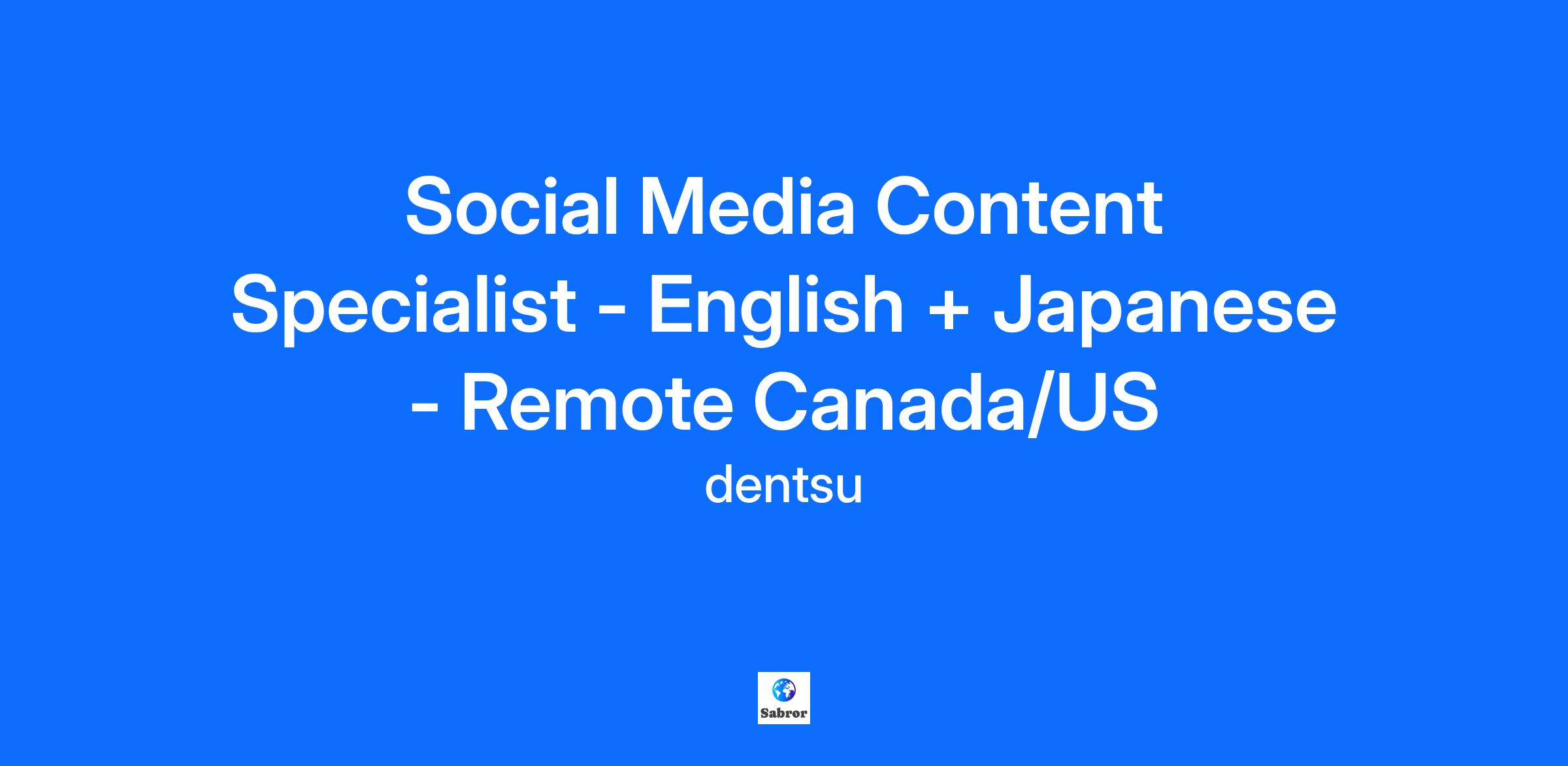Job Title: Social Media Content Specialist (English + Japanese)
