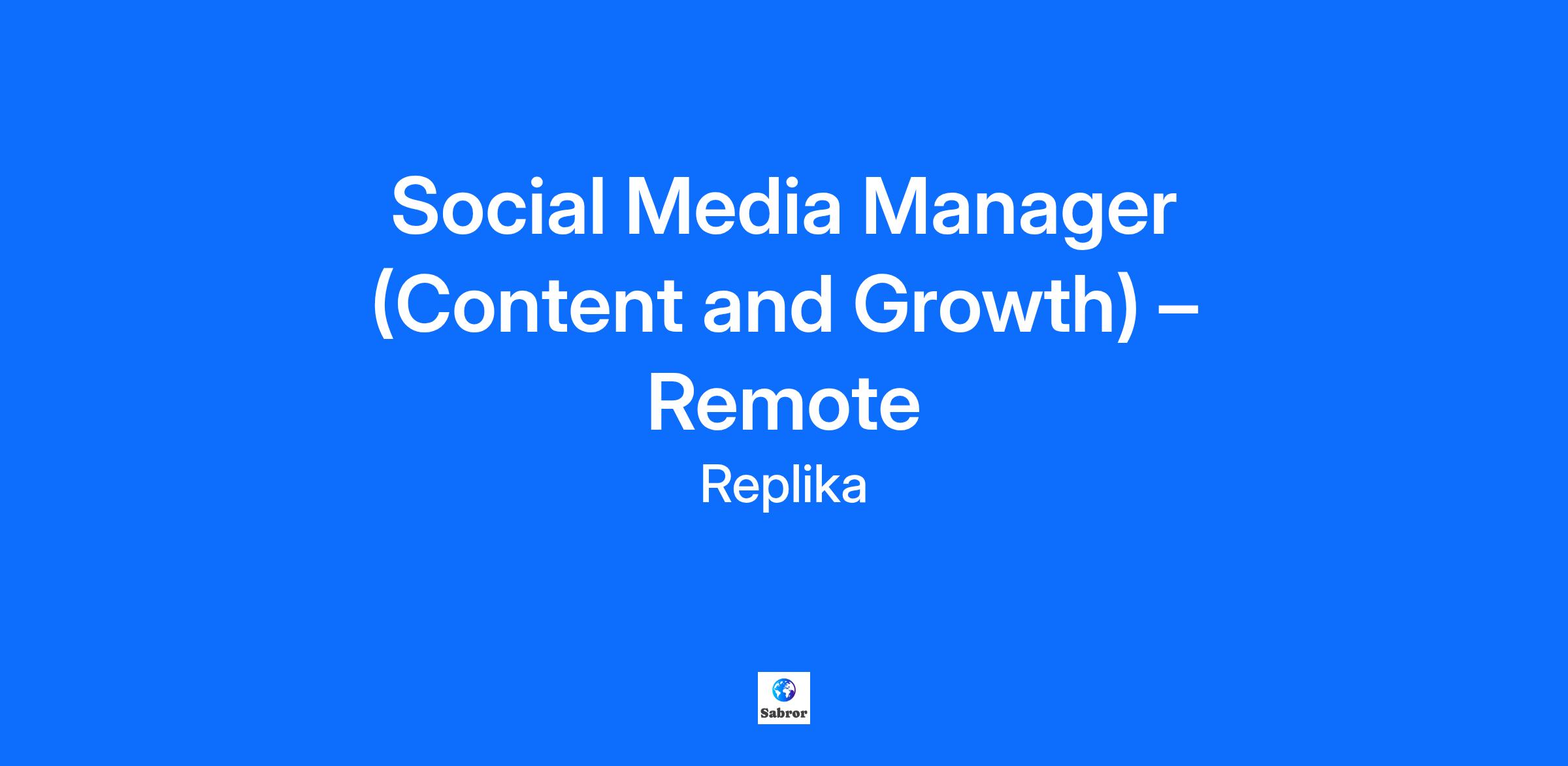 Social Media Manager (Content and Growth) – Remote