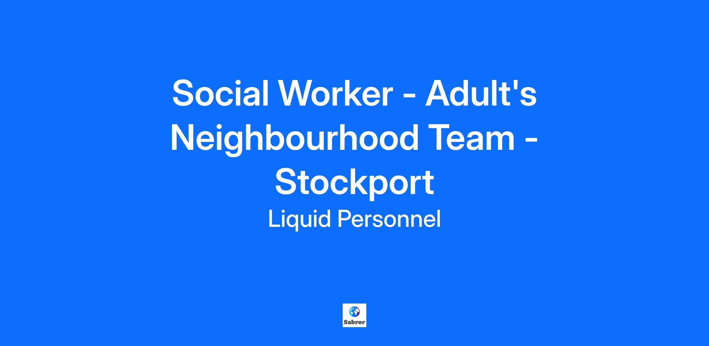 Job Title: Social Worker - Adult's Neighbourhood Team - Stockport Location: Stockport Pay Rate: £30 per hour About the Role: Liquid Personnel is recruiting for a passionate Social Worker to join the Adult’s Neighbourhood Team in Stockport. What will your responsibilities be? In this role, you will deliver a high-quality social work service to adults and their families or carers who are vulnerable or in need of support. You will work collaboratively with citizens, families, and carers to promote independence and ensure they are central to all decisions affecting their lives. Using a person-centred approach, you will develop outcome-focused plans that reflect individual goals and preferences. Your responsibilities will align with the Care Act 2014 and include safeguarding, advocacy, and multi-agency coordination to uphold dignity, choice, and well-being. Benefits: Hybrid Work Initial 3 Month Contract Supportive and Friendly Team Free On Site Parking Qualifications & Experience: To be successful in this role you must have, Social Work England registration Eligible to work in the UK Hold a full UK driving licence Post-qualified experience Degree level or equivalent in Social Work Why Liquid Personnel? Free DBS and compliance service Twice weekly payroll and ‘Faster Pay’ service, getting you paid more quickly Access to exclusive roles that aren’t available from other agencies Free access to Liquid’s exclusive social work training and CPD portal Your own dedicated consultant with extensive social work knowledge Access to a wide selection of social work positions across the UK “Refer a Friend” bonus – get £500 for each social worker you refer who we successfully place* “Find your own job” bonus – get £250 for bringing your own position to us * Liquid Personnel is an equal opportunities employer. Liquid Personnel Ltd is acting as an Employment Business in relation to this vacancy. * Terms and conditions apply to our bonus schemes. Reasonable Adjustments: If you consider yourself to have a disability or require any reasonable adjustment during the recruitment process or within the workplace, please highlight this at the earliest opportunity by contacting our team. With this information, we will provide appropriate support to you throughout the process and into your work placement. We are unable to support or accept applications from candidates who are residents within the Red or Amber list of the Code of practice for the international recruitment of health and social care personnel in England, based on the World Health Organisation (WHO) Workforce Support and Safeguard List. BH - 190587 GH - 31241
