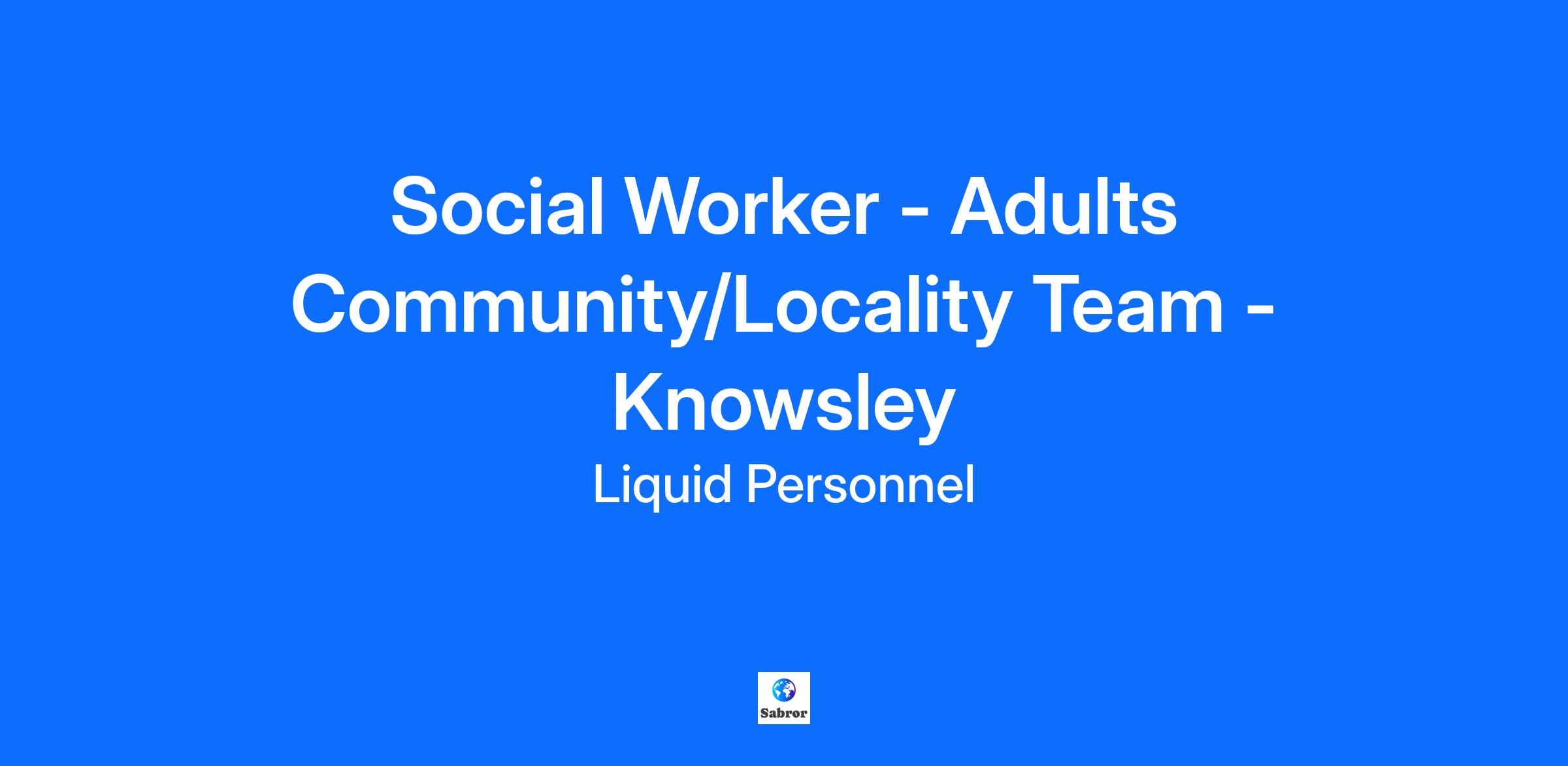 Job Title: Social Worker - Adults Community/Locality Team Location: Knowsley Rate: £31.15 per hour An exciting job role has recently become available for an Adult Social Worker. They are looking for a new member to join the Adults Community/Locality Team in Knowsley. What will your responsibilities be? In this role, you will be completing Social care needs assessments, Support planning, Commissioning Risk assessing and managing risks - attending MARAMS safeguarding MCA/BI COP DOLS CHC - DST. Benefits: of the role Only two days in the office Working with a variety of Service Users Sensible caseloads Qualifications and Experiences: To be successful in this role you must have Social Work England registration, be eligible to work in the UK, hold a qualification in Social Work at degree level, and have post-qualified experience. How to apply? If this is a job for you, feel free to click apply below or if you want to learn more about it, please contact 0345 241 9590. Why Liquid Personnel? New ‘Faster Pay’ service getting you paid more quickly Twice weekly payroll Free DBS and compliance service Access to exclusive roles that aren’t available from other agencies Free access to Liquid’s exclusive social work training and CPD portal Your own dedicated consultant with extensive social work knowledge Access to a wide selection of social work positions across the UK “Refer a Friend” bonus – get £500 for each social worker you refer who we successfully place* “Find your own job” bonus – get £250 for bringing your own position to us * Liquid Personnel is an equal opportunities employer. Liquid Personnel Ltd is acting as an Employment Business in relation to this vacancy. * Terms and conditions apply to our bonus schemes. Reasonable Adjustments: If you consider yourself to have a disability or require any reasonable adjustment during the recruitment process or within the workplace, please highlight this at the earliest opportunity by contacting our team. With this information, we will provide appropriate support to you throughout the process and into your work placement. We are unable to support or accept applications from candidates who are residents within the Red or Amber list of the Code of practice for the international recruitment of health and social care personnel in England, based on the World Health Organisation (WHO) Workforce Support and Safeguard List. GH - 28318 BH - 188299