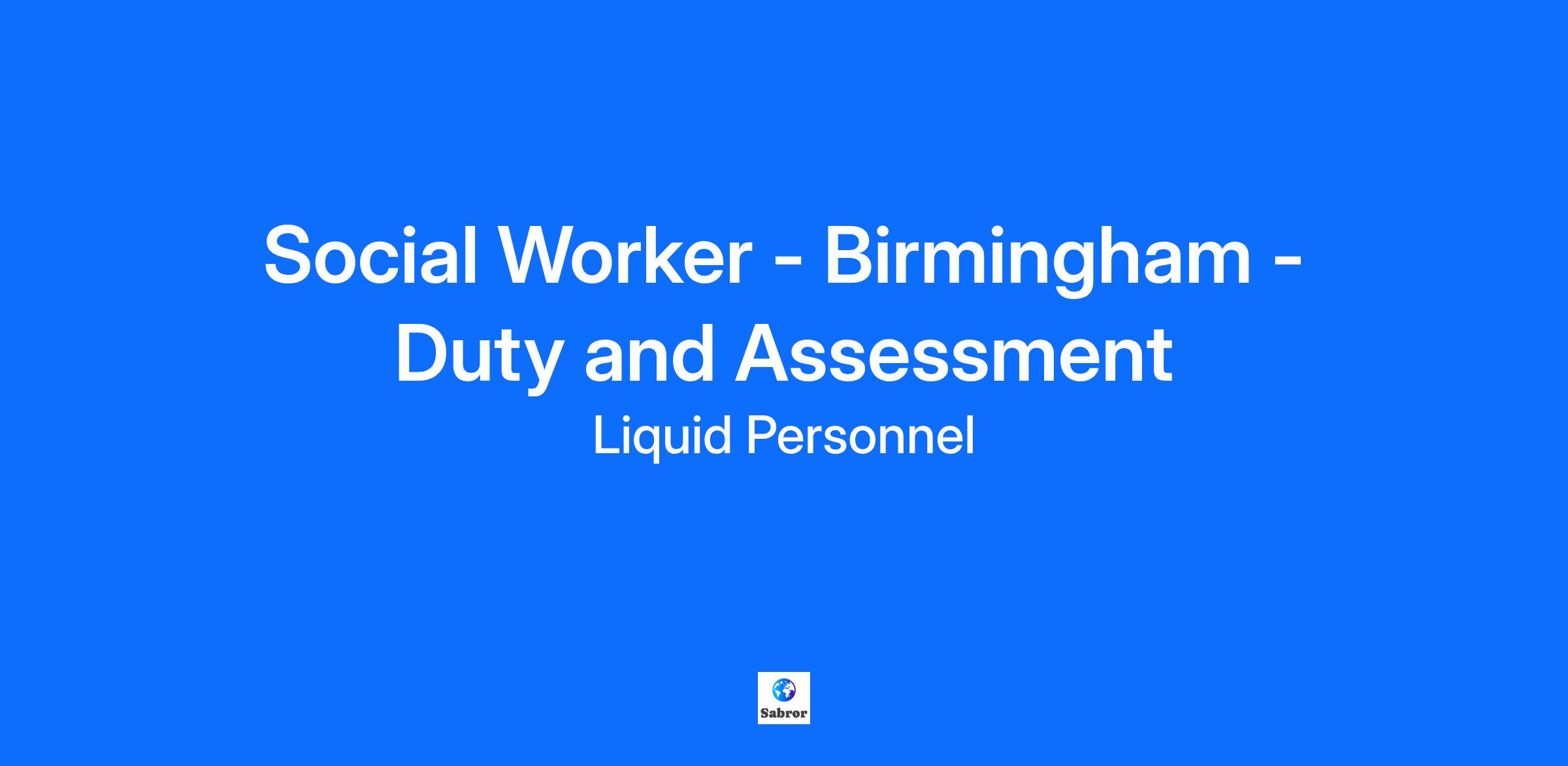 Job Title: Social Work - Duty and Assessment Location: Birmingham Rate: £30.57 per hour The Birmingham Children's Trust is looking for a Social Worker to join their Duty and Assessment team, offering a pay rate of £30.57 per hour. What will your responsibilities be? In this role, you will conduct Section 47 enquiries with multiagency partners, prepare families for child protection conferences, and provide detailed legal planning reports. You will produce court reports, manage your caseload efficiently, and complete risk assessments and Single Assessments. Additionally, you will develop contingency plans to safeguard vulnerable children. Benefits: Duty week once every 5 weeks Flexible working Supportive management Regular supervision Qualifications and Experiences: Social Work England registration Eligible to work in the UK Hold a full UK licence Degree level or equivalent in Social Work Post-qualified experience Experience of working with vulnerable children and their families Experience of working closely with statutory and voluntary agencies How to apply? If this is a job for you, feel free to click apply below or if you want to learn more about it, please contact 0345 241 9590. Why Liquid Personnel? New ‘Faster Pay’ service getting you paid more quickly Twice weekly payroll Free DBS and compliance service Access to exclusive roles that aren’t available from other agencies Free access to Liquid’s exclusive social work training and CPD portal Your own dedicated consultant with extensive social work knowledge Access to a wide selection of social work positions across the UK “Refer a Friend” bonus – get £500 for each social worker you refer who we successfully place* “Find your own job” bonus – get £250 for bringing your own position to us * Liquid Personnel is an equal opportunities employer. Liquid Personnel Ltd is acting as an Employment Business in relation to this vacancy. *Terms and conditions apply to our bonus schemes. Reasonable Adjustments: If you consider yourself to have a disability or require any reasonable adjustment during the recruitment process or within the workplace, please highlight this at the earliest opportunity by contacting our team. With this information, we will provide appropriate support to you throughout the process and into your work placement. We are unable to support or accept applications from candidates who are residents within the Red or Amber list of the Code of practice for the international recruitment of health and social care personnel in England, based on the World Health Organisation (WHO) Workforce Support and Safeguard List. GH - 27337 BH - 187087