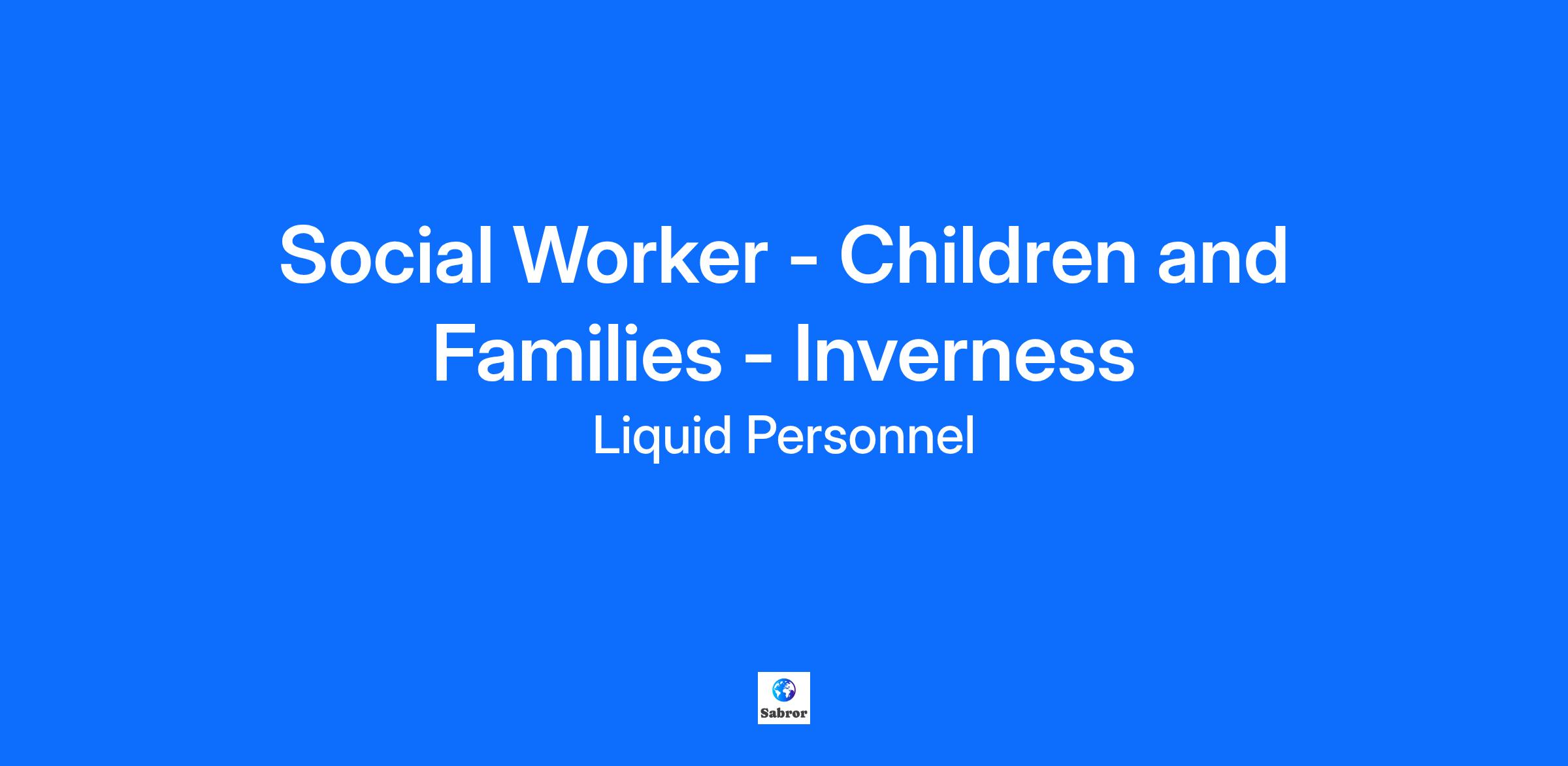 Job Title: Social Worker - Children and Families - Inverness Location: Inverness Pay Rate: £40 per hour About the Role: Our client in Inverness is looking for a Social Worker to join their Children and Families Team. As a Social Worker, you will be engaging with children and families, and will demonstrate strong assessment, analytical skills, and resilience while managing competing priorities. What will your responsibilities be? In this role, you will demonstrate experience working effectively with children and families, engaging and building positive, supportive relationships. You will possess a clear understanding of the ‘Looked After’ system and Children’s Hearings, contributing to informed and child-centred practice. You will work in partnership with various services, showing innovation in identifying and utilising local resources to maximise positive outcomes. Additionally, you will communicate clearly both verbally and in writing, with strong assessment and analytical skills, while managing competing priorities and maintaining personal resilience. Benefits: Supportive team Great rate of pay £40 per hour Accommodation allowance included Flexible and hybrid working to support work-life balance Qualifications & Experience: Scottish Social Services Council (SSSC) Registration Eligible to work in the UK Hold a full UK license Post-qualified experience Degree level or equivalent in Social Work Why Liquid Personnel? New ‘Faster Pay’ service getting you paid more quickly Twice weekly payroll Free DBS and compliance service Access to exclusive roles that aren’t available from other agencies Free access to Liquid’s exclusive social work training and CPD portal Your own dedicated consultant with extensive social work knowledge Access to a wide selection of social work positions across the UK “Refer a Friend” bonus – get £500 for each social worker you refer who we successfully place* “Find your own job” bonus – get £250 for bringing your own position to us * Liquid Personnel is an equal opportunities employer. Liquid Personnel Ltd is acting as an Employment Business in relation to this vacancy. * Terms and conditions apply to our bonus schemes. Reasonable Adjustments: If you consider yourself to have a disability or require any reasonable adjustment during the recruitment process or within the workplace, please highlight this at the earliest opportunity by contacting our team. With this information, we will provide appropriate support to you throughout the process and into your work placement. We are unable to support or accept applications from candidates who are residents within the Red or Amber list of the Code of practice for the international recruitment of health and social care personnel in England, based on the World Health Organisation (WHO) Workforce Support and Safeguard List. BH - 190318 GH - 30680