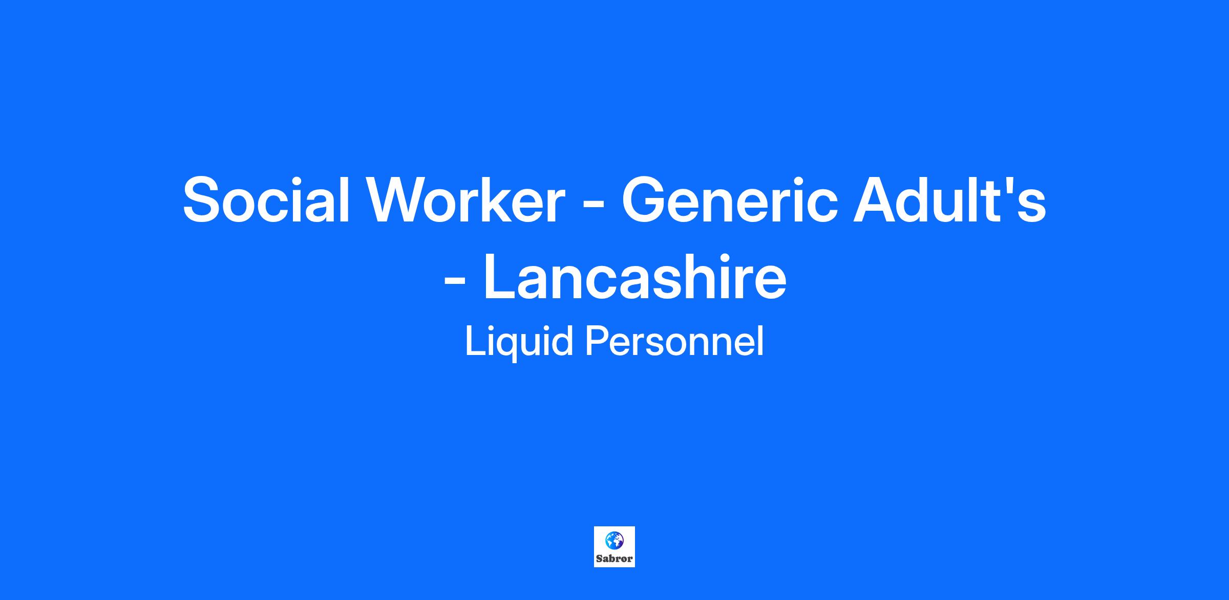 Job Title: Social Worker – Generic Adult’s Team Location: Lancashire County Council Rate: £33-£35 per hour Liquid Personnel is currently recruiting for a Social Worker to join a a Generic Adult’s Team based in Lancashire. What will your responsibilities be? You will cover casework and reviews, including face-to-face visits and office-based work. Working within the Generic Adult’s Team, you will focus on community social work. Balancing these responsibilities requires excellent time management and dedication to providing quality care and support to the community. Benefits of the role: Hybrid work Supervision and Training available Immediate start with 3-month initial contract available Qualifications and Experiences: To be successful in this role, you must have Social Work England registration, be eligible to work in the UK, hold a qualification in Social Work at degree level, and have post-qualified experience. How to apply? If this is a job for you, feel free to click apply below or if you want to learn more about it, please contact 0345 241 9590. Why Liquid Personnel? New ‘Faster Pay’ service getting you paid more quickly Twice weekly payroll Free DBS and compliance service Access to exclusive roles that aren’t available from other agencies Free access to Liquid’s exclusive social work training and CPD portal Your own dedicated consultant with extensive social work knowledge Access to a wide selection of social work positions across the UK “Refer a Friend” bonus – get £500 for each social worker you refer who we successfully place* “Find your own job” bonus – get £250 for bringing your own position to us * Reasonable Adjustments: If you consider yourself to have a disability or require any reasonable adjustment during the recruitment process or within the workplace, please highlight this at the earliest opportunity by contacting our team. With this information, we will provide appropriate support to you throughout the process and into your work placement. We are unable to support or accept applications from candidates who are residents within the Red or Amber list of the Code of Practice for the international recruitment of health and social care personnel in England, based on the World Health Organisation (WHO) Workforce Support and Safeguard List. GH – 27966 bh - 188015