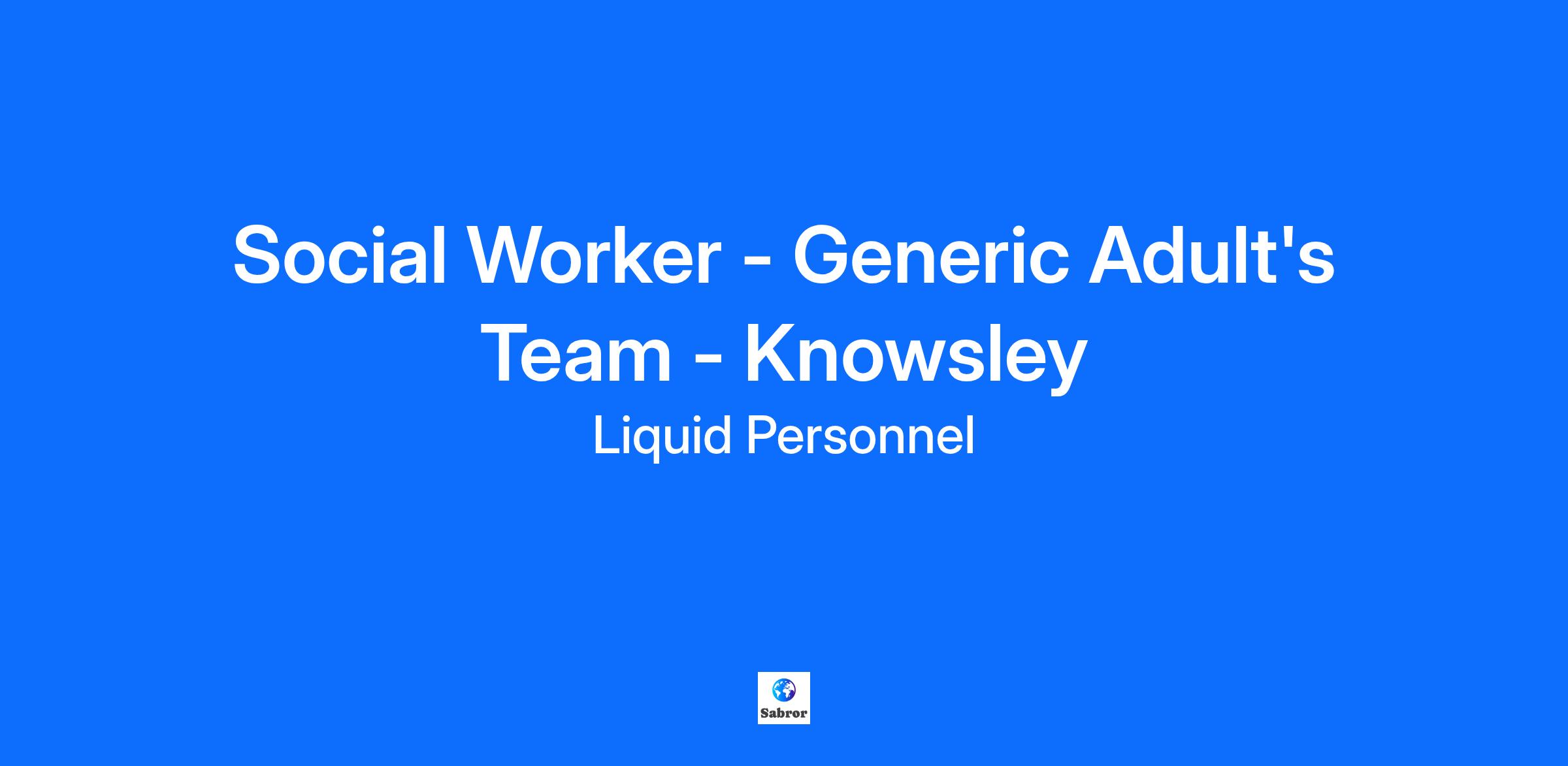 Job Title: Social Worker – Generic Adult’s Team Location: Knowsley Council Rate: £31.15 per hour Liquid personnel is currently recruiting for a Social Worker to join a a Generic Adults Team based in Knowsley. What will your responsibilities be? You will cover casework and reviews, including face-to-face visits and office-based work. Working within the Generic Adult’s Team, you will focus on community social work. Balancing these responsibilities requires excellent time management and dedication to providing quality care and support to the community. Benefits of the role: Hybrid Work Generic Caseload Supportive and Friendly Team Qualifications and Experiences: To be successful in this role, you must have Social Work England registration, be eligible to work in the UK, hold a qualification in Social Work at degree level, and have post-qualified experience. How to apply? If this is a job for you, feel free to click apply below or if you want to learn more about it, please contact 0345 241 9590. Why Liquid Personnel? New ‘Faster Pay’ service getting you paid more quickly Twice weekly payroll Free DBS and compliance service Access to exclusive roles that aren’t available from other agencies Free access to Liquid’s exclusive social work training and CPD portal Your own dedicated consultant with extensive social work knowledge Access to a wide selection of social work positions across the UK “Refer a Friend” bonus – get £500 for each social worker you refer who we successfully place* “Find your own job” bonus – get £250 for bringing your own position to us * Reasonable Adjustments: If you consider yourself to have a disability or require any reasonable adjustment during the recruitment process or within the workplace, please highlight this at the earliest opportunity by contacting our team. With this information, we will provide appropriate support to you throughout the process and into your work placement. We are unable to support or accept applications from candidates who are residents within the Red or Amber list of the Code of Practice for the international recruitment of health and social care personnel in England, based on the World Health Organisation (WHO) Workforce Support and Safeguard List. GH - 27962 BH - 188061