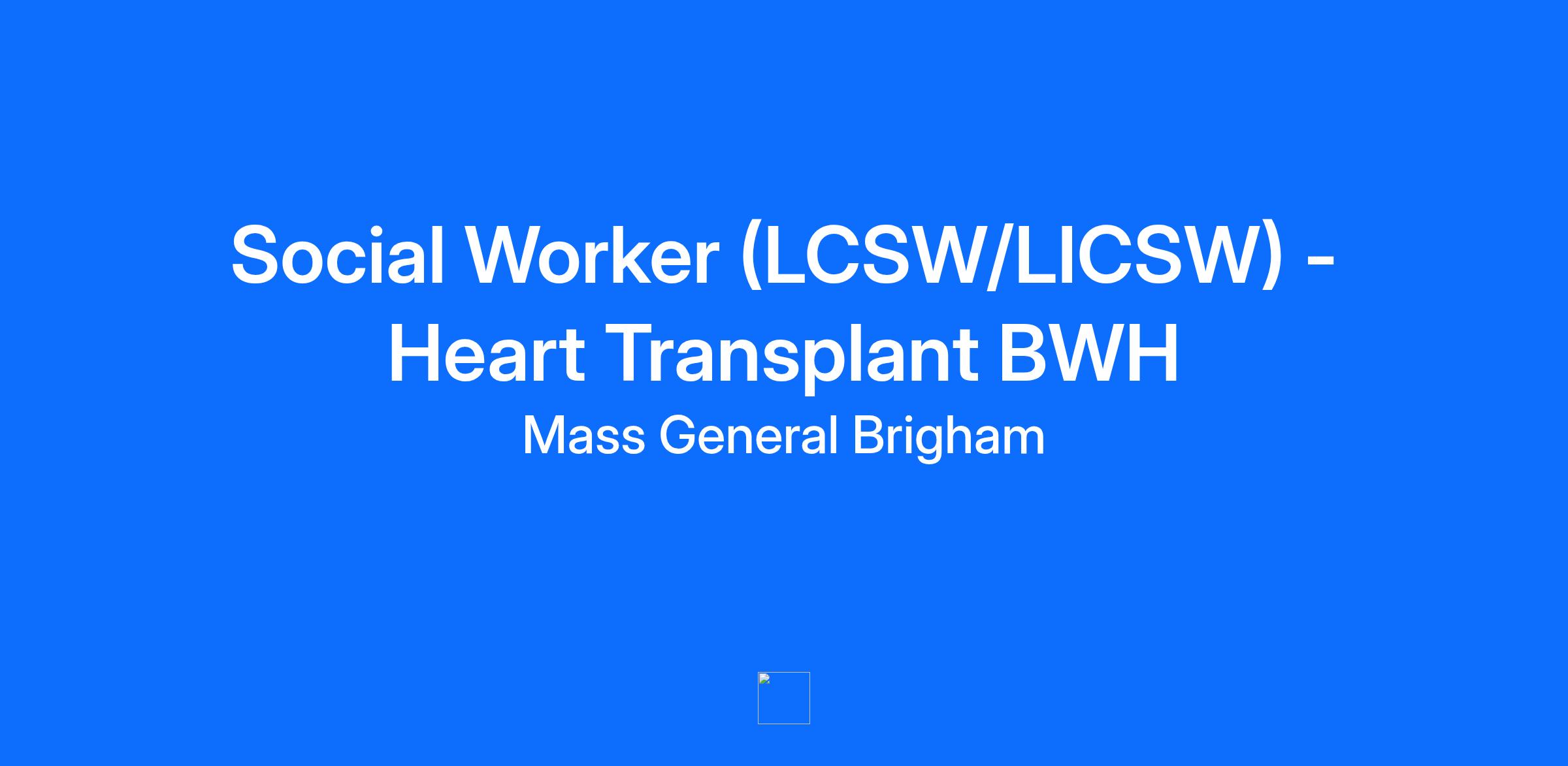 Site: The Brigham and Women's Hospital, Inc. Mass General Brigham relies on a wide range of professionals, including doctors, nurses, business people, tech experts, researchers, and systems analysts to advance our mission. As a not-for-profit, we support patient care, research, teaching, and community service, striving to provide exceptional care. We believe that high-performing teams drive groundbreaking medical discoveries and invite all applicants to join us and experience what it means to be part of Mass General Brigham. CLINICAL SOCIAL WORKER Heart Transplant Team- FULL TIME 40 HOURS LICSW OR LCSW OR MSW NEW GRAD! • Pay Ranges: LCSW and MSW new grads: Pay range minimum is $68,224. LICSW: Pay range minimum is $92,227. • SIGN ON BONUS AVAILABLE for eligible Non-MGB employees: $3,000 FOR LCSW, $10,000 FOR LICSW, Please ask about the details! • Brigham and Women’s Hospital, a nationally ranked academic medical center • Grow and learn through regular internal continuing education programming, financial support for continuing education courses and conferences, and mentorship. • Excellent benefits: generous Paid Time Off; 403B match; cash balance pension; tuition reimbursement; continuing education; medical and dental; short-term disability; MBTA pass subsidy; and much more. • Convenient public transit-/ T-accessible Longwood Medical area location at the Main Campus at 75 Francis Street, Boston. Job Summary The Clinical Social Worker (LICSW) is a key member of the interdisciplinary team who provides and oversees the provision of psychosocial care for selected patients and families. Conducts bio-psychosocial assessments, provides intervention and treatment as indicated. Identifies high risk psychosocial factors of patients/families that impact health status and helps hospital staff understand the influence of those factors upon the course of medical care. Assumes clinical evaluation, intervention and planning for patients with complex psychosocial risk (homelessness, protective services, frail elderly, disabled, psychiatric and substance abuse, etc.). Works effectively as part of interdisciplinary health care teams. Provides clinical services to patients/families that address psychosocial, environmental, age-specific and cultural issues in order to maximize emotional, social and physical well being and the effective use of health care and community resources. Collaborates with and provides social work consultation to other disciplines within the setting and community. Participates on Departmental, Hospital, Satellite, community task forces and committees. The Clinical Social Worker reports directly to the assigned Social Work Manager. PRINCIPAL DUTIES AND RESPONSIBILITIES Clinical Practice: • Provides assessment of patients to evaluate mental health/psychiatric history/emotional issues/coping style, understanding of illness/adjustment/compliance, barriers to care, cultural issues, abuse/neglect and domestic violence. • Provides psychosocial assessment of families to determine family relationships/systems as they relate to care of the patient. Identifies family decision makers and caregivers; family understanding of illness and trajectory of care. Identifies family coping style, family resources and cultural issues. • Employs a range of clinical interventions such as individual, group or family counseling. Provides caregiver/family counseling/support to promote family cohesiveness to provide care to patient and prepare families for end of life. Advocates on behalf of patients and families to gain access to services and resources. Refers patients to other providers, as necessary. • Develops comprehensive bio-psychosocial assessments responsive to age appropriate and cultural needs and concerns. Employs a range of clinical interventions such as psychotherapy (individual, couples, families, and group), psychosocial counseling, crisis intervention, care coordination, complementary therapies, information and referral and safety planning. Advocates on behalf of patients and families to gain access to services and resources. • Provides mandated assessments when abuse is suspected (child, disabled adult, elder) and safety assessment when domestic violence is reported. Files reports as indicated. • Identifies patients’ psychosocial, financial, legal, psychiatric or substance use that effect patient care management and collaborates with the team to facilitate patient care process. • Works effectively as part of the interdisciplinary health care team, communicating regularly with the team and other members on cases and as issues arise. Documents timely and relevant information. • Coordinates family/team meetings, as needed and when appropriate. Provides psychosocial consultation on patient care planning and patient/family management and community resources. Implements psychosocial programs based on patient/family identified needs. • Facilitates the appropriate and efficient use of hospital and community resources. • Participates in formal and informal clinical case reviews, clinical supervision, educational seminars and research projects. Quality, Utilization Management: High Risk Psychosocial: • Intervenes with appropriate individuals/departments/agencies regarding delays in service that may have an impact on quality of patient care, length of stay or inappropriate patient admissions. • Reviews patient information for assigned caseload, determines anticipated length of stay and psychosocial barriers to plan of care transitions discharge plan in collaboration with the Nurse Care Coordinator • Interacts with home care, community agencies and facilities to ensure safe and timely patient care transitions • Negotiates with care coordination team follow up contact with patient/family, community agency or facility to evaluate the effectiveness of the patient care transitions and identifies problems in service delivery • Ensures coordination of the communication p