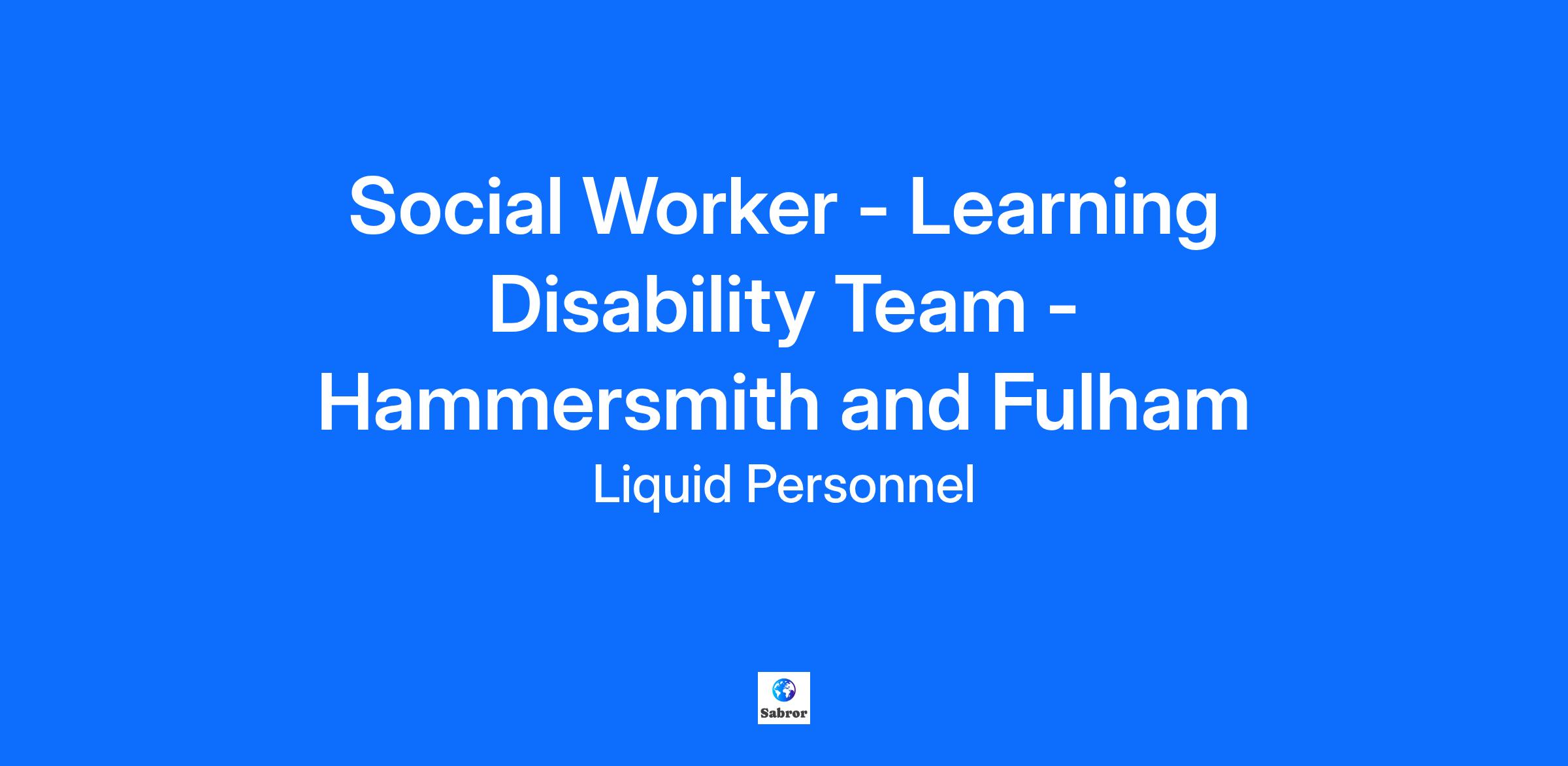 Job Title: Social Worker - Learning Disability Team - Hammersmith and Fulham Location: Hammersmith and Fulham Pay Rate: £ 35/per hour Liquid Personnel is hiring an Adult Social Worker – Learning Disability in Hammersmith and Fulham to join our esteemed client. The role involves delivering Care Act 2014-compliant services, supporting independence, managing complex cases, leading support planning, promoting wellbeing, and ensuring legal compliance in assessments, advocacy, and NHS Continuing Health Care processes. Responsibilities Maintain accurate and up-to-date records of all interactions, assessments, and care plans. Provide training and education to individuals, families, and other professionals on issues related to learning disabilities. Conduct comprehensive assessments of individuals with learning disabilities to identify their needs and develop personalized care plans. Benefits for you Supportive manager and team Hybrid working Competitive payrate Qualifications and Experience : To be successful in this role you must have Social Work England registration, be eligible to work in the UK, hold a qualification in Social Work at degree level, and have post-qualified experience. Why Liquid Personnel? New ‘Faster Pay’ service getting you paid more quickly Twice weekly payroll Free DBS and compliance service Access to exclusive roles that aren’t available from other agencies Free access to Liquid’s exclusive social work training and CPD portal Your own dedicated consultant with extensive social work knowledge Access to a wide selection of social work positions across the UK “Refer a Friend” bonus – get £500 for each social worker you refer who we successfully place* “Find your own job” bonus – get £250 for bringing your own position to us * Liquid Personnel is an equal opportunities employer. Liquid Personnel Ltd is acting as an Employment Business in relation to this vacancy. * Terms and conditions apply to our bonus schemes. Reasonable Adjustments: If you consider yourself to have a disability or require any reasonable adjustment during the recruitment process or within the workplace, please highlight this at the earliest opportunity by contacting our team. With this information, we will provide appropriate support to you throughout the process and into your work placement. We are unable to support or accept applications from candidates who are residents within the Red or Amber list of the Code of practice for the international recruitment of health and social care personnel in England, based on the World Health Organisation (WHO) Workforce Support and Safeguard List. BH - 190645 GH - 31214