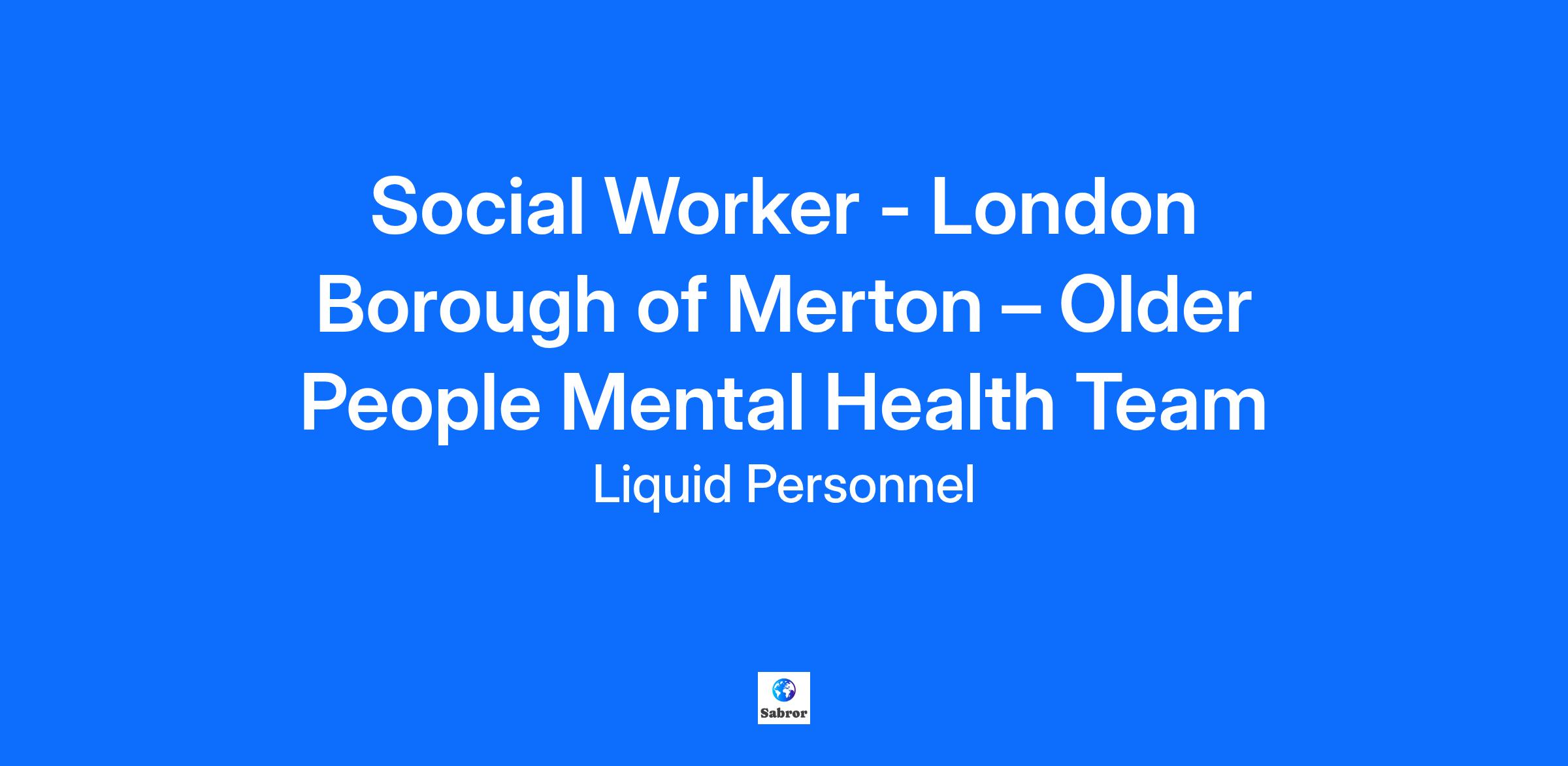 An exciting job role has recently become available at London Borough of Merton. They are looking for a new member for their Older People Mental Health Team. Benefits of the role: Flexible Working and excellent pay rate Access to onsite parking and canteen Supportive team Responsibilities: A strong working knowledge of Mental Health legislation You will have strong assessments skills, written and verbal. Excellent communication with service users and their families. What we are looking for in a Social Worker: Social Work England registration Eligible to work in the UK Hold a full UK licence Post-qualified experience Degree level or equivalent in Social Work Why Liquid Personnel? New 'Faster Pay' service getting you paid more quickly Twice weekly payroll Free DBS and compliance service Access to exclusive roles that aren't available from other agencies Free access to Liquid’s exclusive social work training and CPD portal Your own dedicated consultant with extensive social work knowledge Access to a wide selection of social work positions across the UK "Refer a Friend" bonus - get £500 for each social worker you refer who we successfully place* "Find your own job" bonus - get £250 for bringing your own position to us * Liquid Personnel is an equal opportunities employer. Liquid Personnel Ltd is acting as an Employment Business in relation to this vacancy. * Terms and conditions apply to our bonus schemes. We are unable to support or accept applications from candidates who are residents within the Red or Amber list of the Code of practice for the international recruitment of health and social care personnel in England, based on the World Health Organisation (WHO) Workforce Support and Safeguard List. 183073 22767